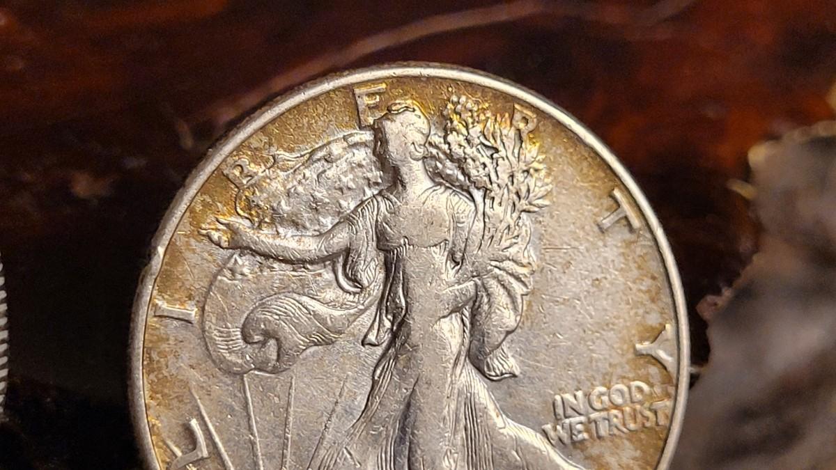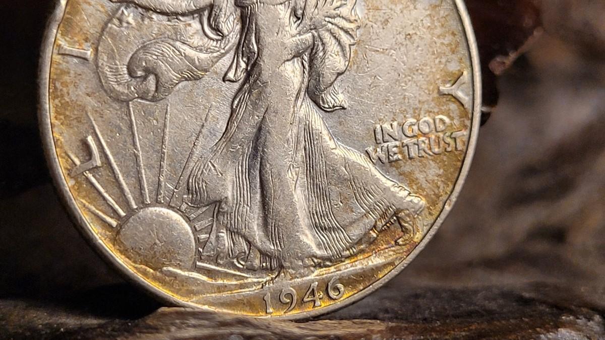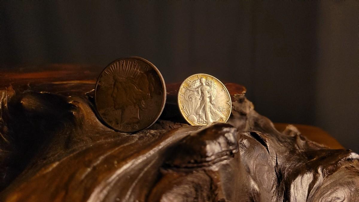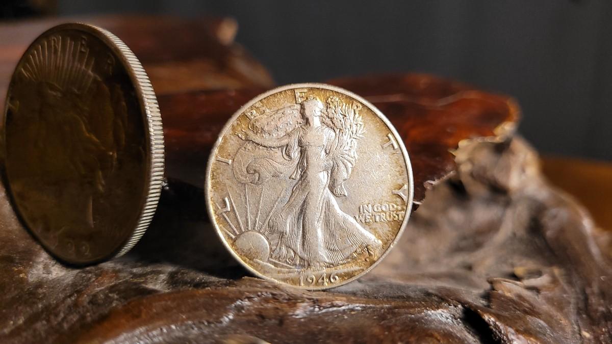 Lot 116: Antique 1922 Peace Dollar Coin + Vintage 1946 Liberty Walking Half Dollar