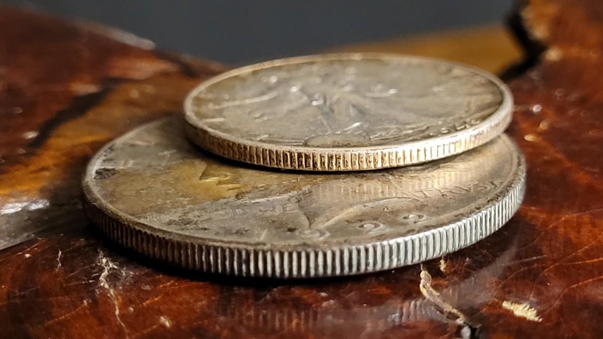 Nice 90% Silver Coin Set featuring a 1922 Peace Dollar and a 1946 Liberty Half Dollar. The Liberty shows some beautiful rainbow patina.