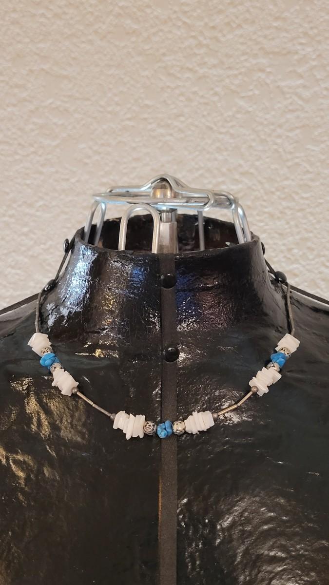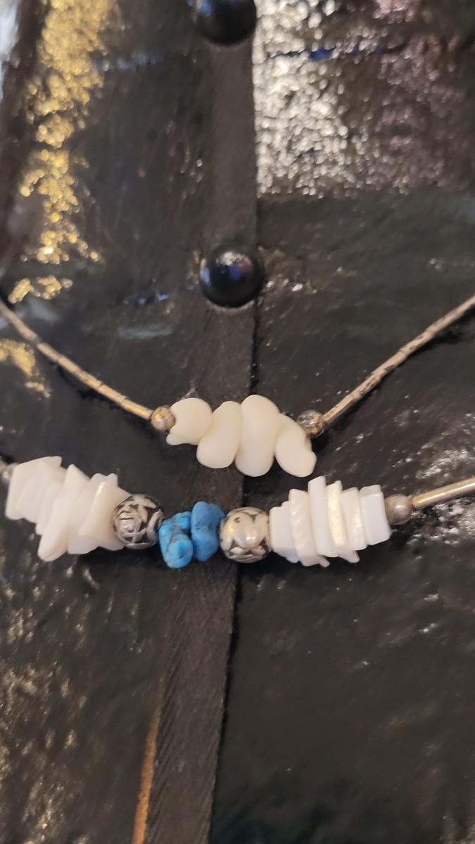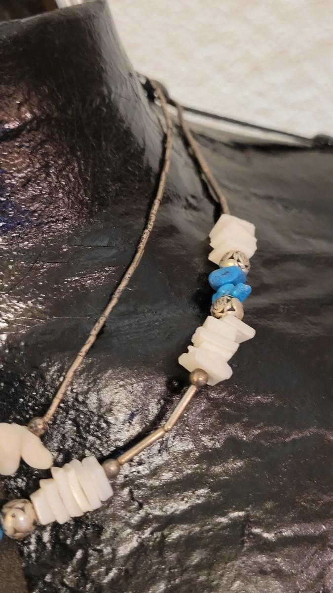 Lot 116: Vintage Sterling Liquid Silver, Turquoise & Shell Necklaces (2)