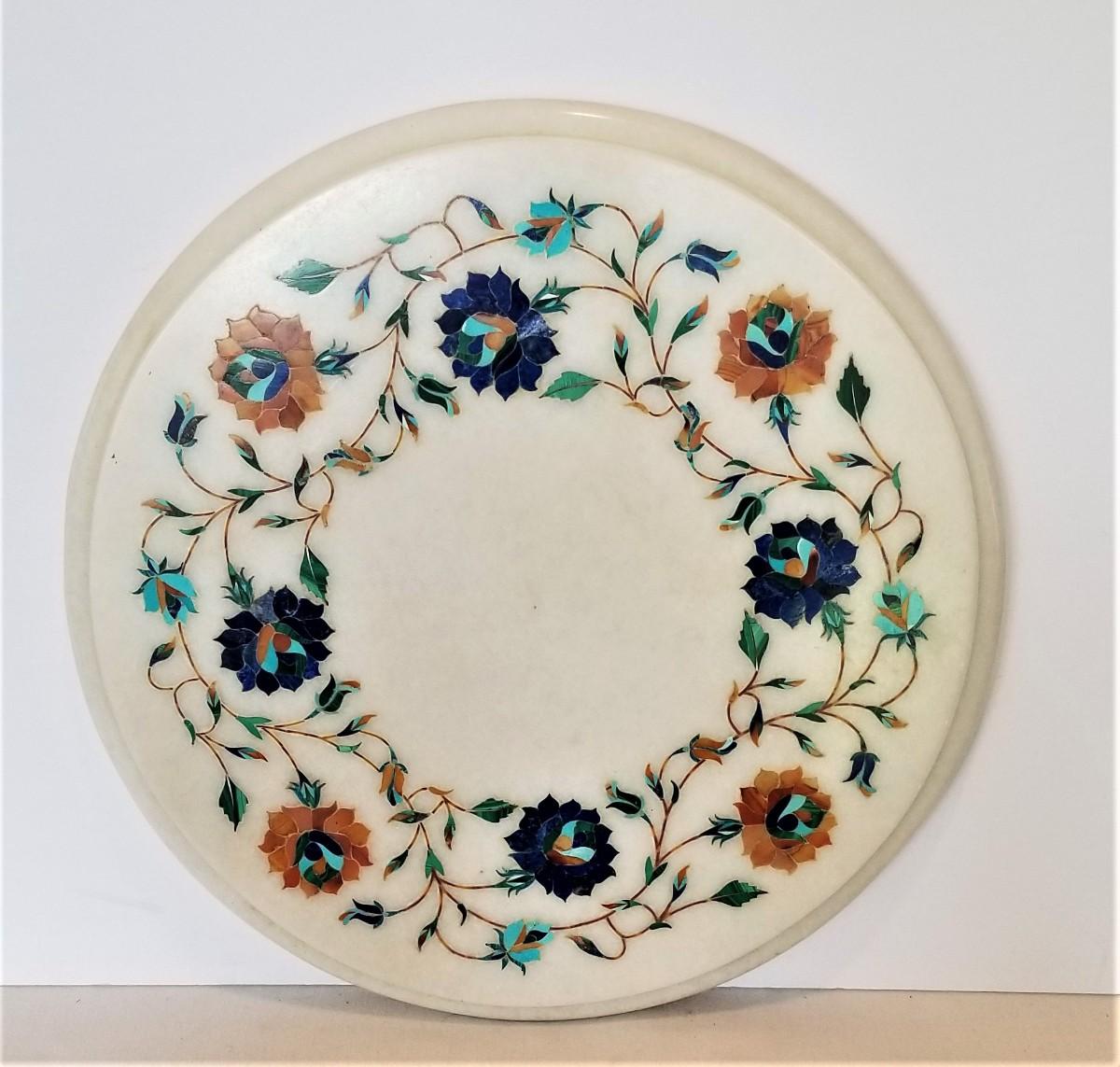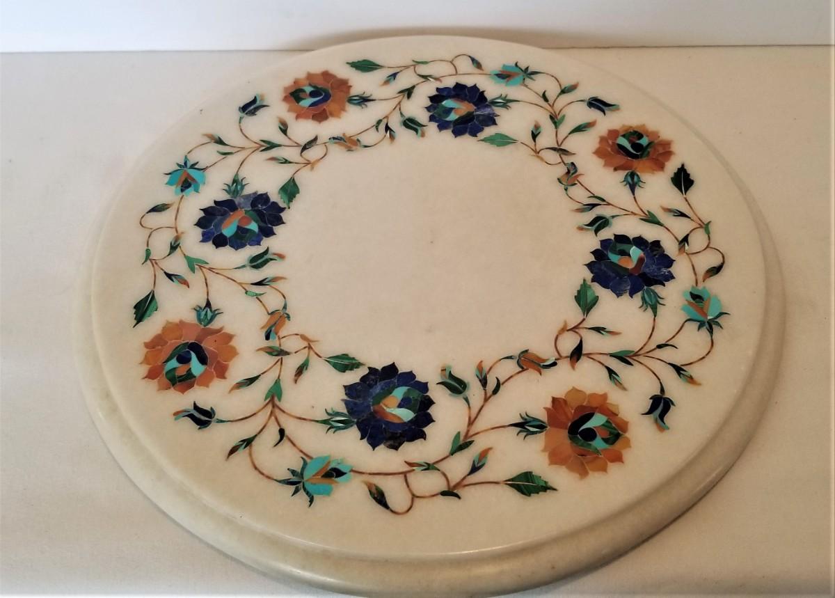 This thing is really beautiful - inlaid (colored stone) marble plateau (heavy) - floral motif - 12" across and in super nice condition.