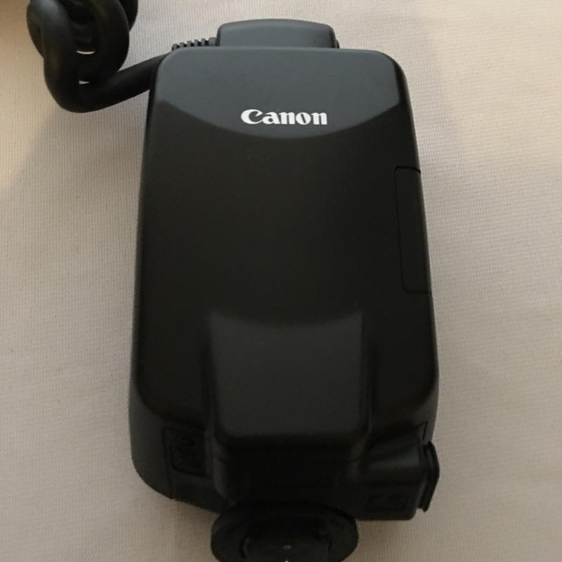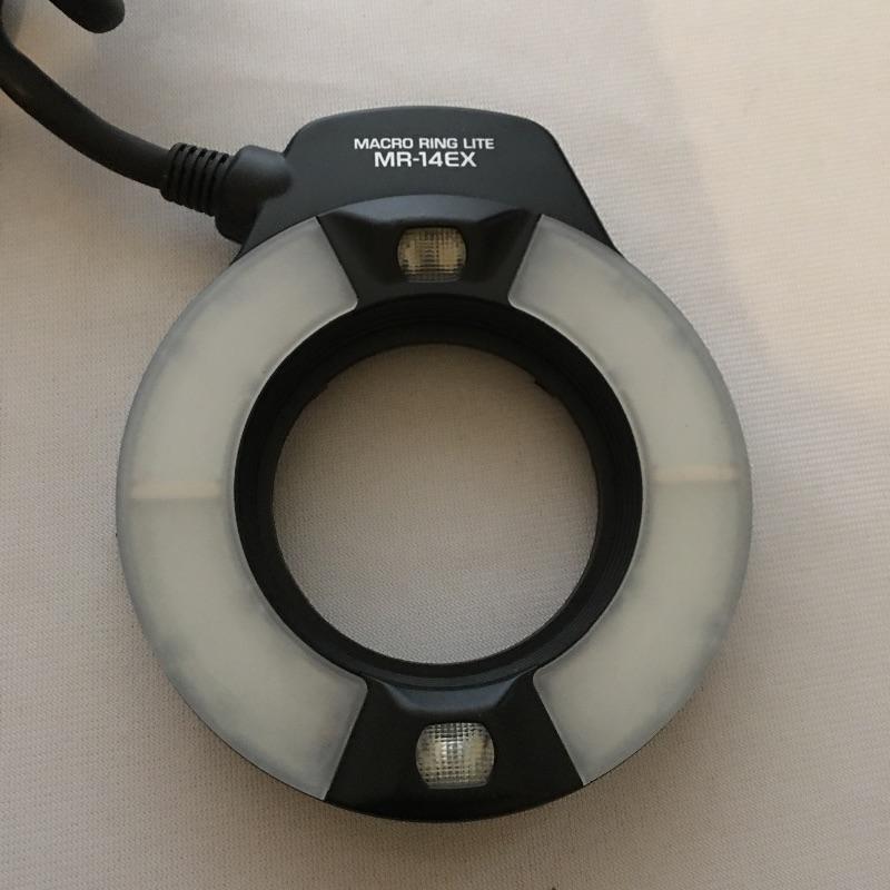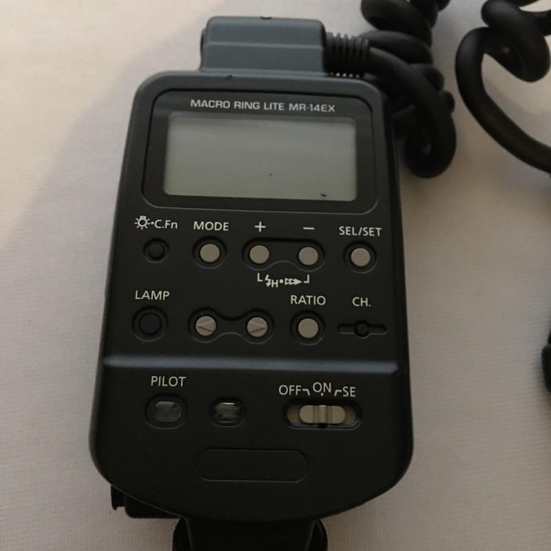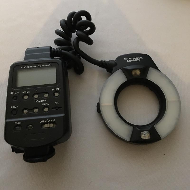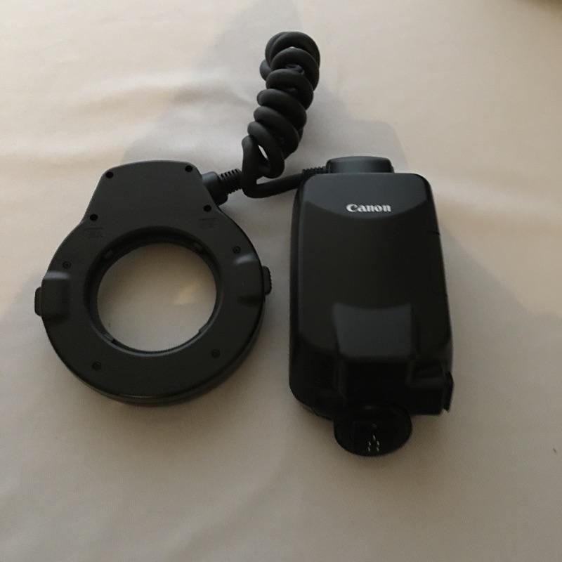 Canon MR-14EX macro ring lite. A great flash for close ups and portraits. Flash was not tested as it has no batteries. Takes four AA batteries.
