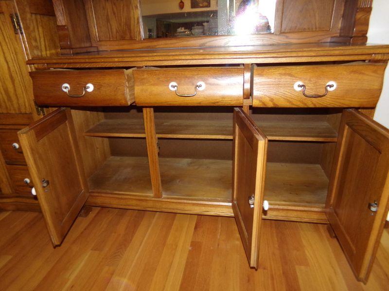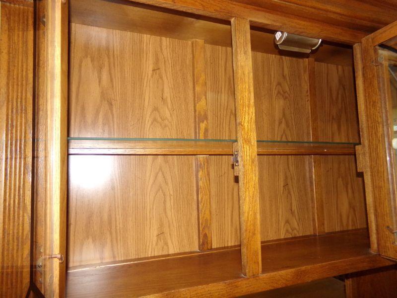 PLENTY OF STORAGE WITH 3 CABINETS AND 3 DRAWERS ON THE BOTTOM AND 3 GLASS FRONT CABINETS ON TOP
