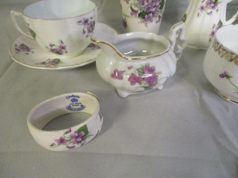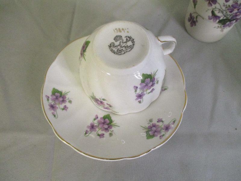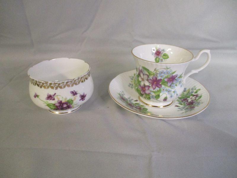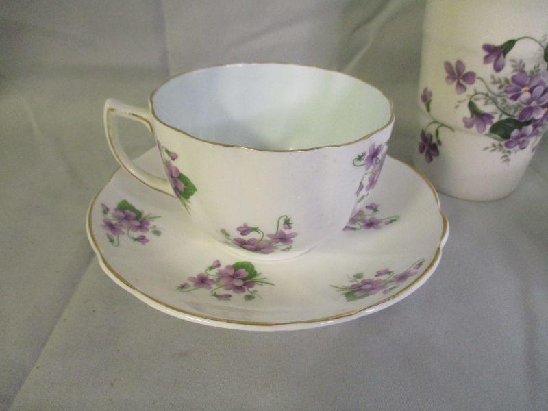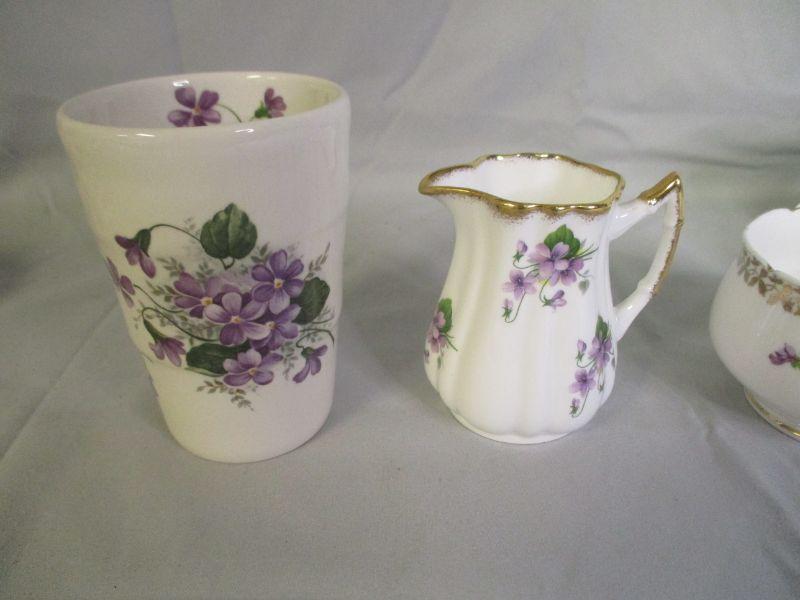 Some call them pansies, some call them violets, I call them purple flowers. All of the pieces are in excellent condition.