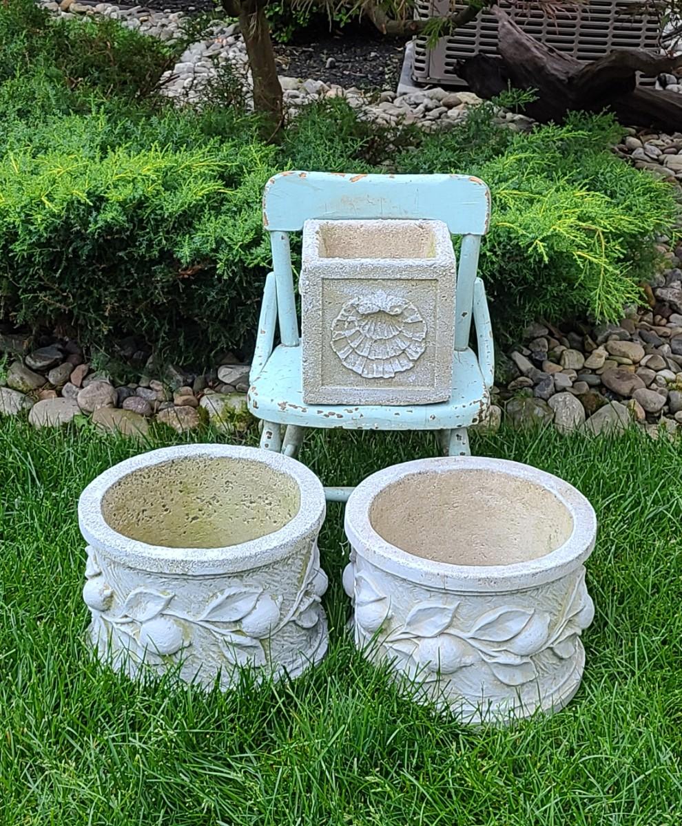 Lot 116: Concrete Planters & Small Chair