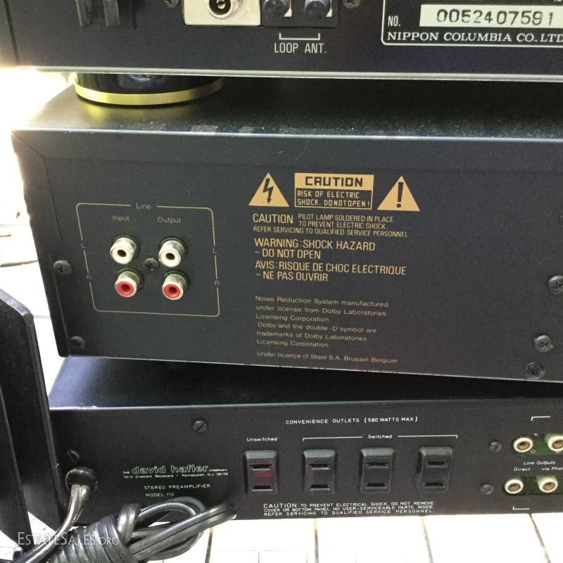 David Hafler XL-280 power amplifier and stereo preamplifier model 110. Denon audio component/ tuner. CR-2A cassette player. Microsoft joystick. Not certain as to degree of working order.