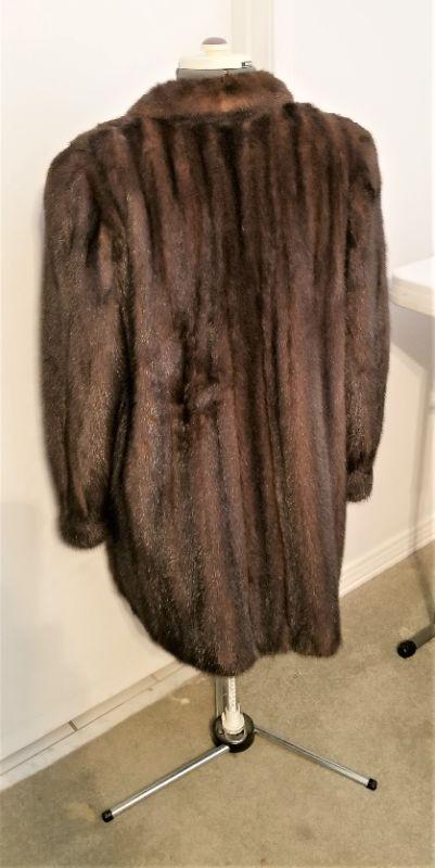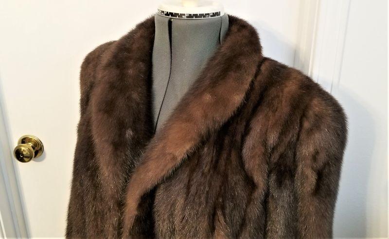 This beautiful dark brown mink coat is like new - any lady who loves fur would be proud to wear it. This is about a size 14. Rich, supple pelts - good lining. Looks like it's never been worn.