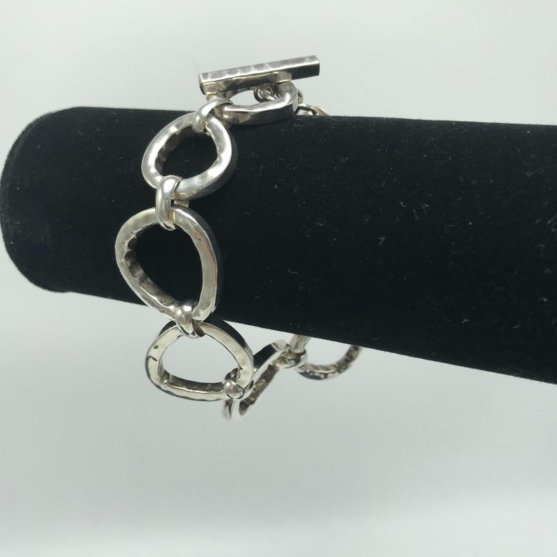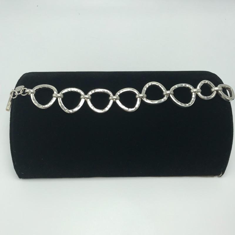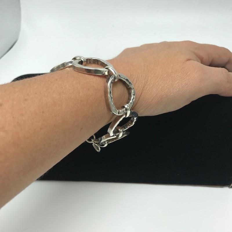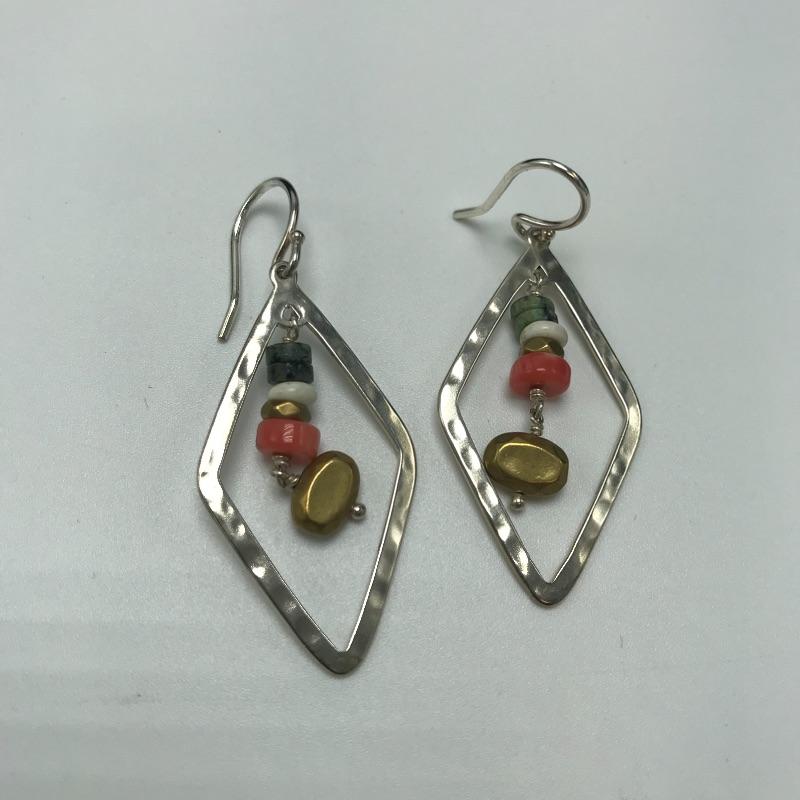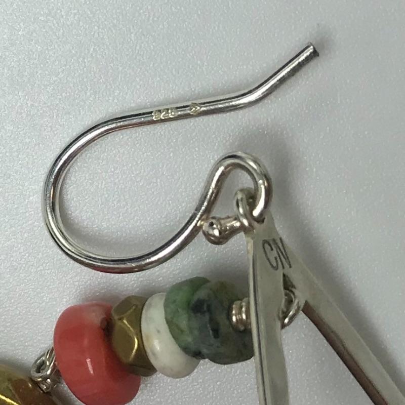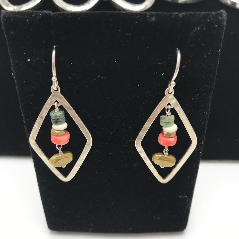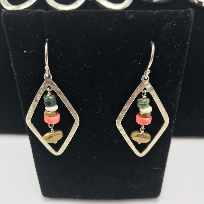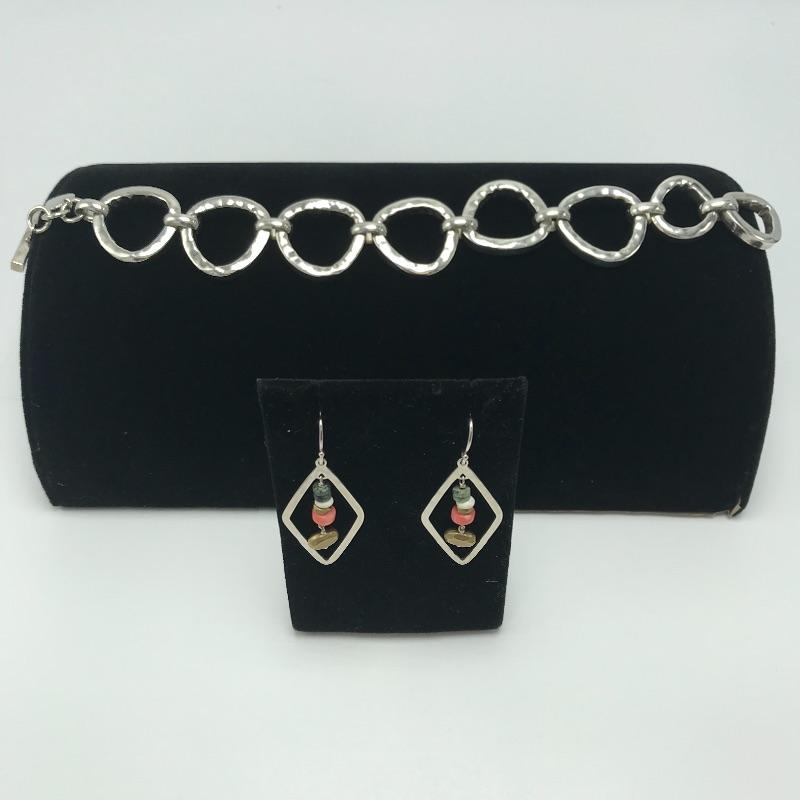 Lovely Silpada hammered sterling silver bracelet with a pair of open diamond shaped sterling earrings comprised with Howlite and coral.