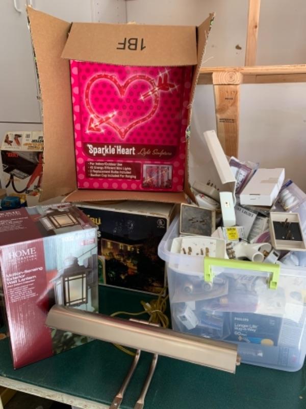 Lot 116. Lighting supplies, decorative holiday lights, plugs, timers, etc.--$25