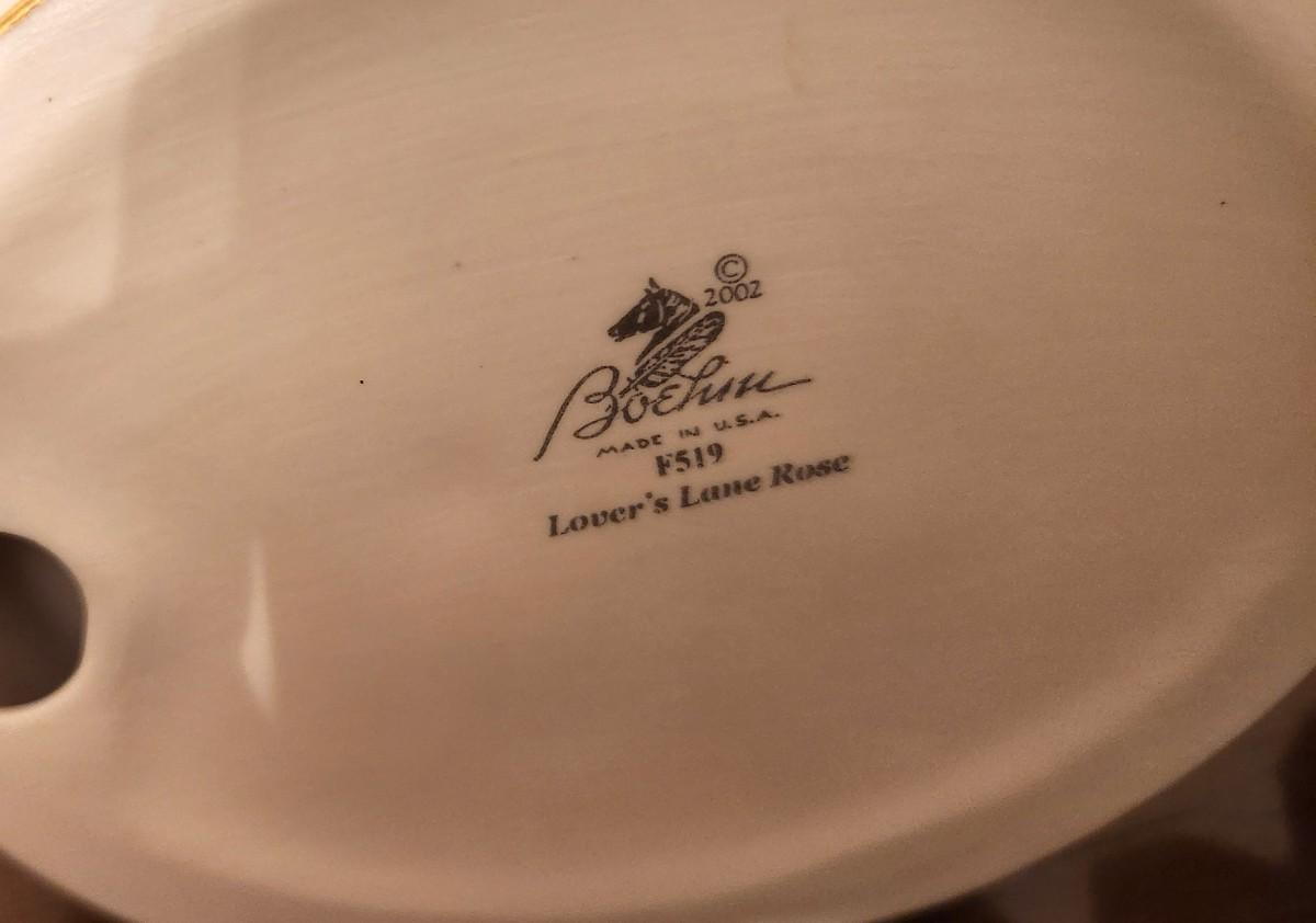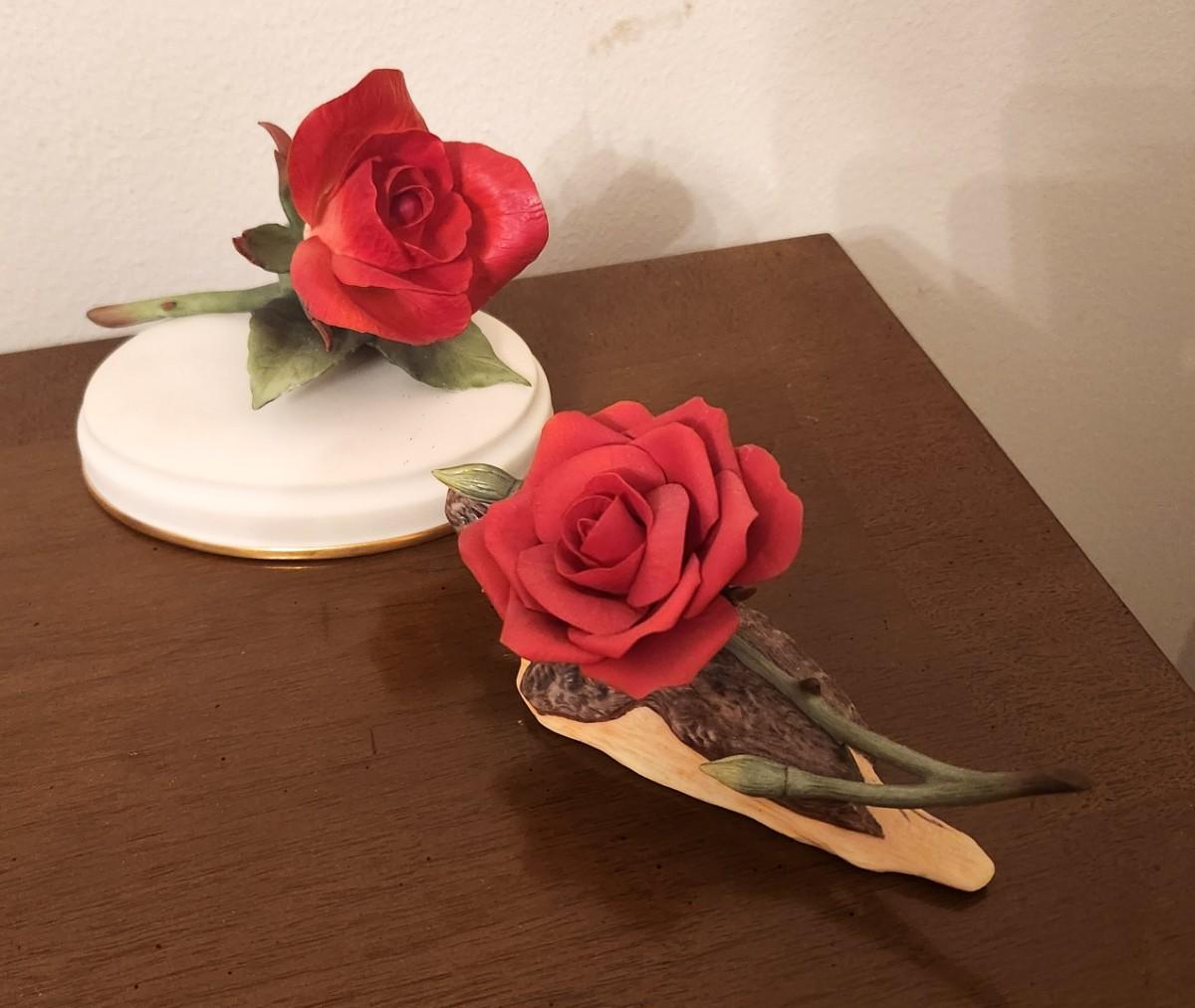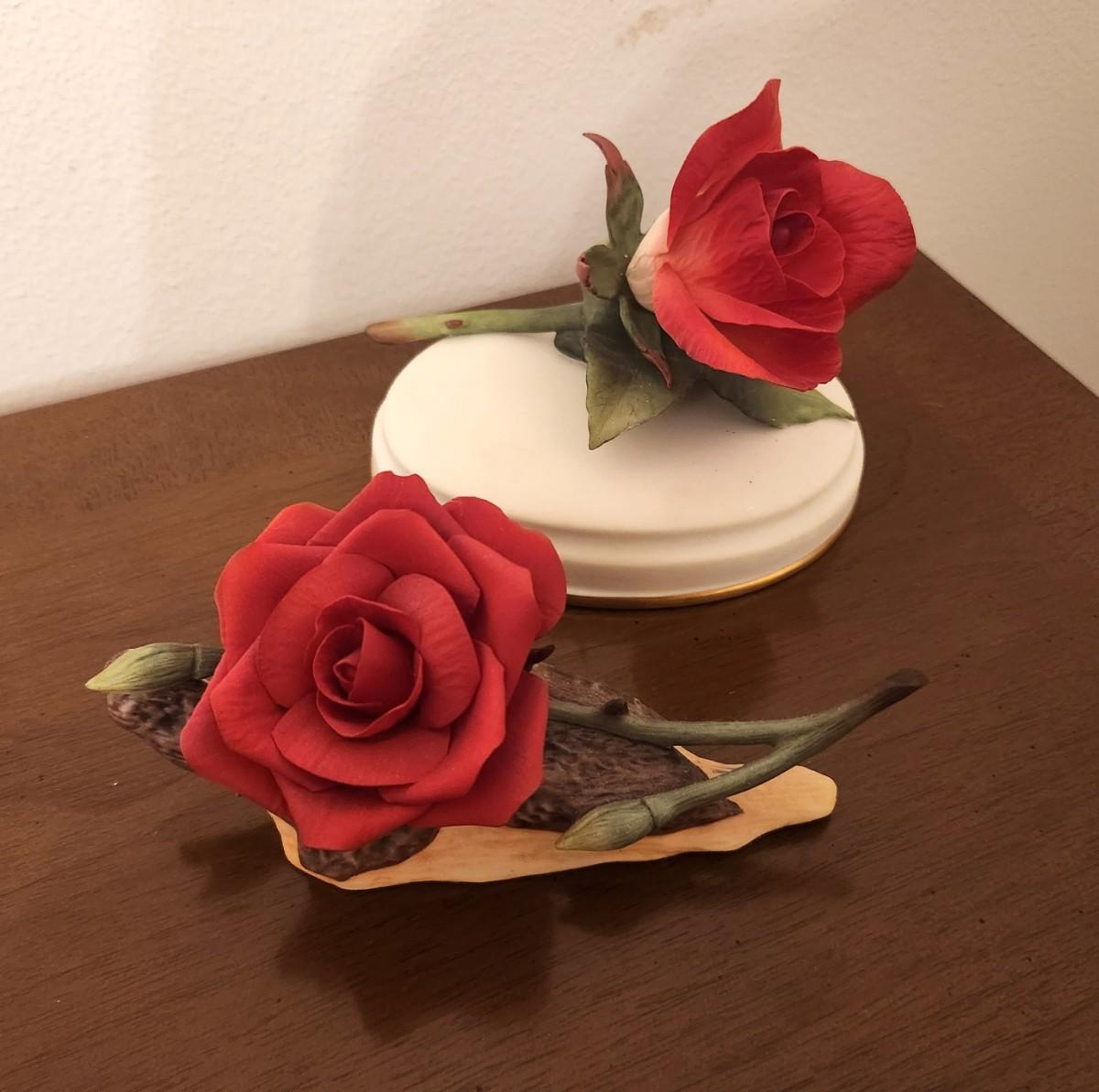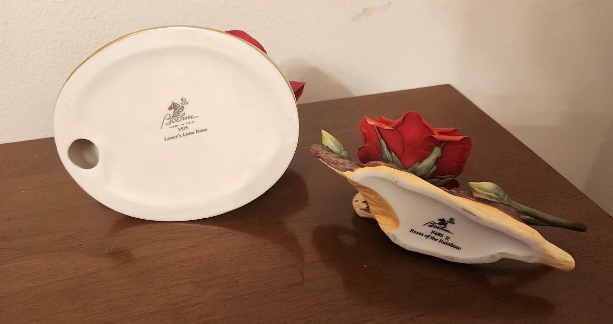 Lot of 2 Boehm (marked) porcelain flowers - Rose of the Rainbow (F485) and Lovers Lane Rose (F519). Both in good condition.