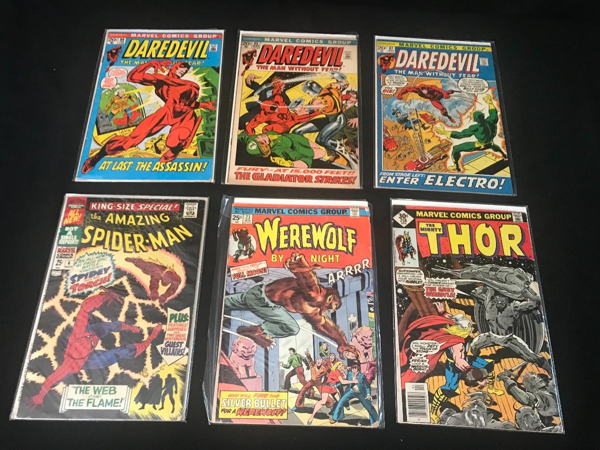 Marvel Comics - Daredevil, Spider-Man, Thor, Werewolf - all individually bagged and boarded. Please see all pictures as they are the best representation of the items. The pictures show condition, measurements if taken, and what is included in the lot. Due to the large amount that we photograph and the time frame, we are not always able to take measurements. All items unless noted, are pre-owned and have been used. If you purchased furniture, you must bring help. We do not allow one person to carry large furniture out on their own. Bring help, tools and a truck for the safety of our client’s homes, and your personal safety. Company policy. Thank you.