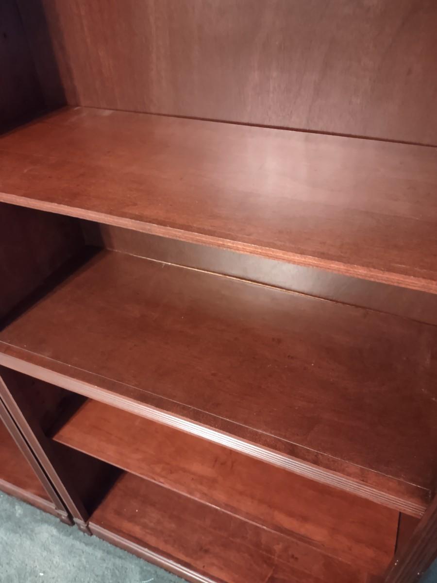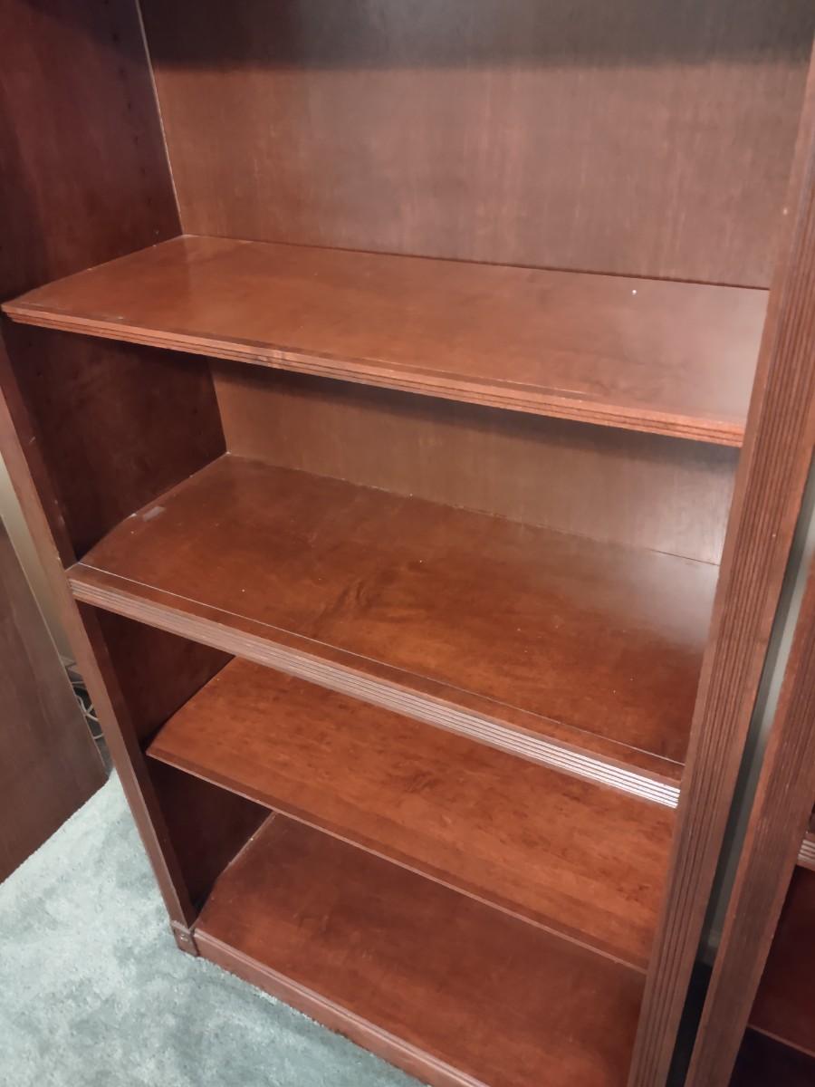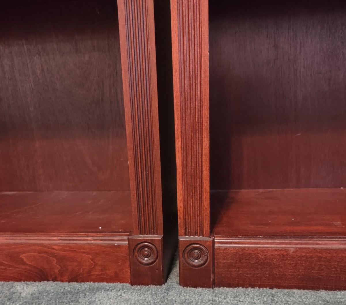 Pair Of Georgian Cherry Book Shelves 30×12×84. These are perfect for books, frames, collectibles, anywhere in the home. Not solid wood, but hard to tell. Please see all pictures as they are the best representation of the items. The pictures show condition, measurements if taken, and what is included in the lot. Due to the large amount that we photograph and the time frame, we are not always able to take measurements. All items unless noted, are pre-owned and have been used. If you purchased furniture, you must bring help. We do not allow one person to carry large furniture out on their own. Bring help, tools and a truck for the safety of our client’s homes, and your personal safety. Company policy. Thank you.
