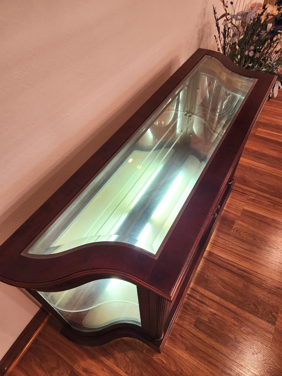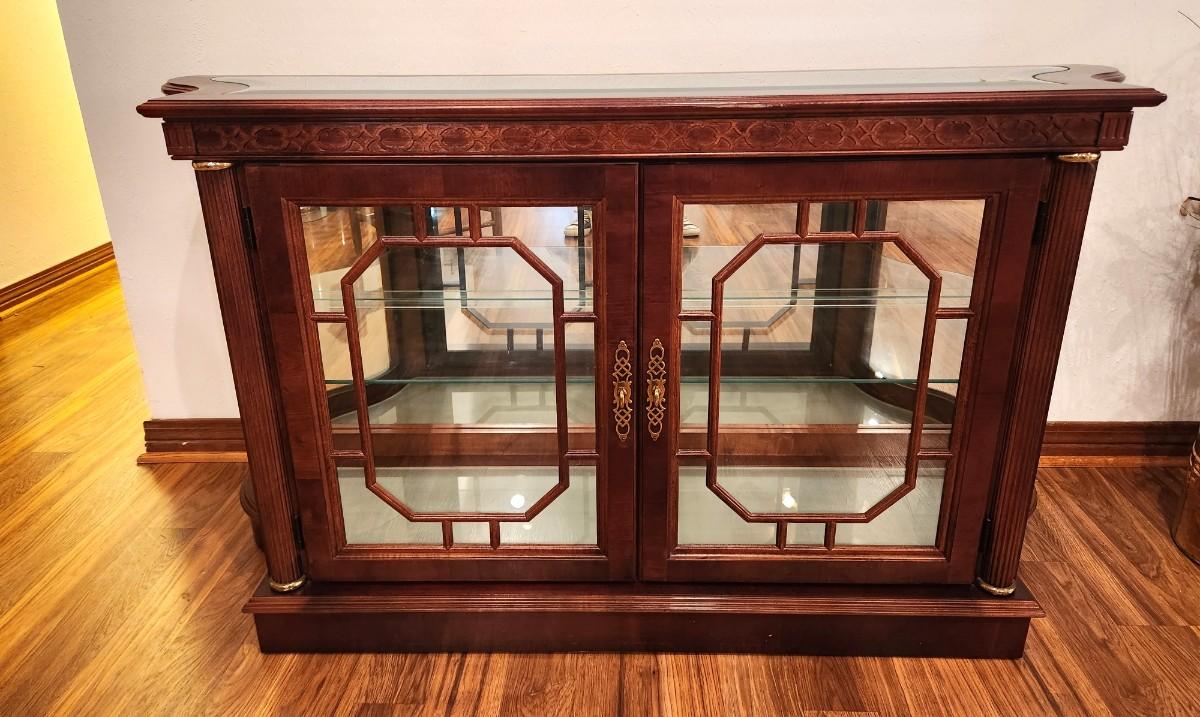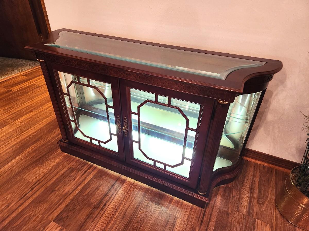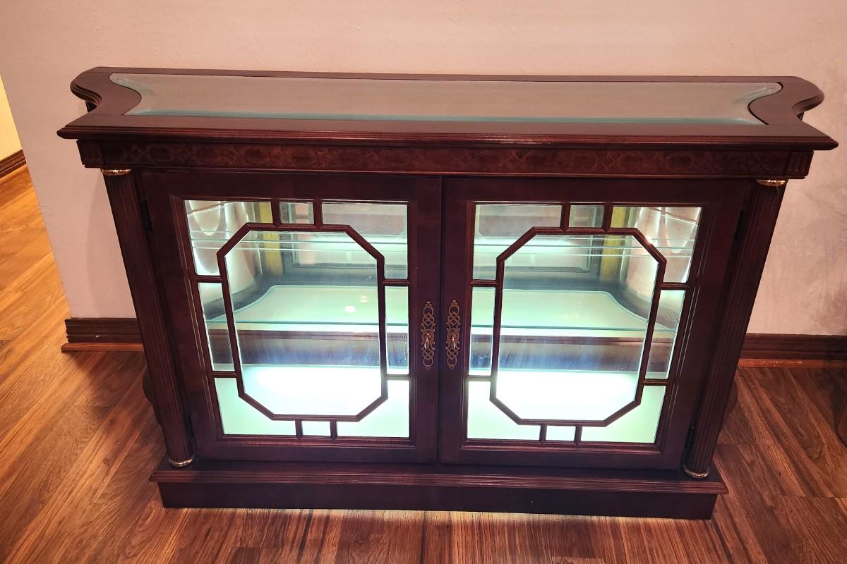 Very nice Pulaski Furniture Company Lighted display cabinet - glass shelf (adjustable). 53" across, 29" tall, good condition.
