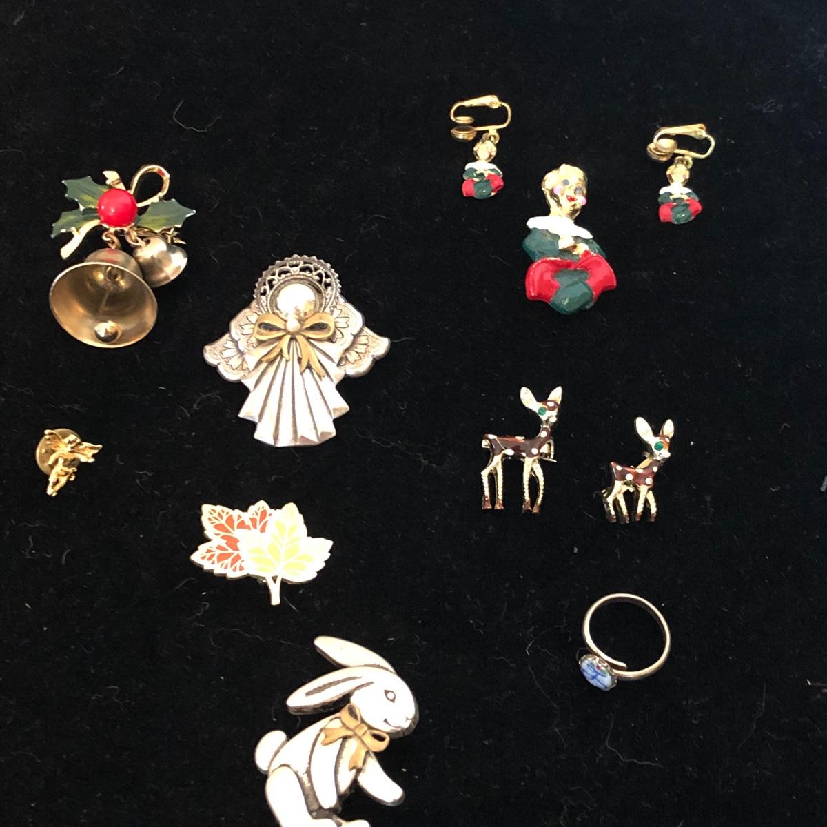 This lot contains two beautiful Reed and Barton Christmas crosses, eight pins, one ring and earrings that match a pin. Shipping Available.