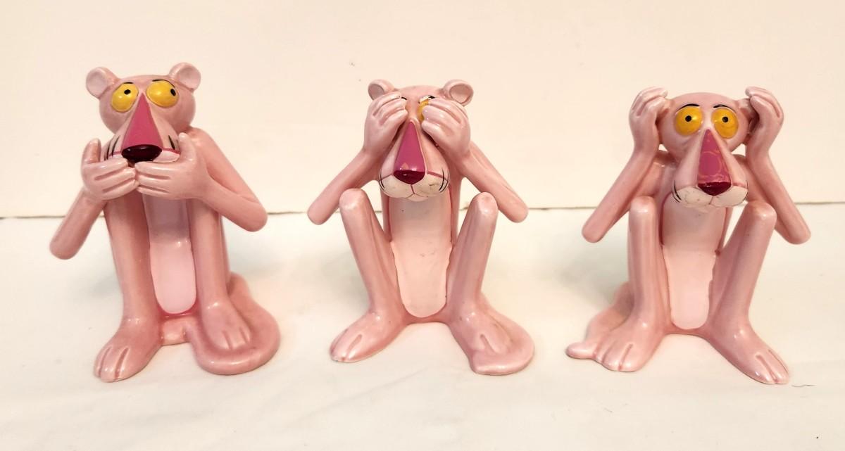 Lot #114  Set of 3 Scarce Pink Panther figurines - Hear, See, Say no Evil
