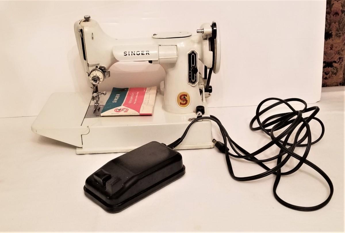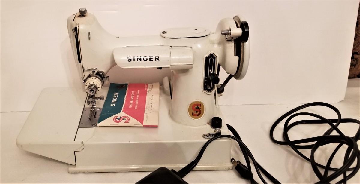 Lot #116  Singer FEATHERWEIGHT Sewing Machine - White - Works