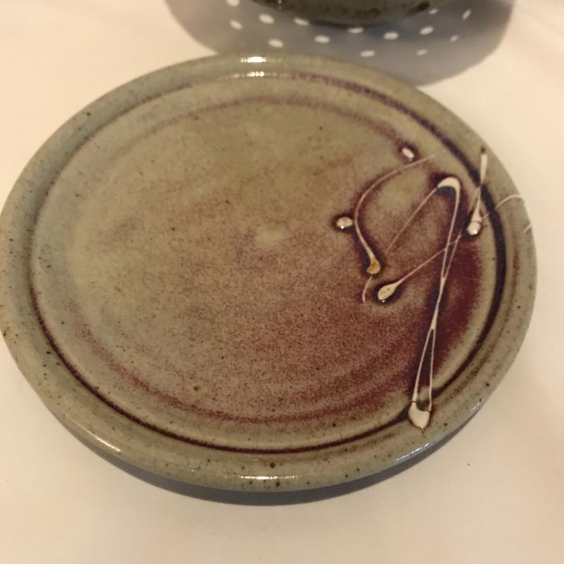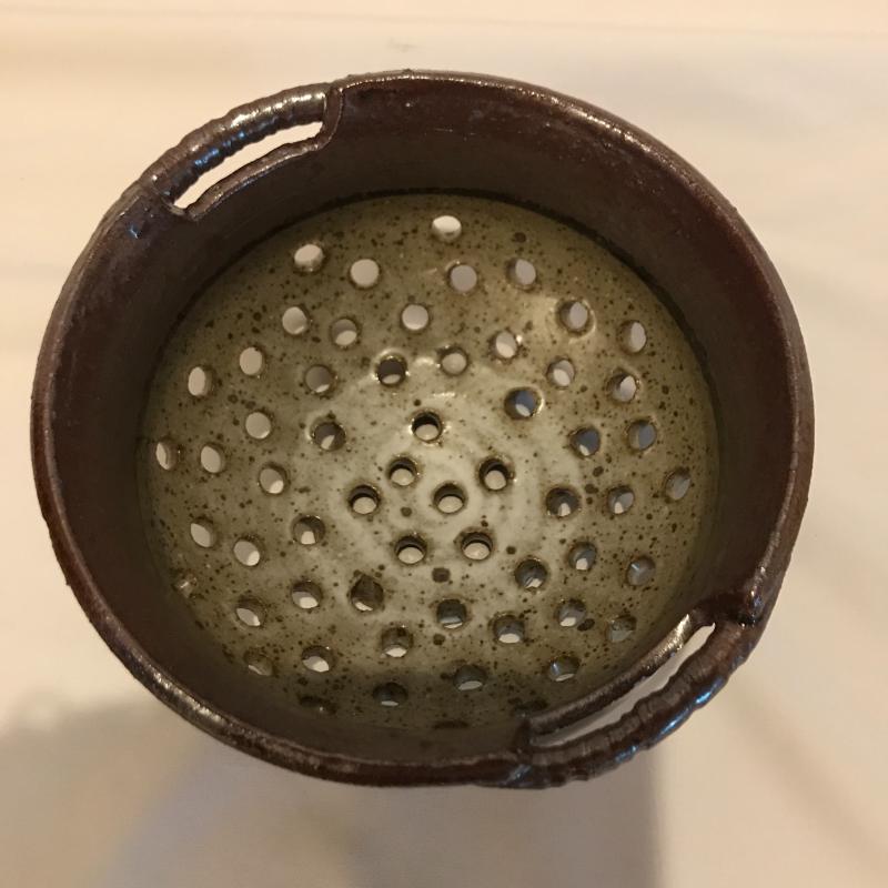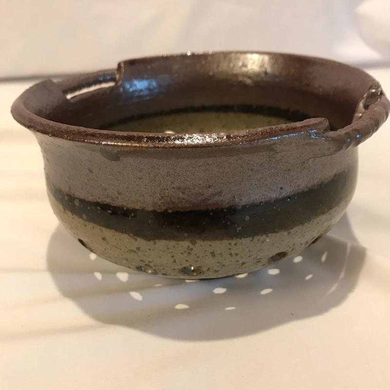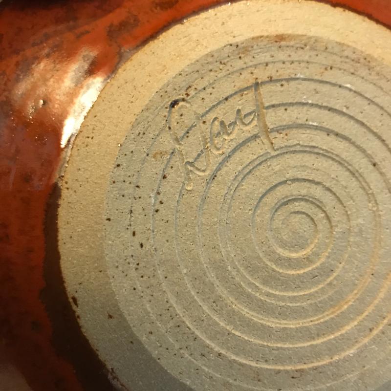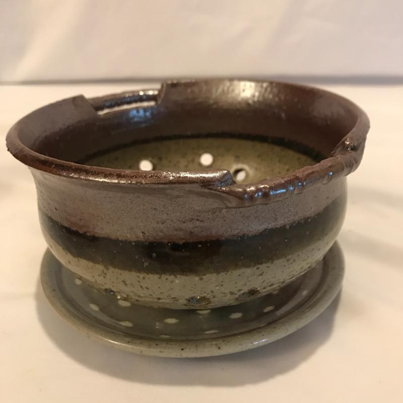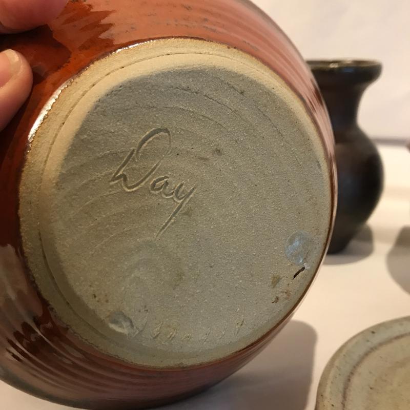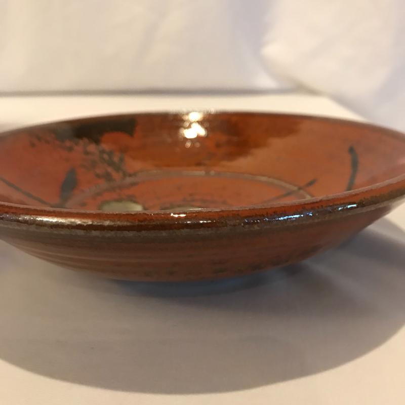 Two beautiful burnt orange glazed pieces. Largest bowl is 9”d x 2.5”h. One strainer bowl (6”d) and a glazed plate. One small bud vase that is 5”h. Shipping or local pick up in Asheville.
