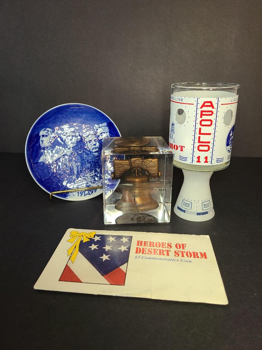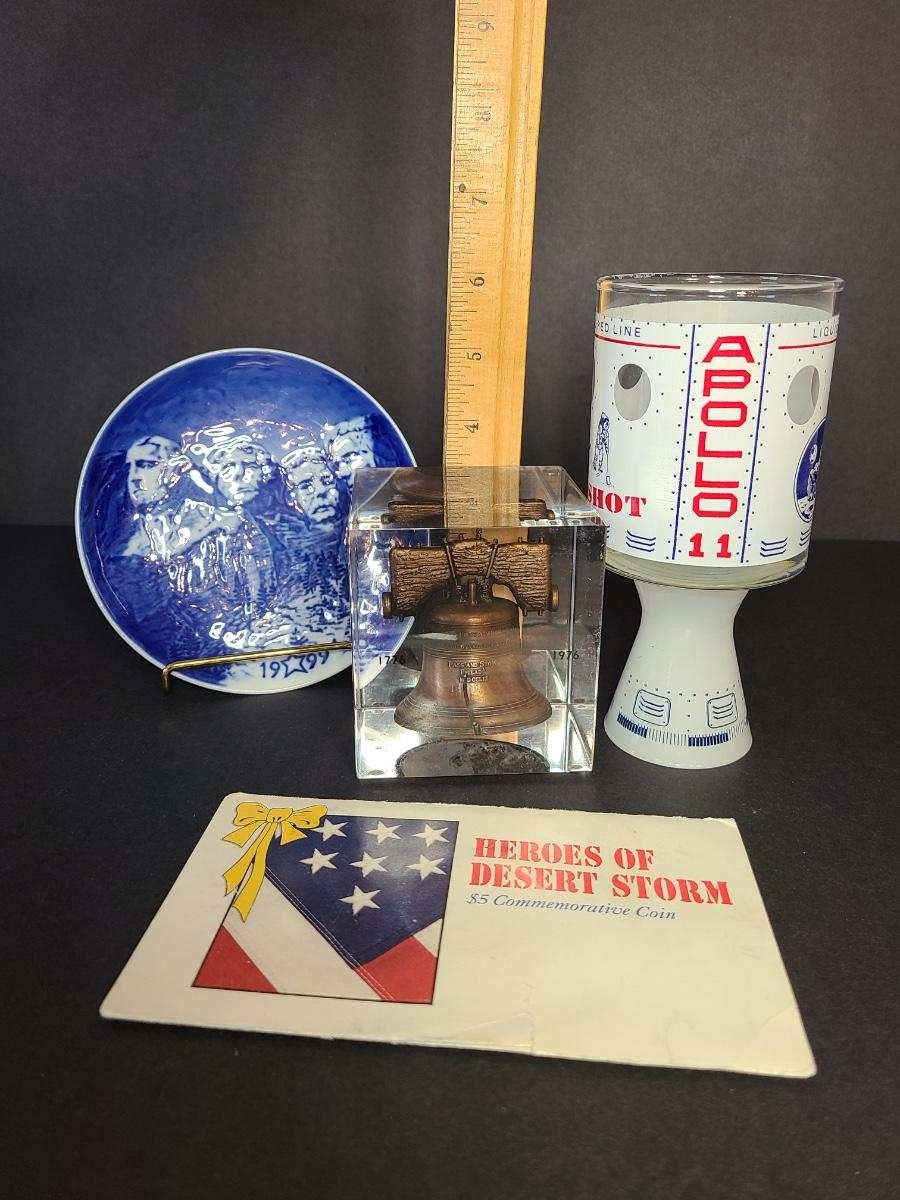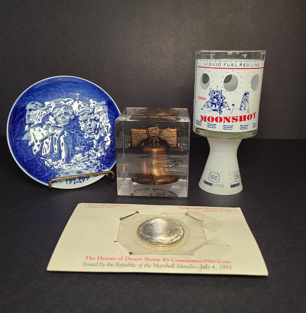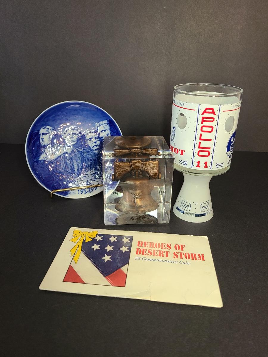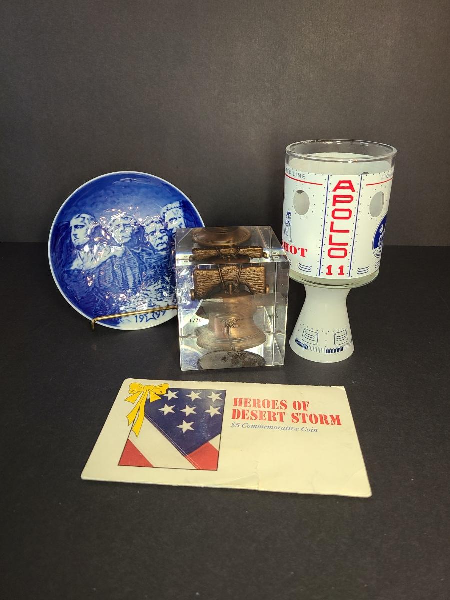 Lot 116: Vintage Collectibles: Coin, Apollo Glass, Liberty Bell Paperweight and More