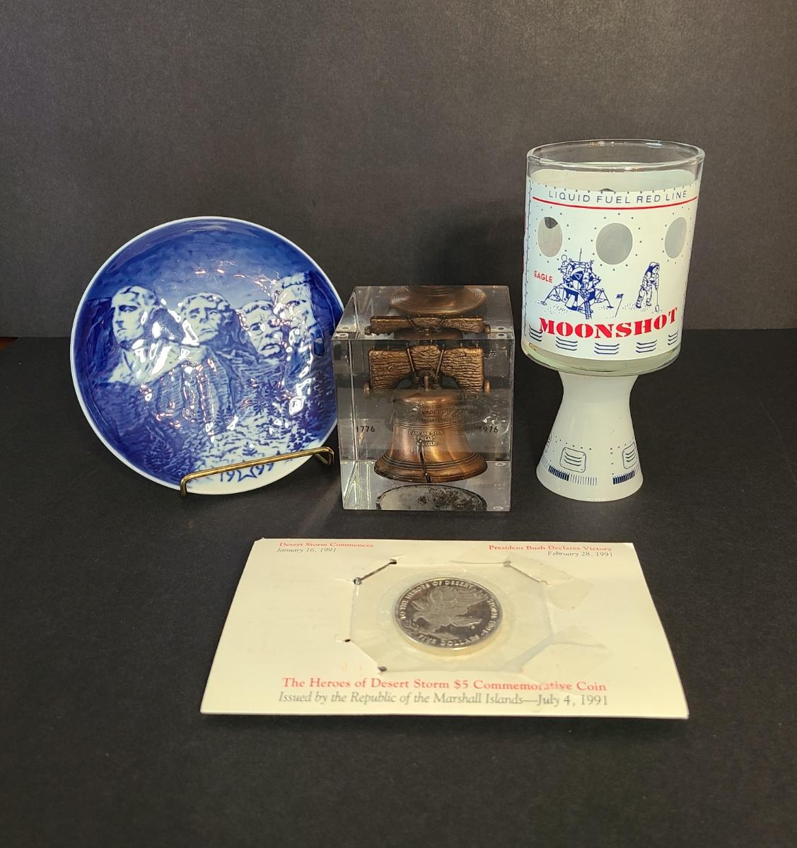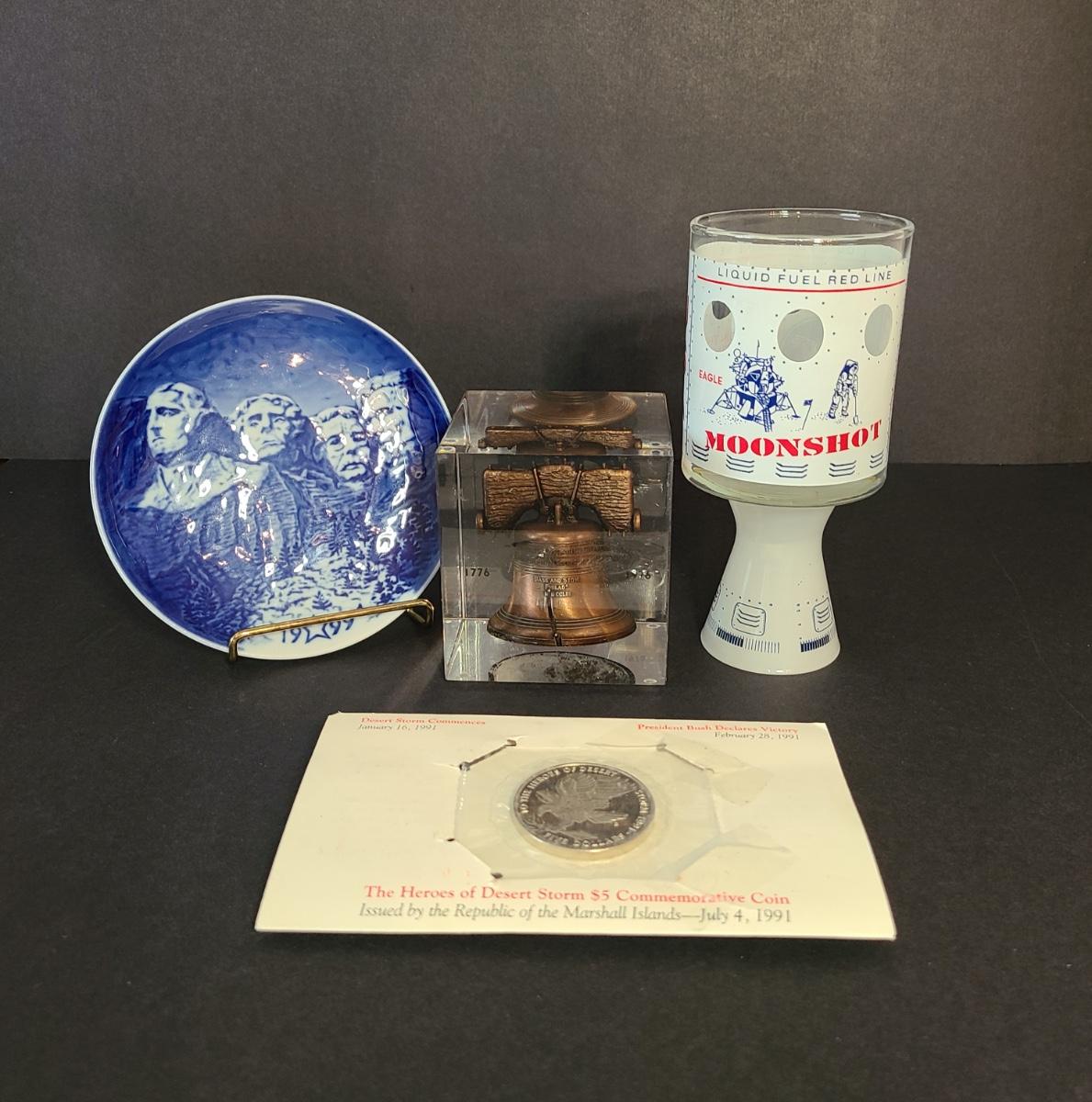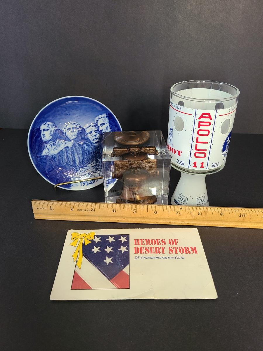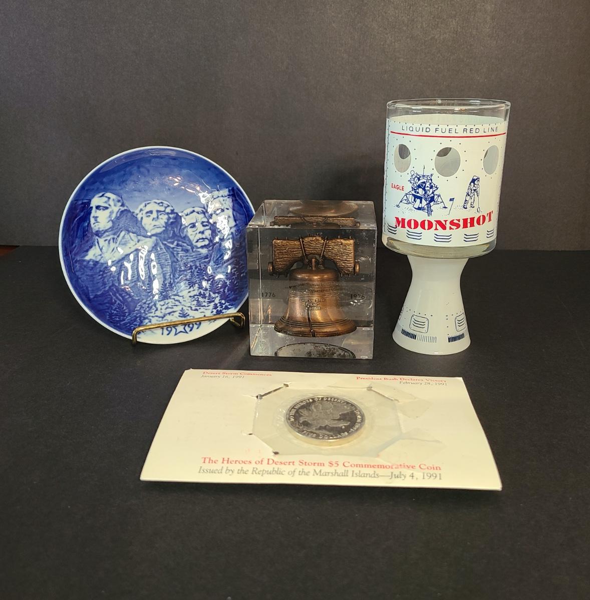 Lot 116: Vintage Collectibles: Coin, Apollo Glass, Liberty Bell Paperweight and More