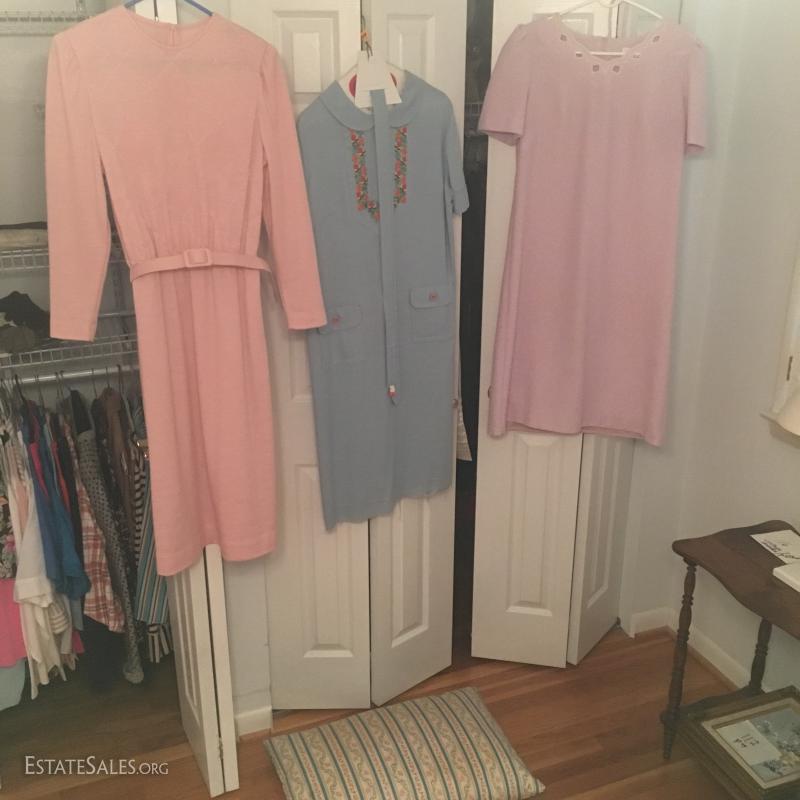 3 like-new vintage dresses size medium, plus dow- filled pillow. This lot is available for shipping or local pick up in Asheville, NC.