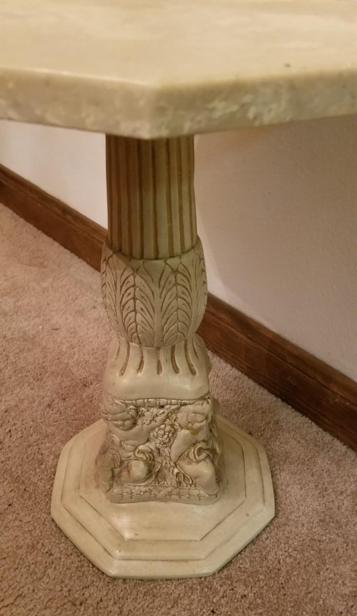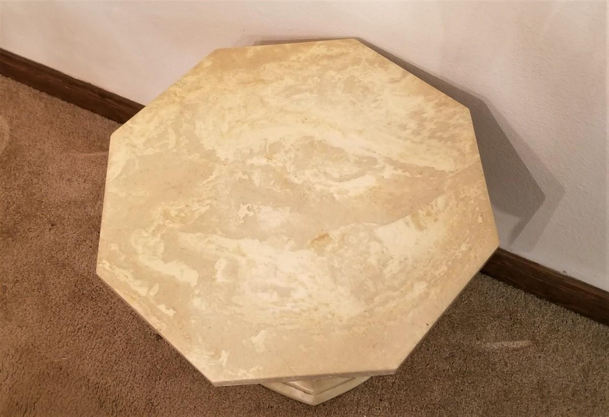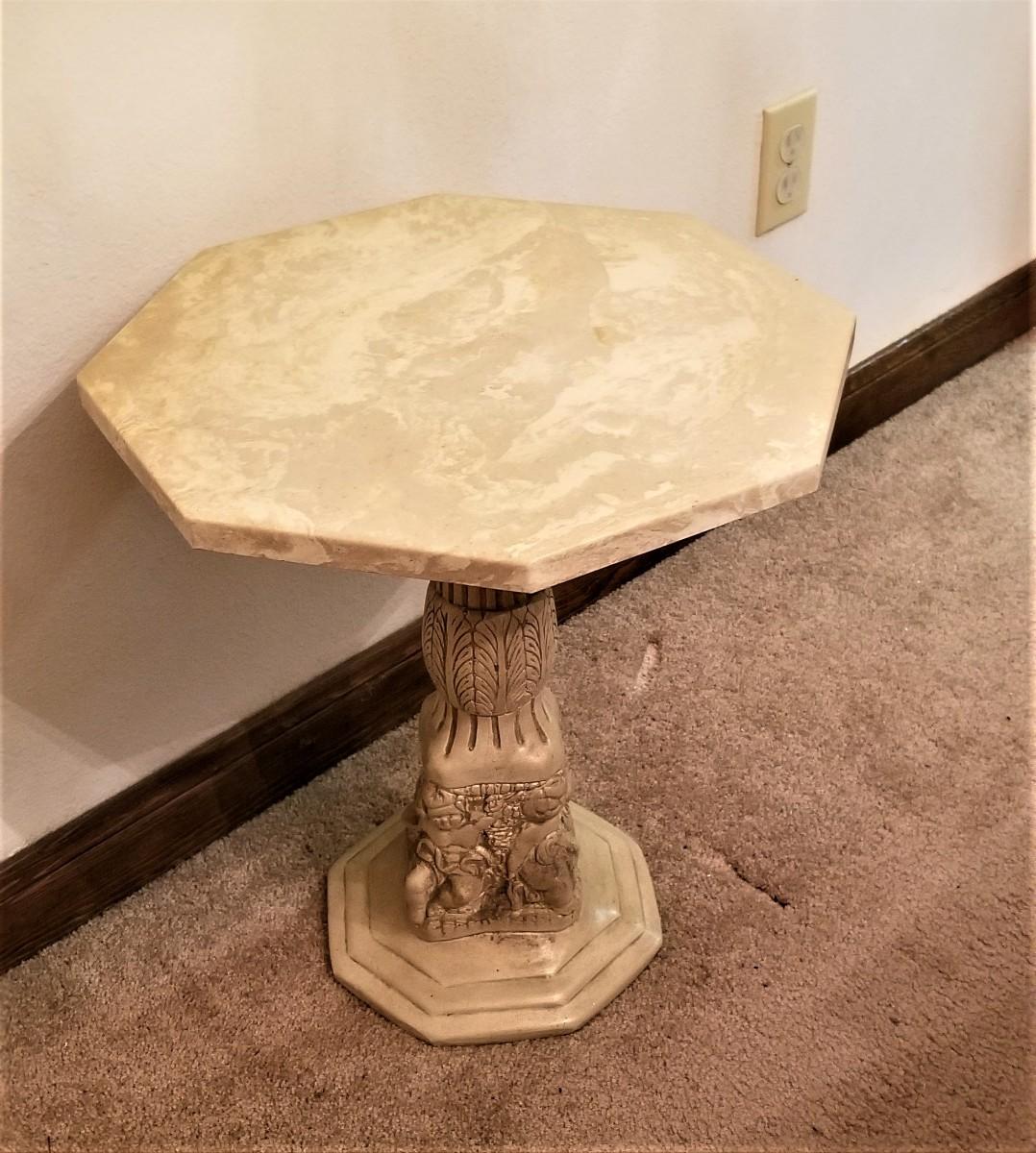 Vintage faux marble accent table - octagonal in shape - ceramic base - a few small dings. 16" x 16", 18" tall.