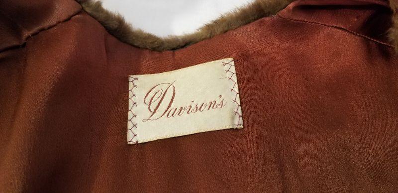 Vintage fur capelet - I think it's dyed rabbit - good, clean lining. Tag from "Davison's". Good for someone sized 8-16. Hook closure. Has slits in the front you can slip your arms through.
