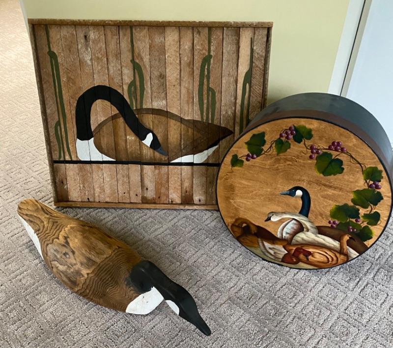 With hand carved goose decoy and painted round box
