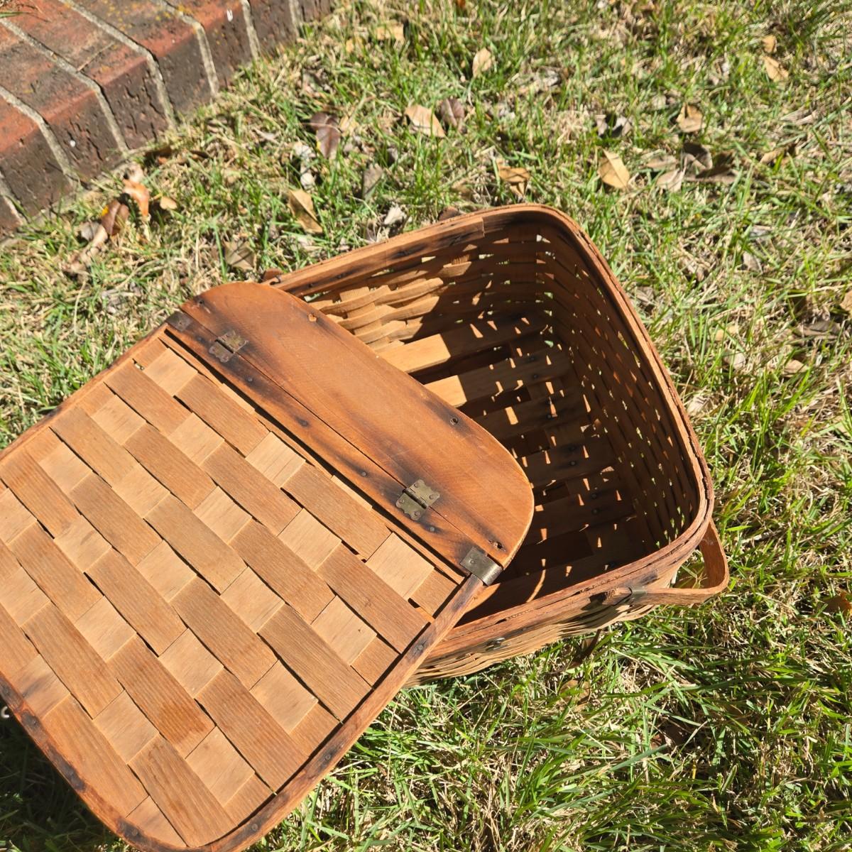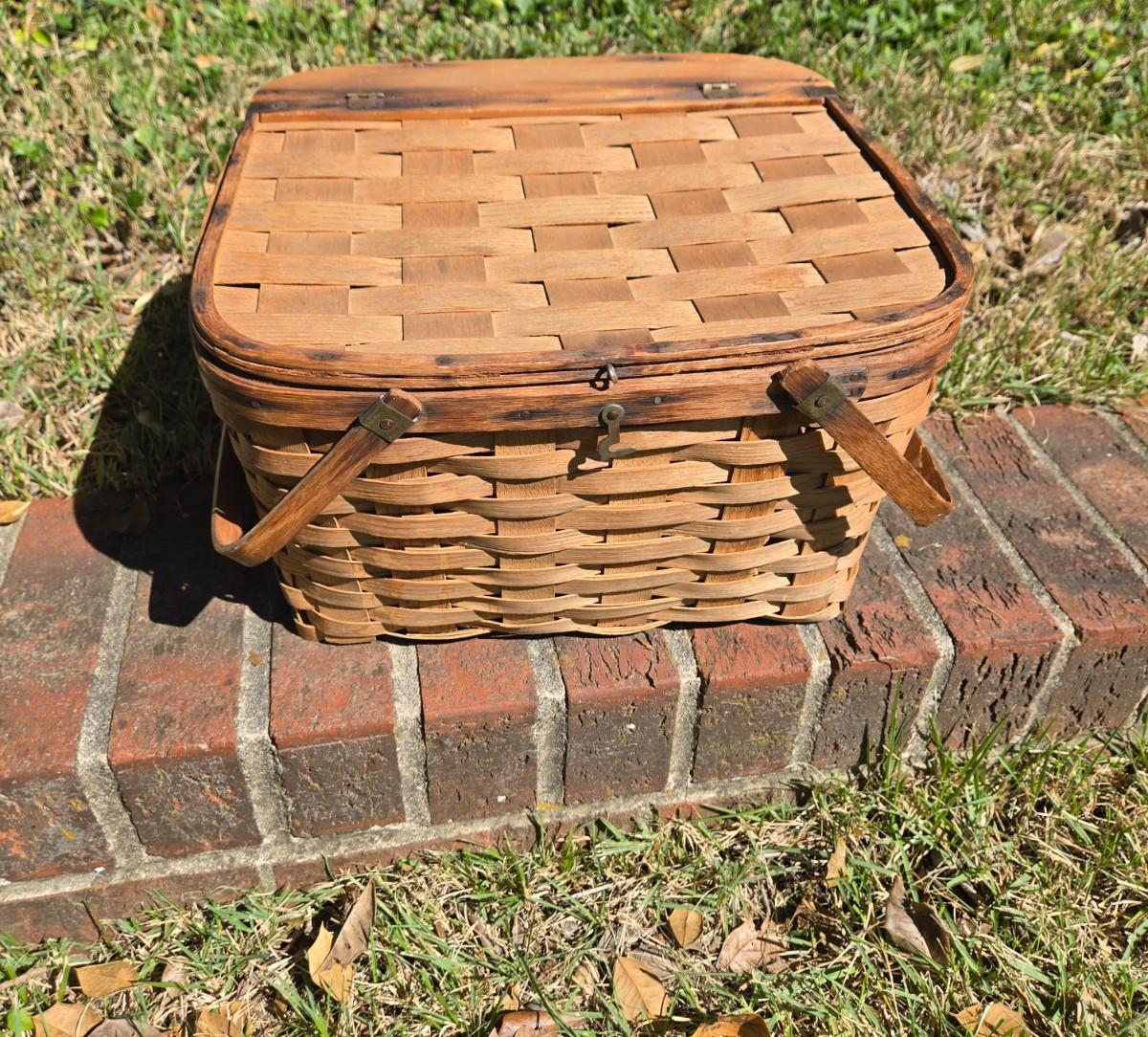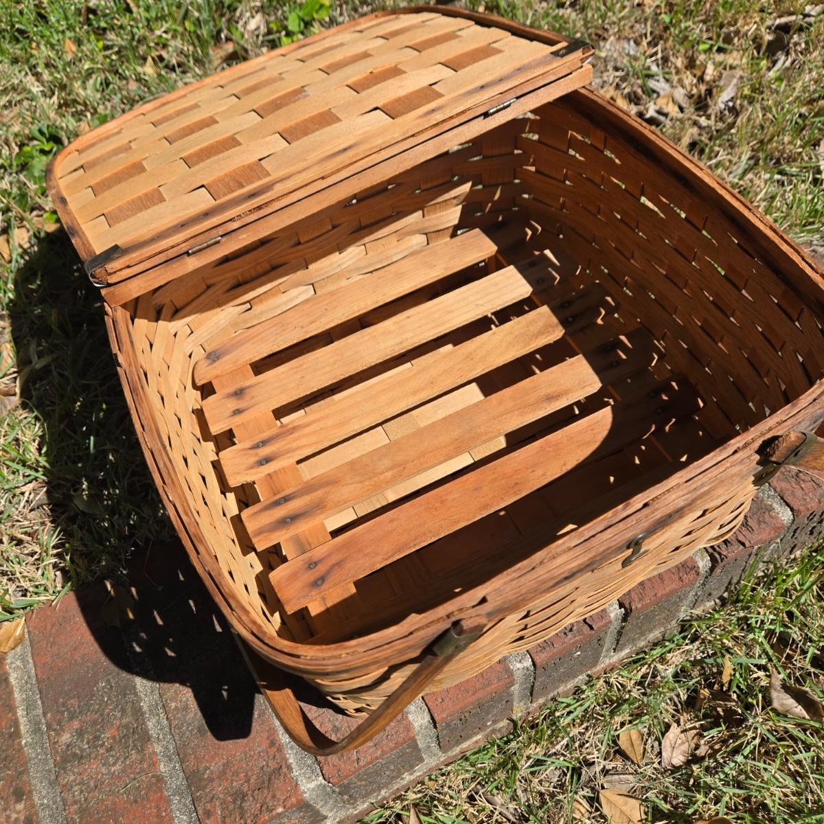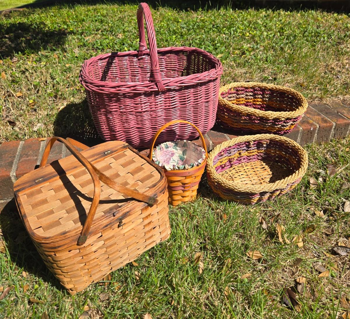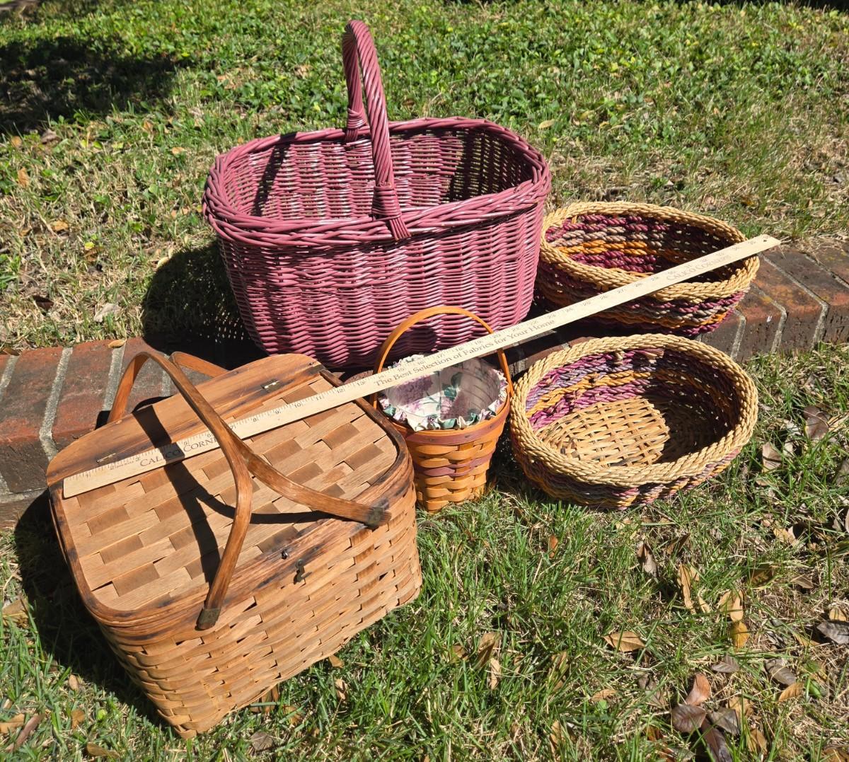 LOT 3: Vintage Pie Carrier Picnic Basket, 1994 Longaberger Basket, and Other Colorful Baskets