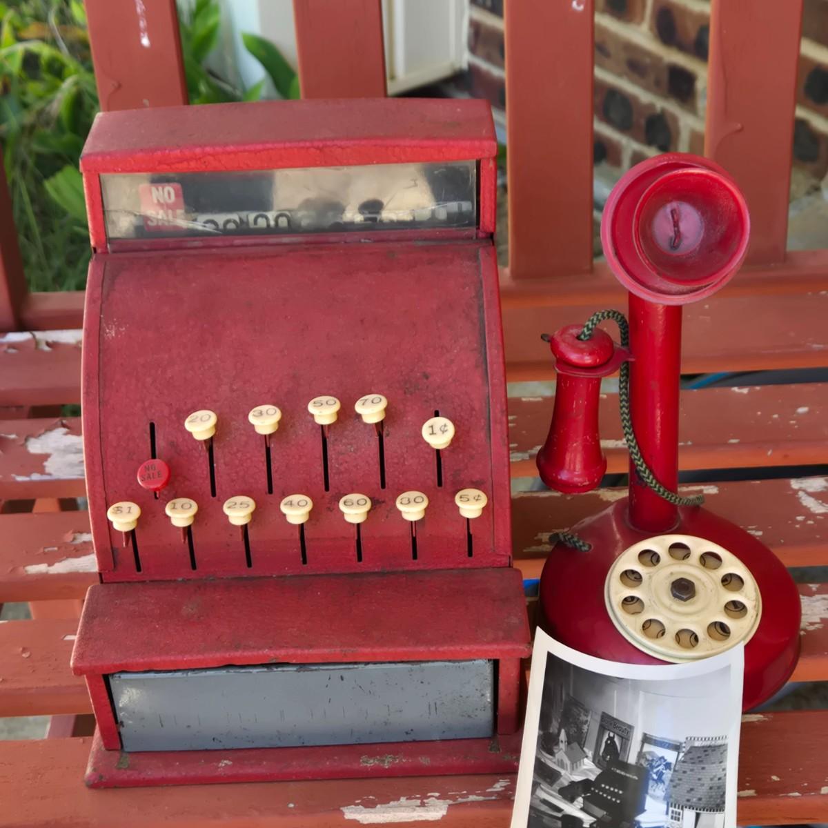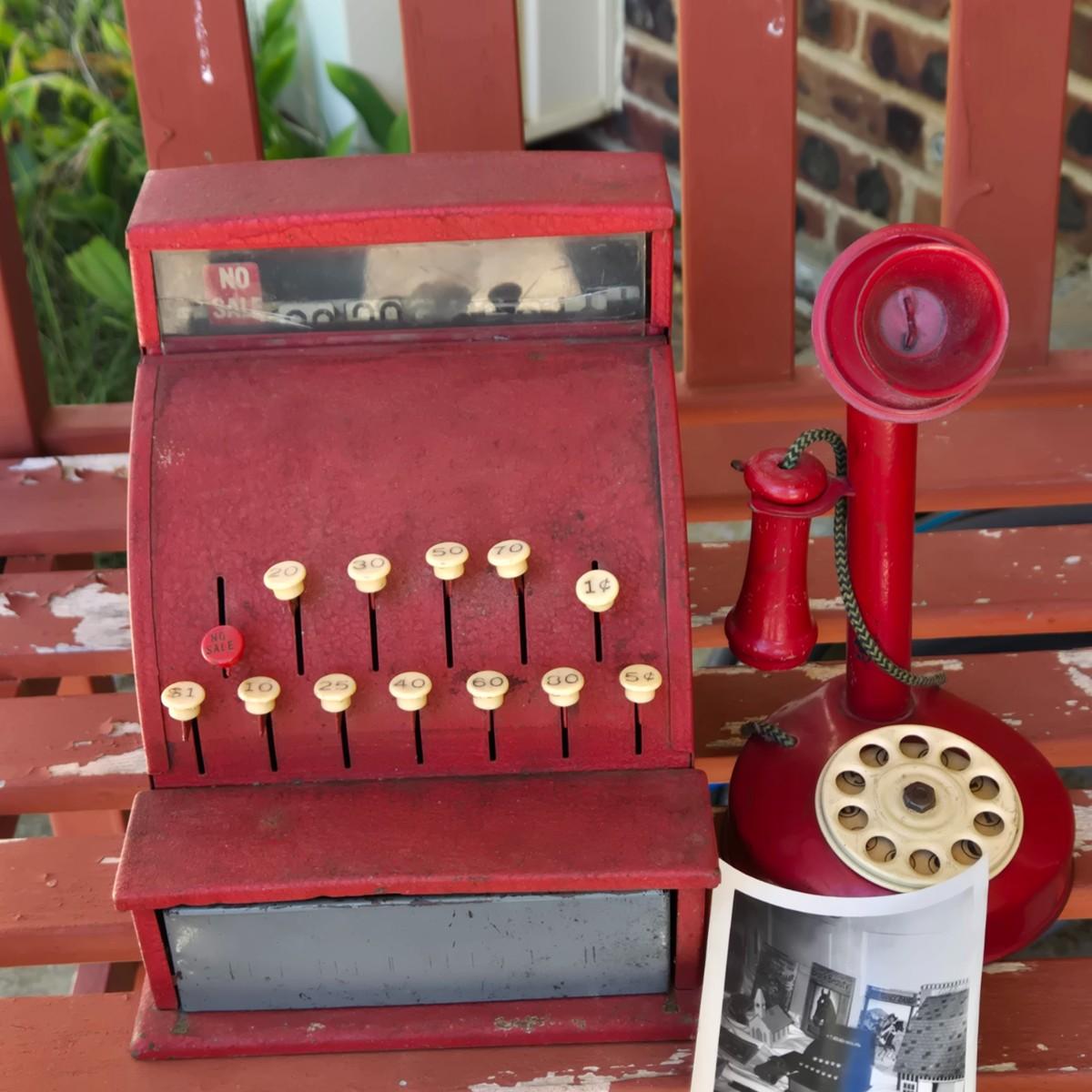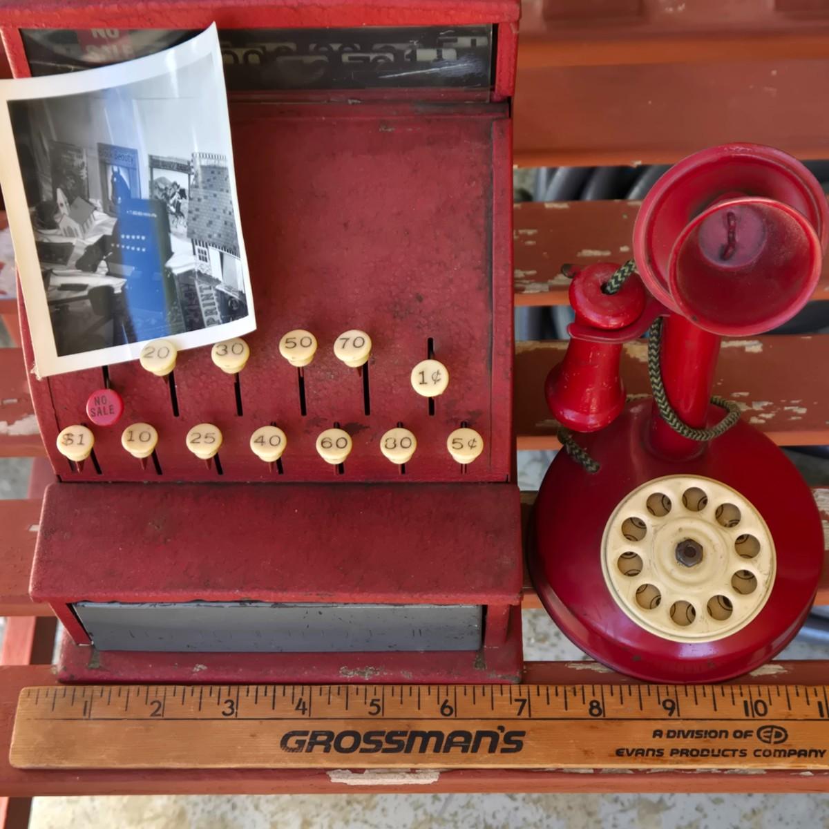 LOT 7: Vintage Metal Toy Cash Register and Toy Candlestick Telephone