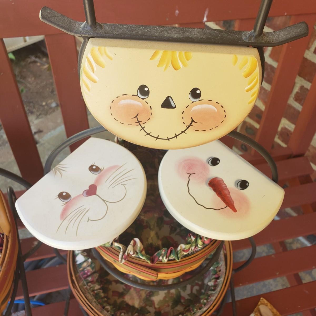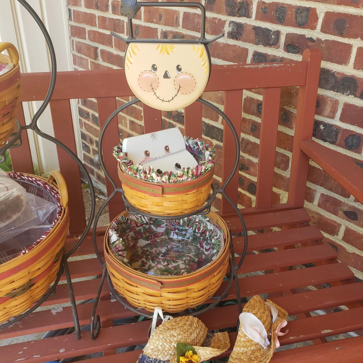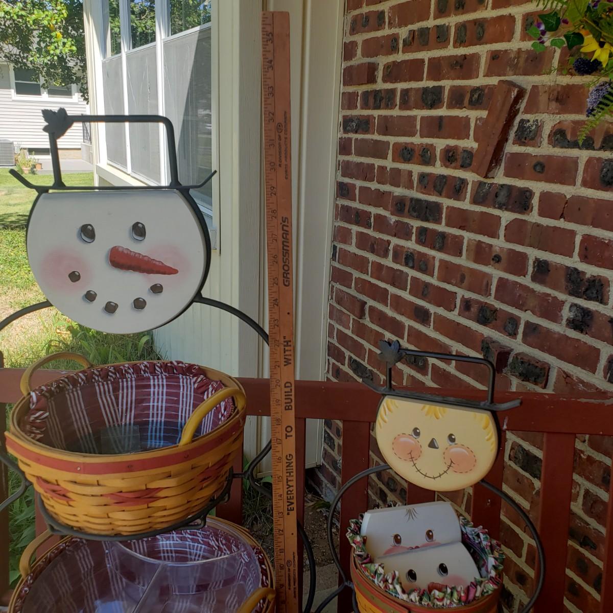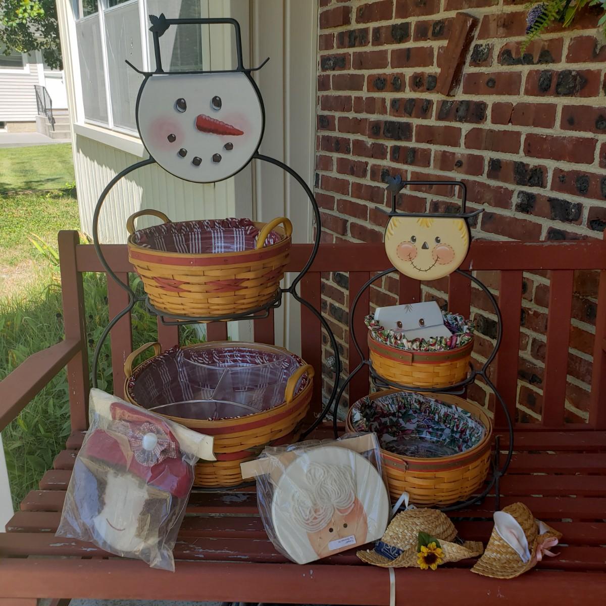 LOT 14G: Longaberger Snowman Stands with Baskets and Accessories & Extra Faces