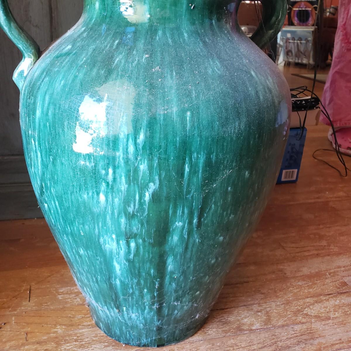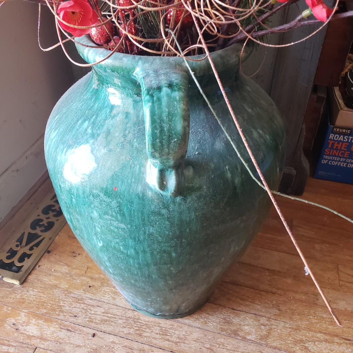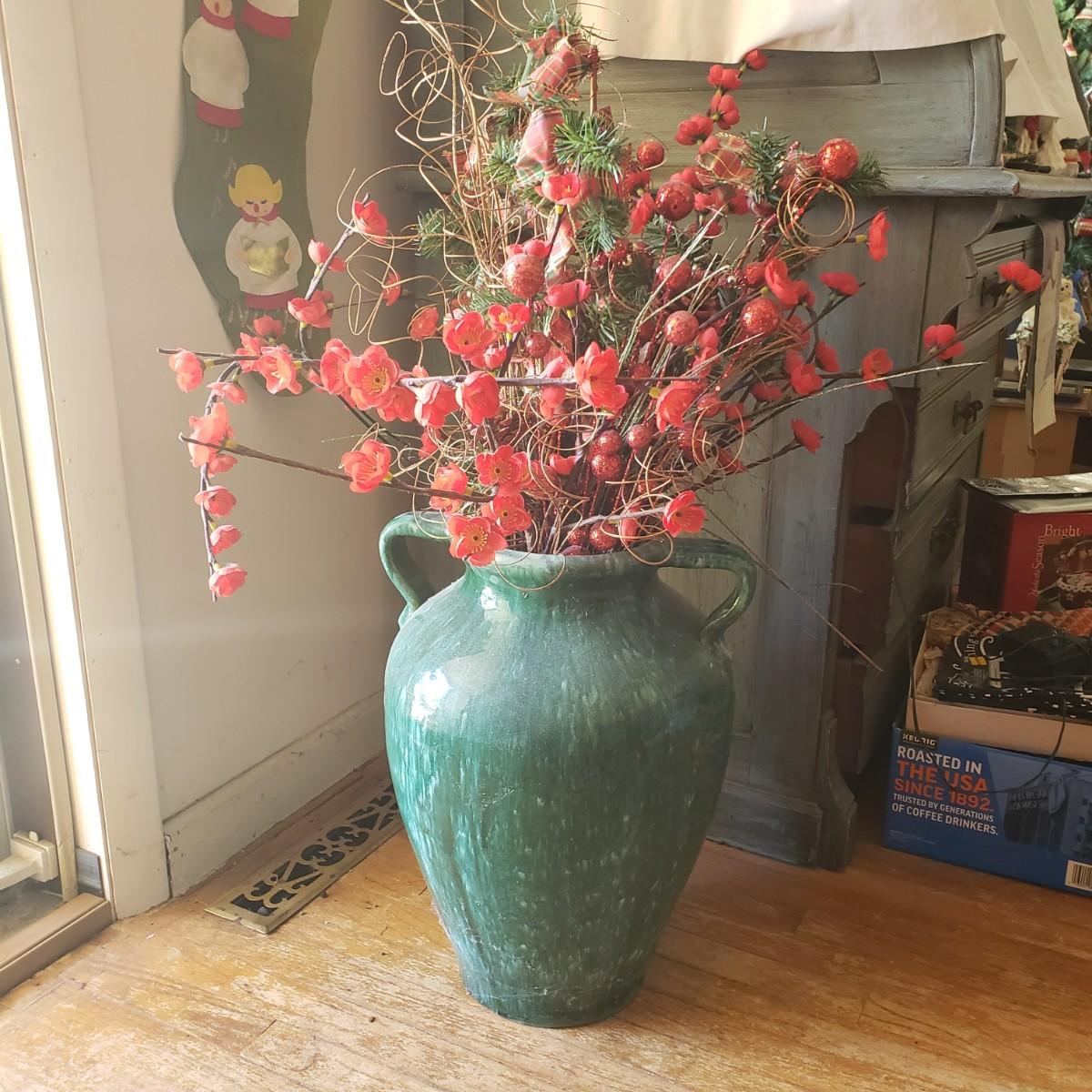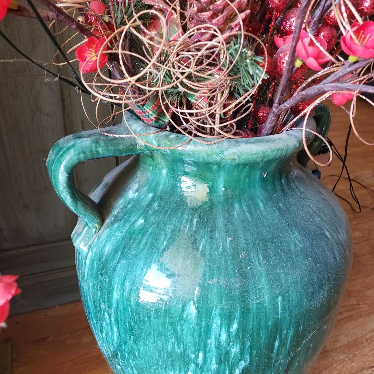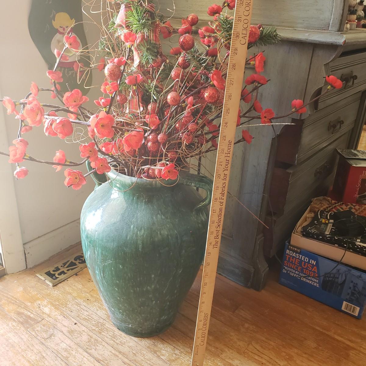 LOT 19L: Large Pottery Floor Vase with Faux Lighted Plants