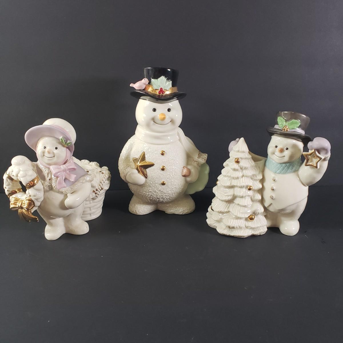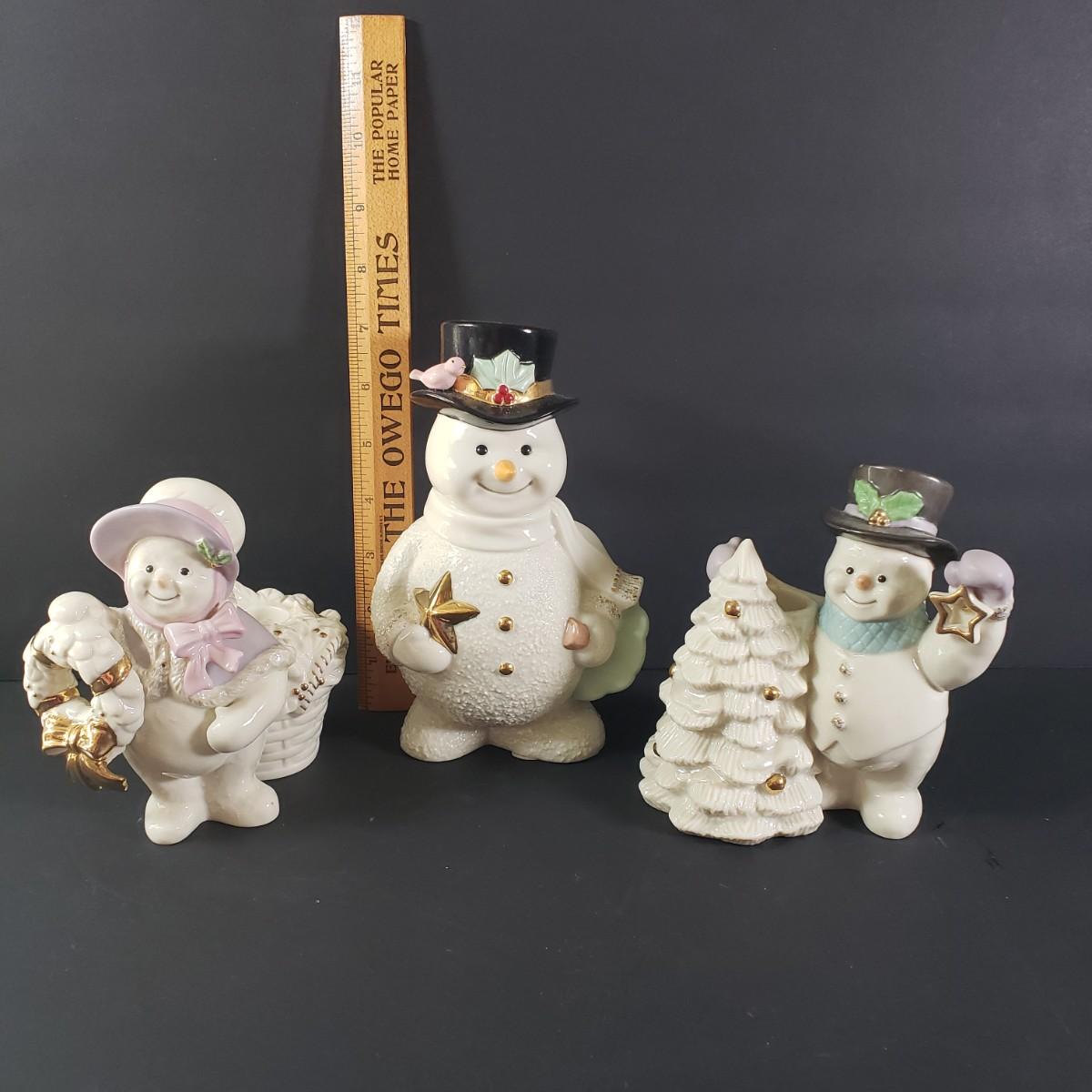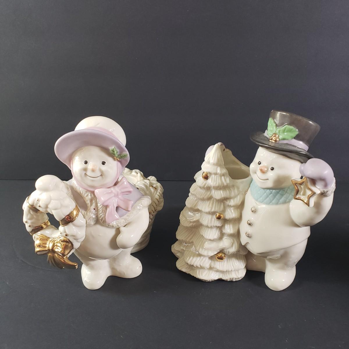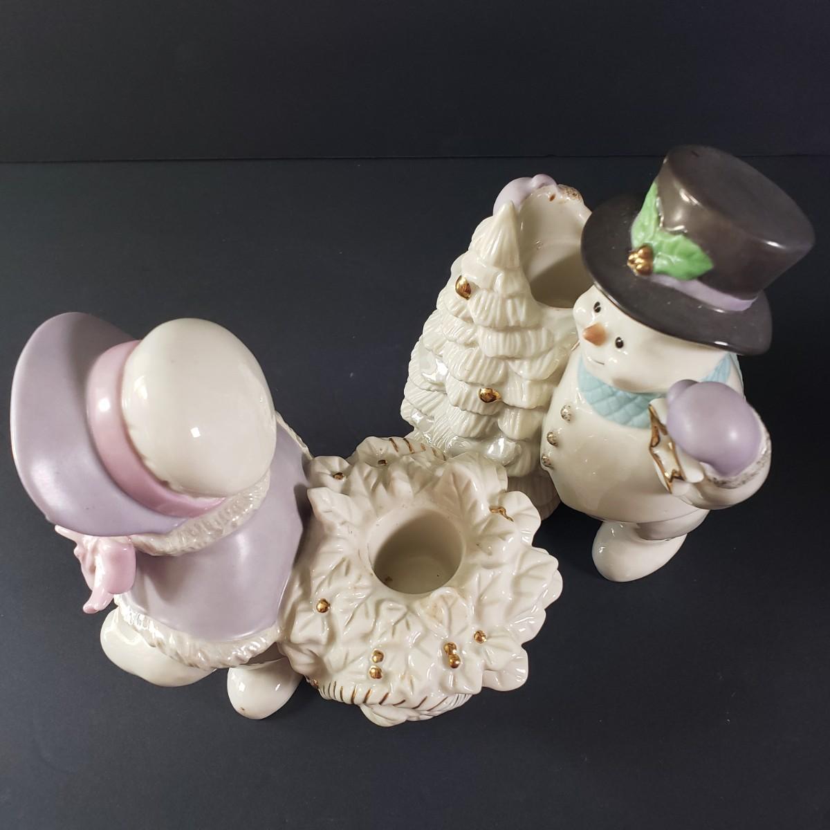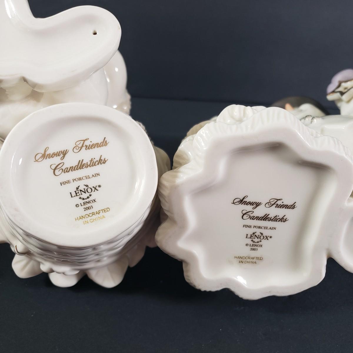 LOT 24G: Lenox Snowy Friends Candlesticks & Jolly Snow Friend Figurine