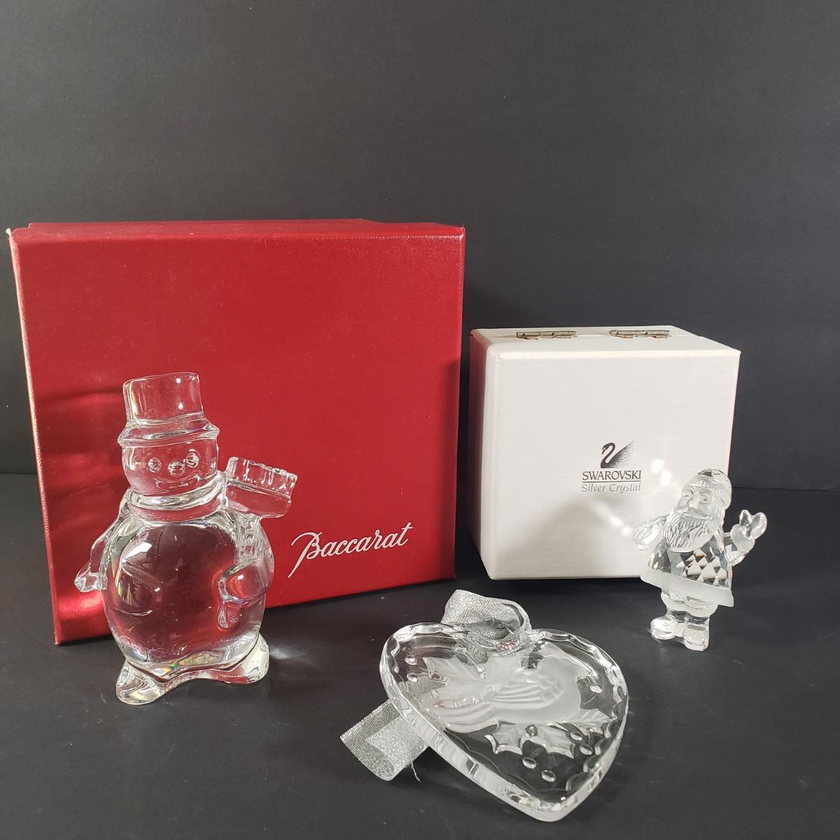 LOT 25G: Baccarat Snowman, Swarovski Santa & Mikasa Cardinal Ornament