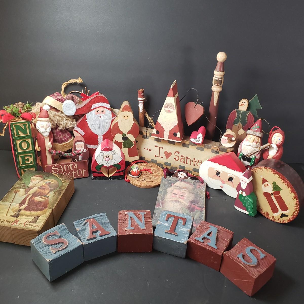 LOT 31F: Rustic Wooden Santa Collection