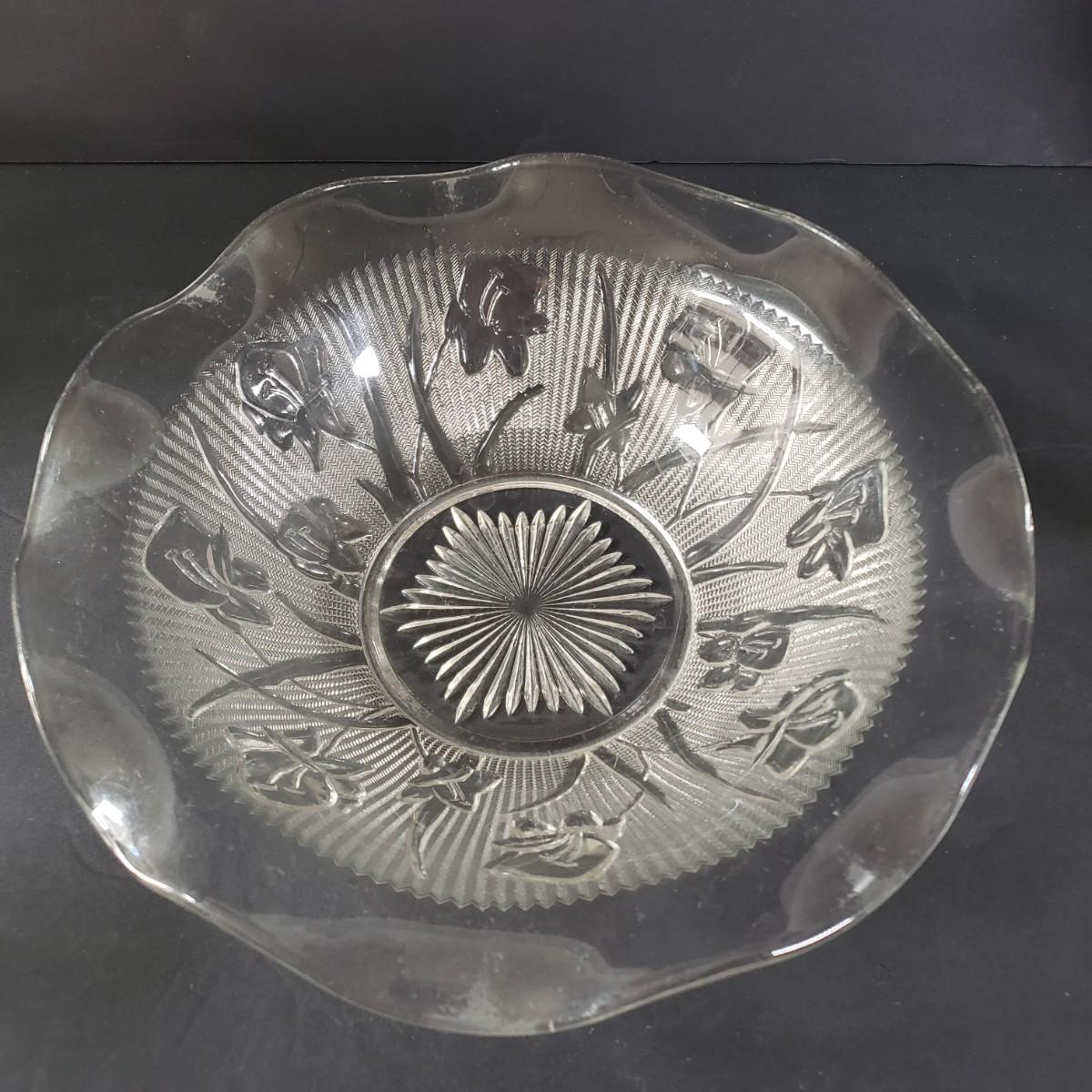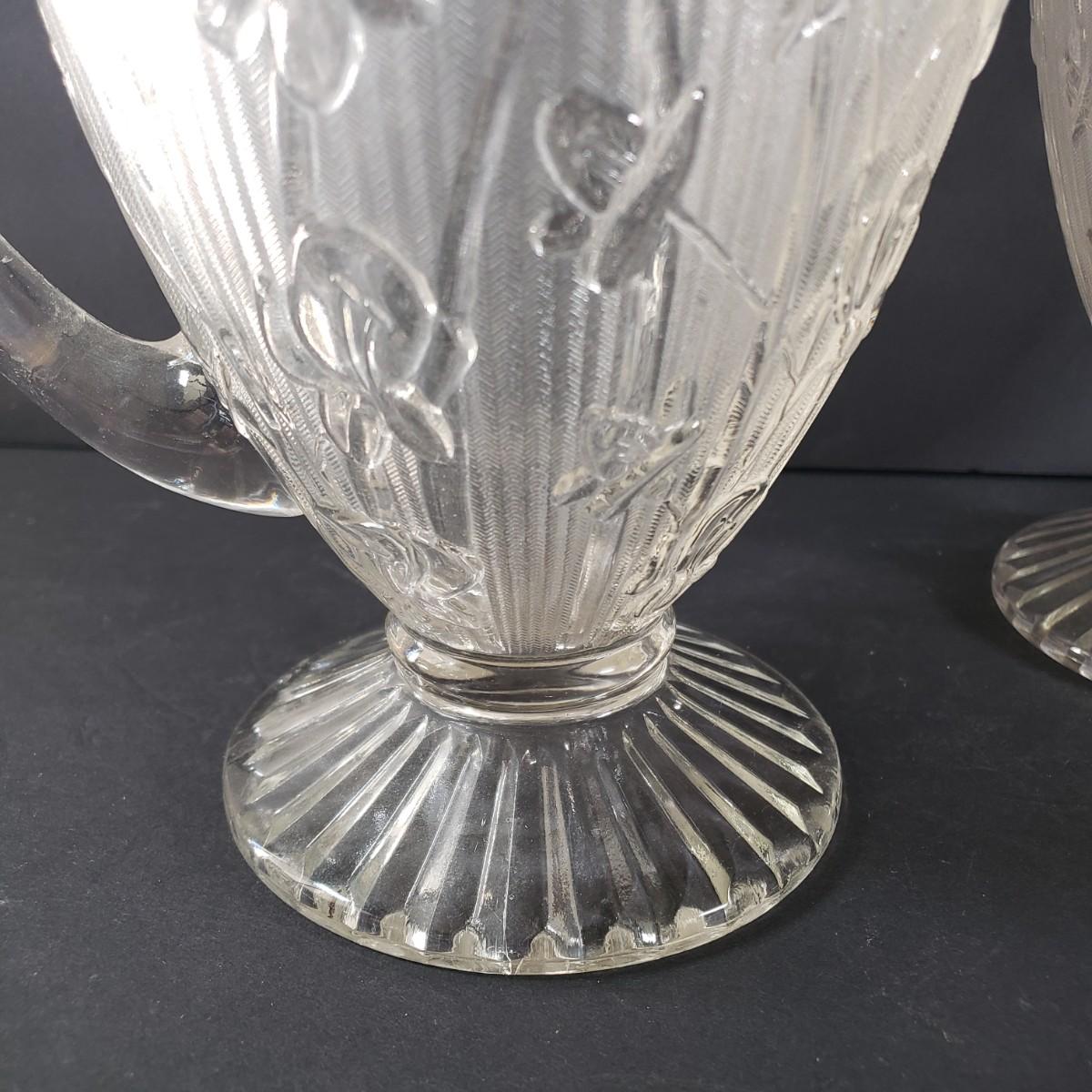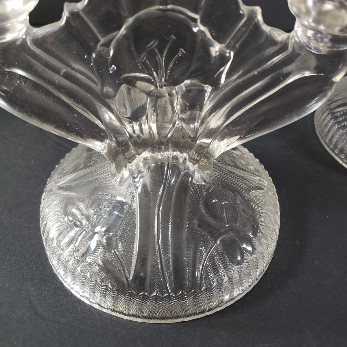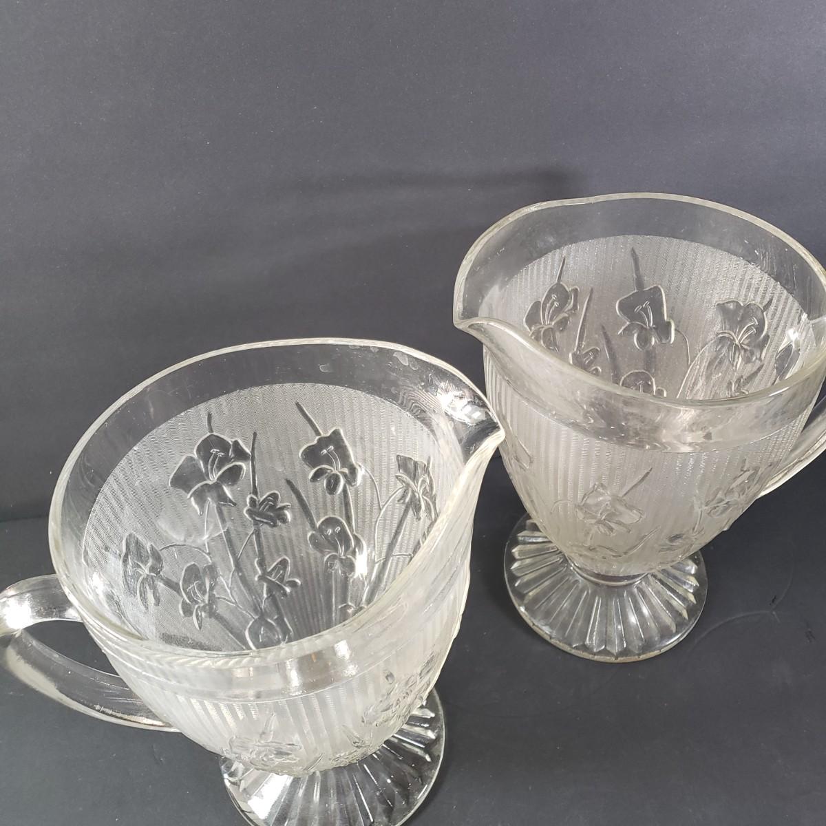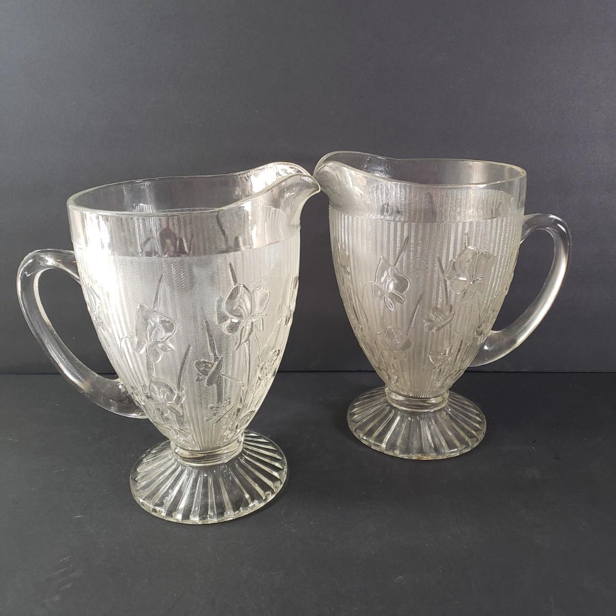 LOT 37G: Jeanette Glass Iris Herringbone Set of Candlesticks Holders, Pitchers & Bowl