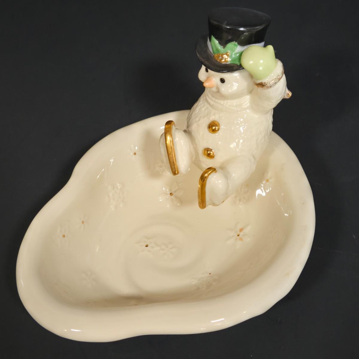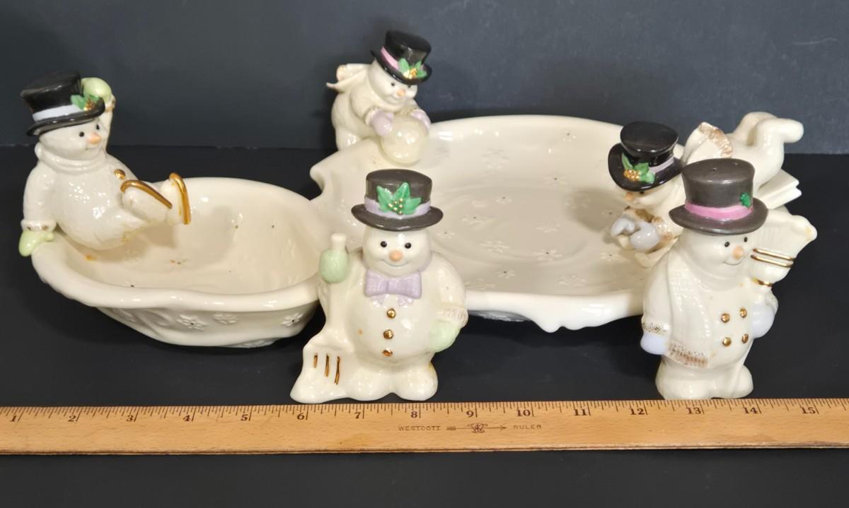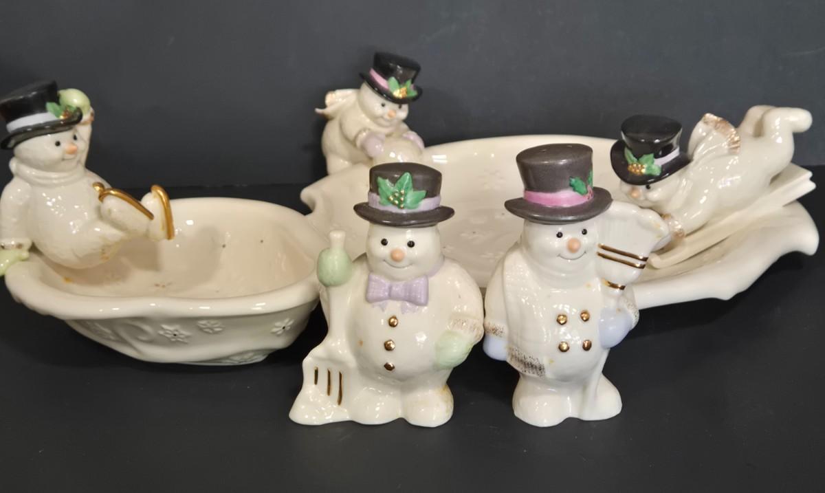 LOT 45: Lenox The Snowman Chip and Dip Serving Set and Salt & Pepper Shakers