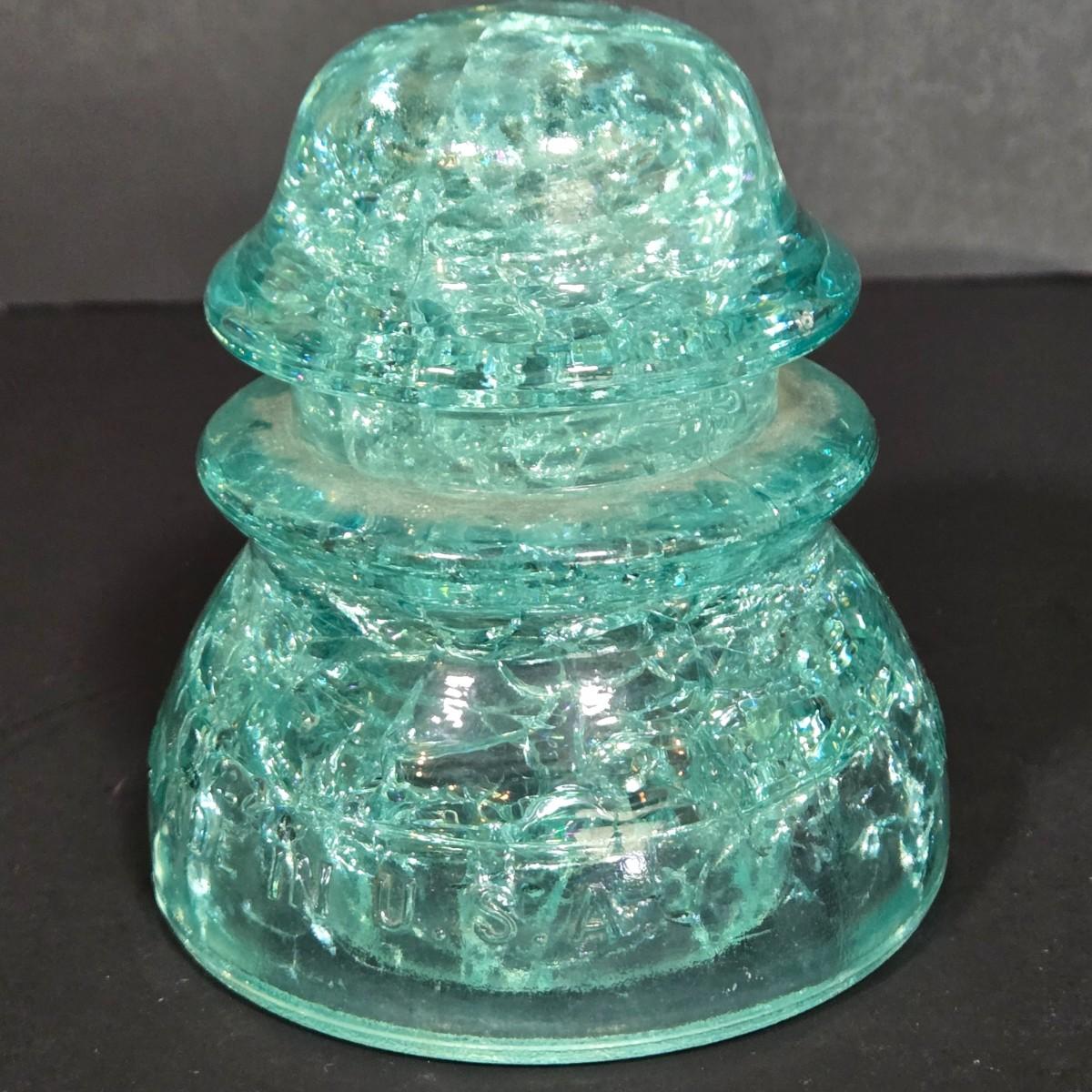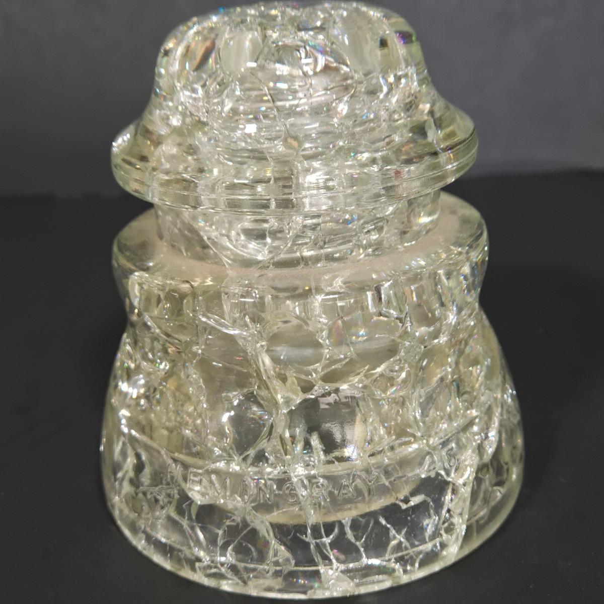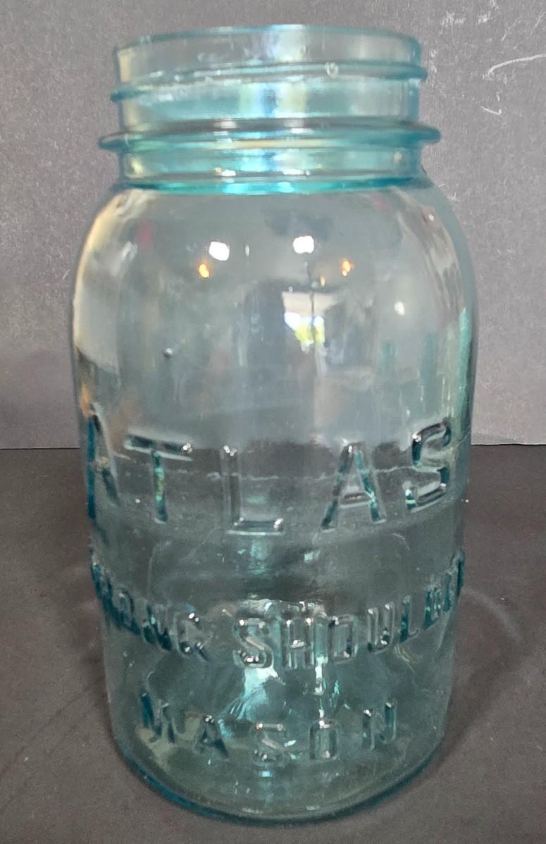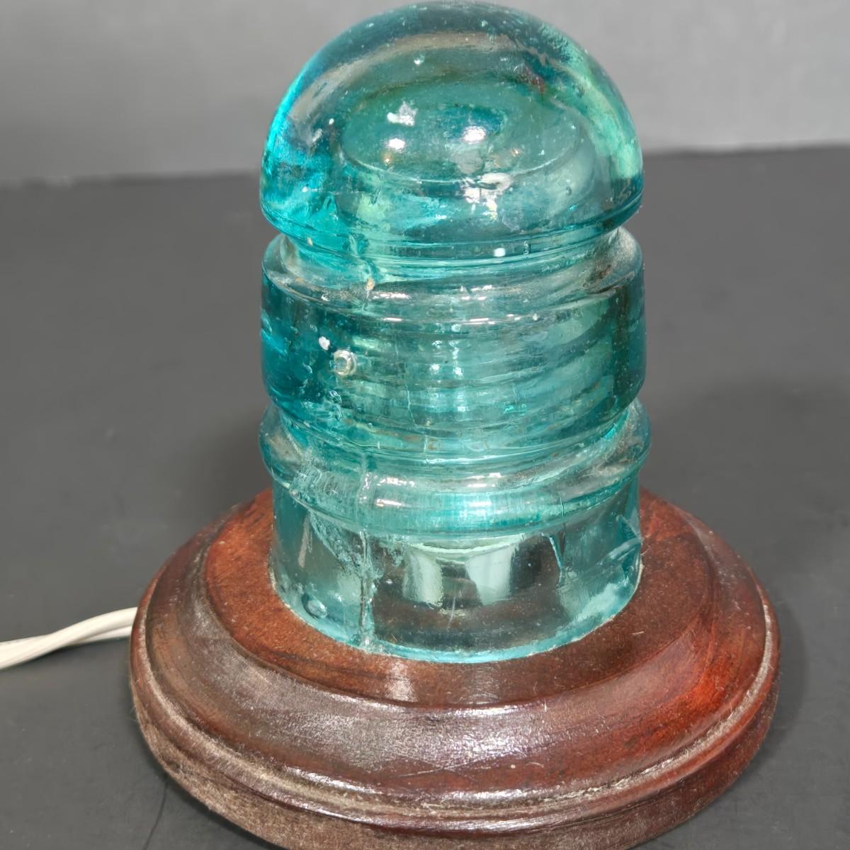 LOT 46: Three Crackled Glass Insulators, Hand-Made Night Light, and Atlas Strong Shoulder Mason Jar