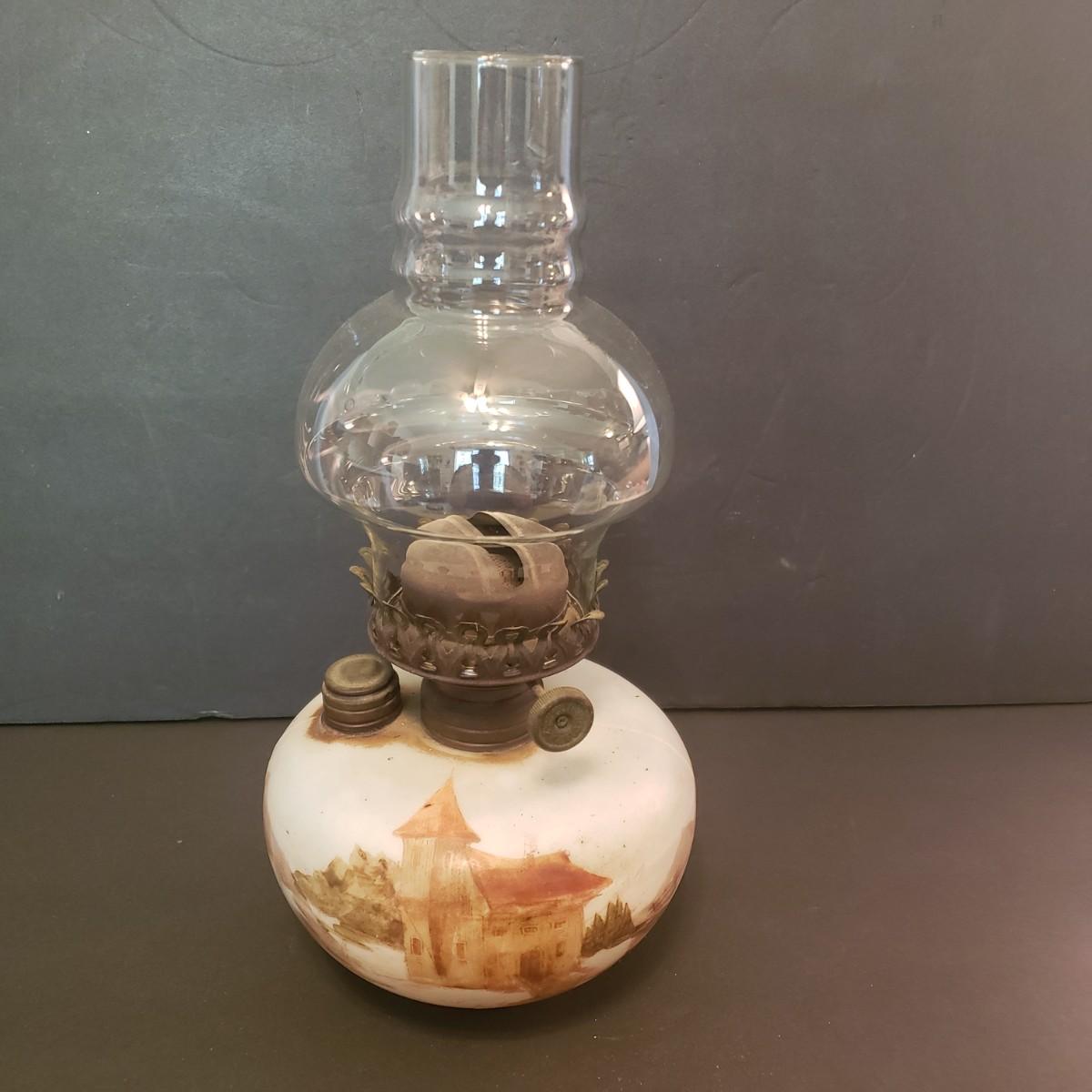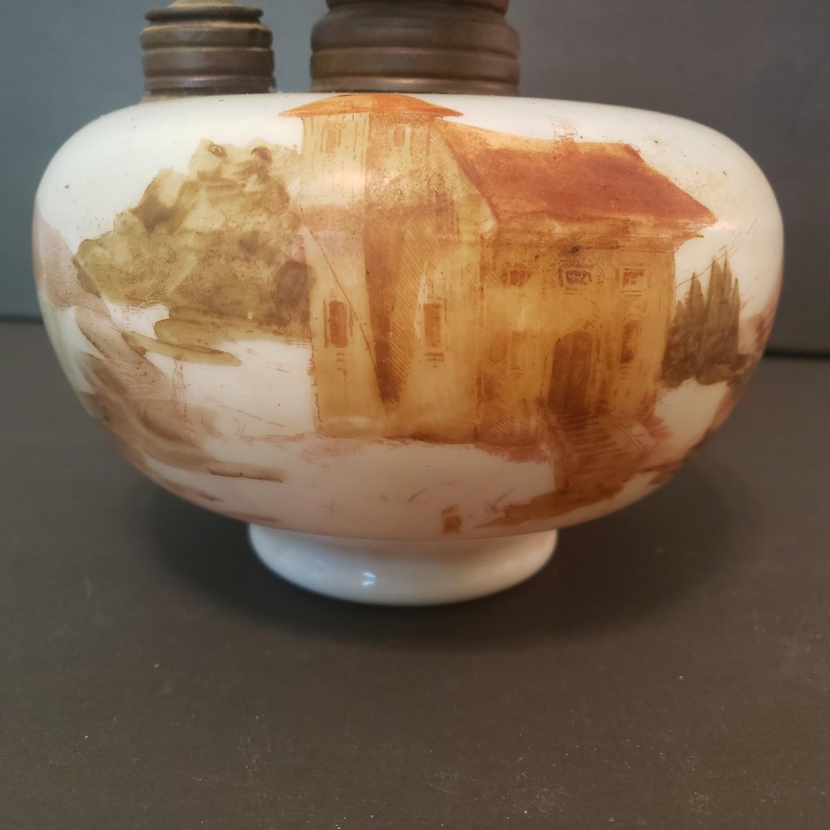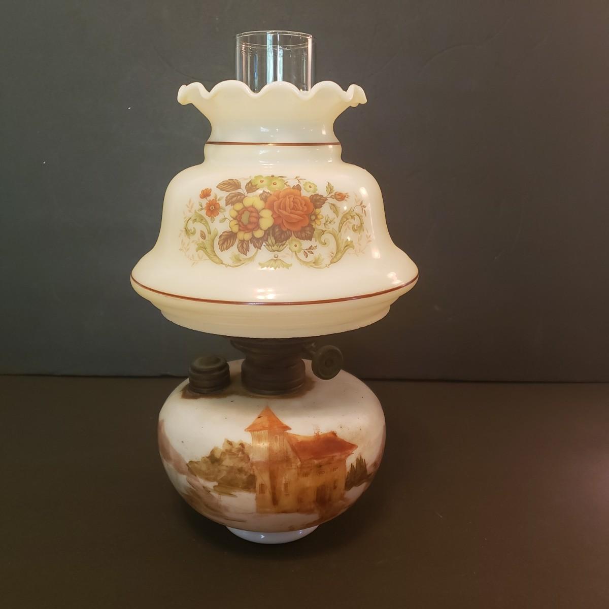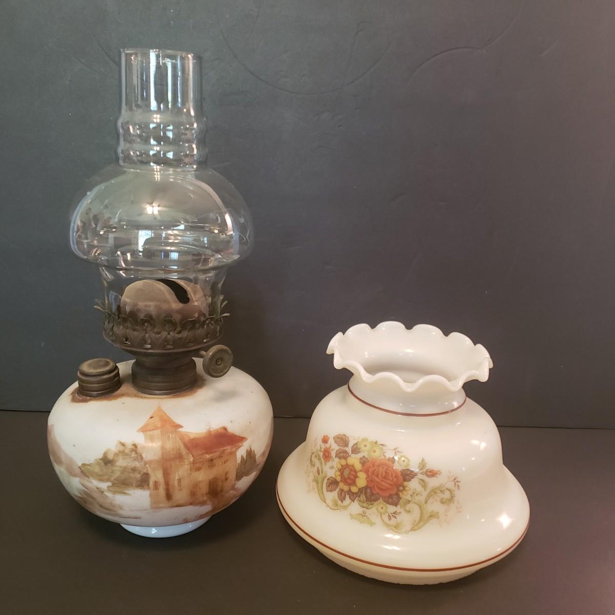 LOT 73F: Vintage Hand Painted Custard Glass Oil Lamp with Extra Shade