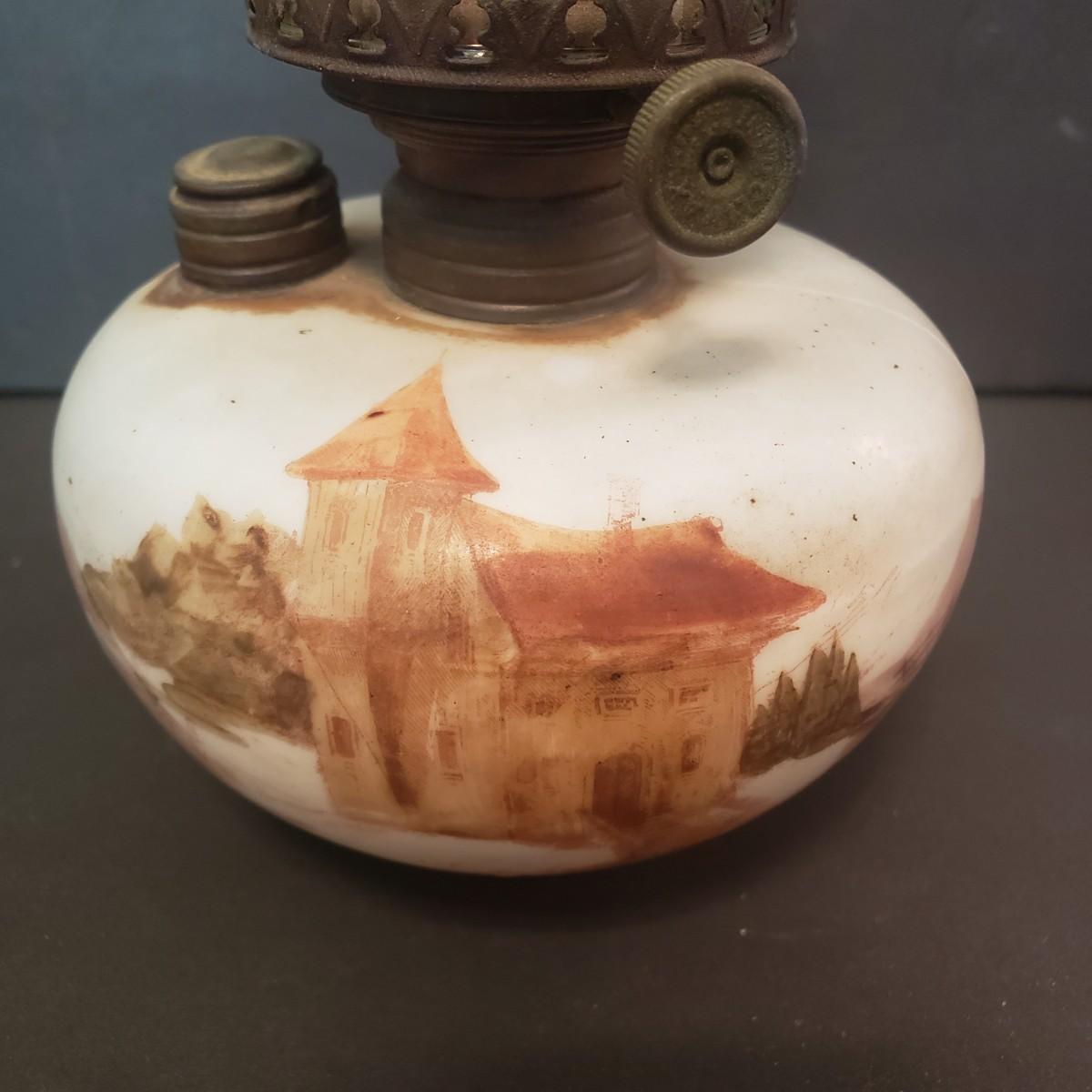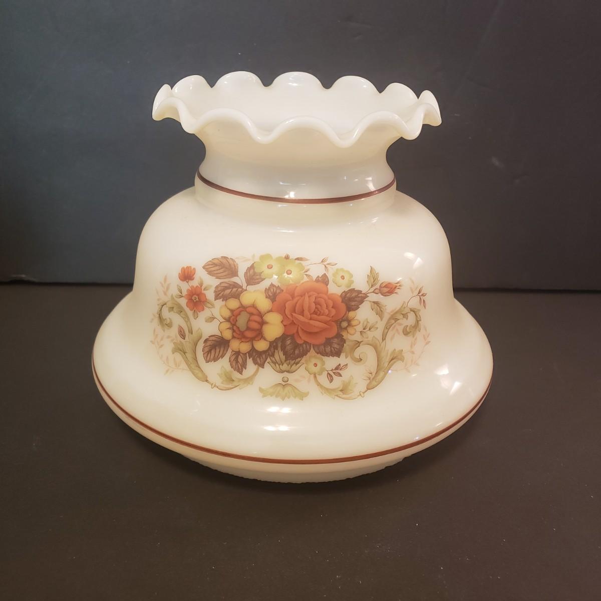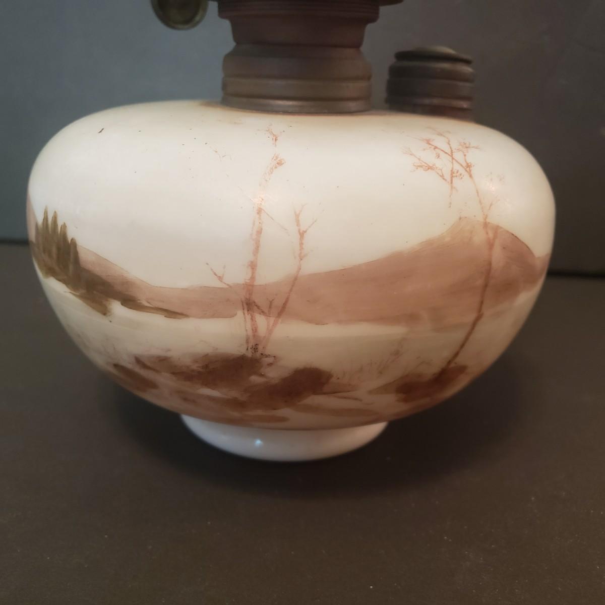 LOT 73F: Vintage Hand Painted Custard Glass Oil Lamp with Extra Shade