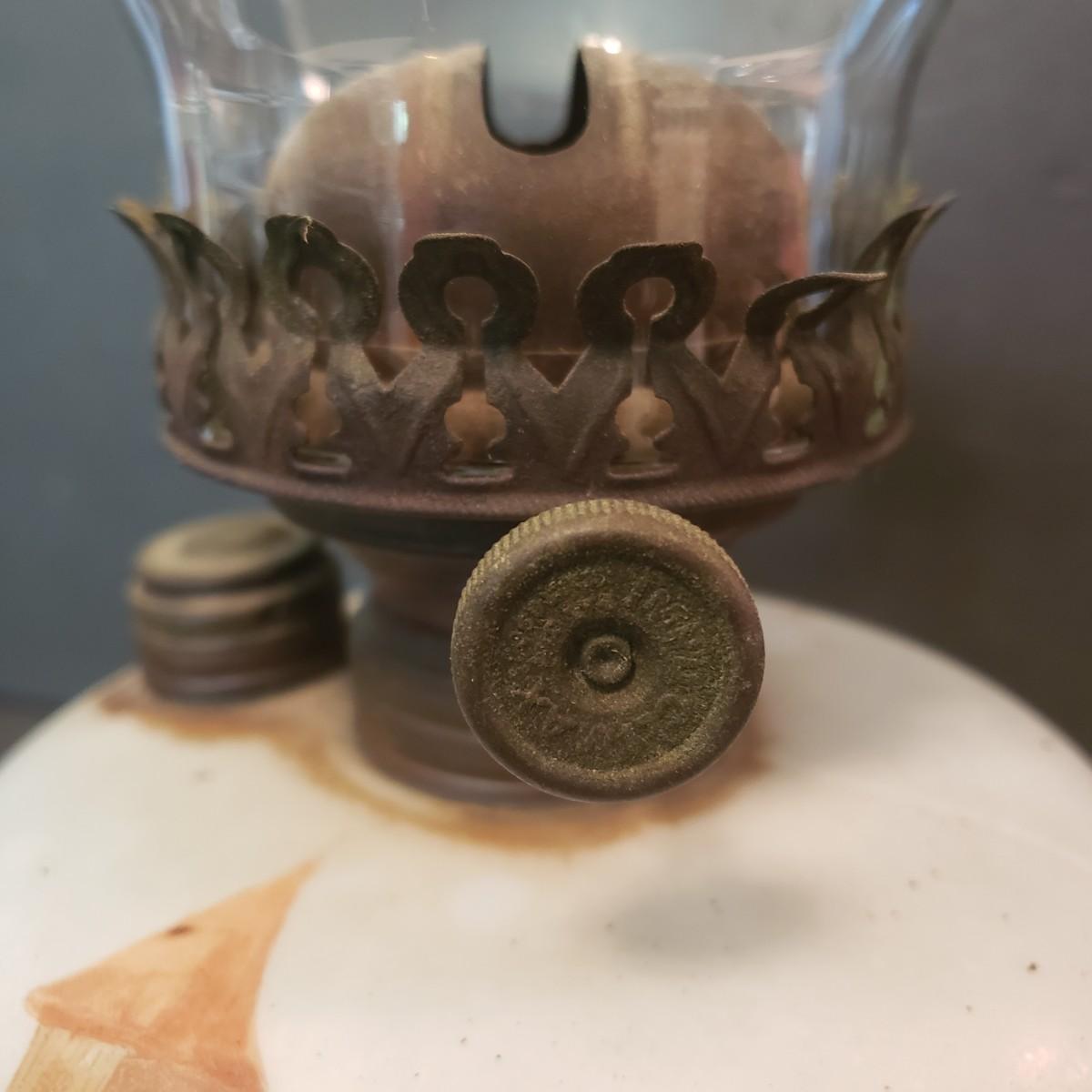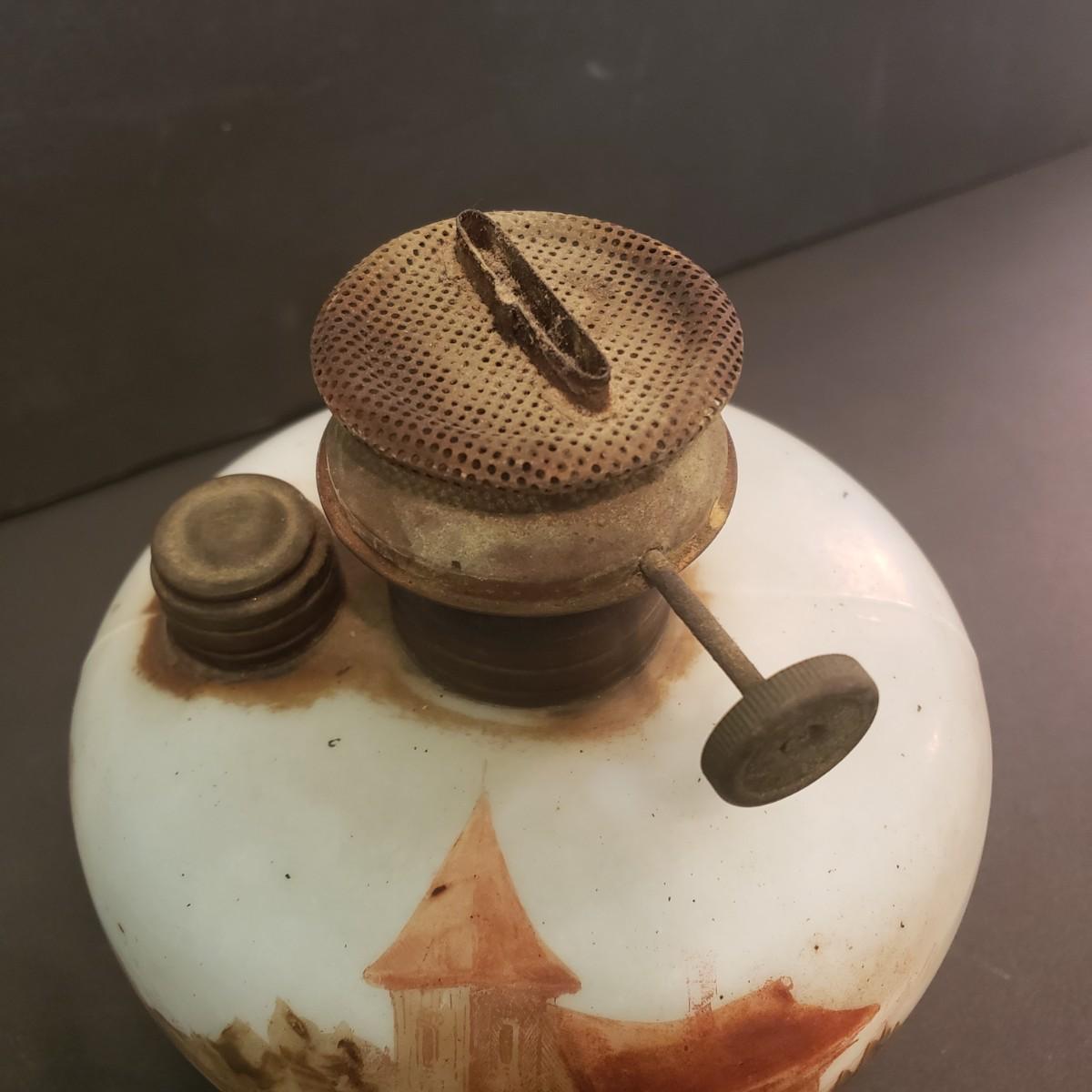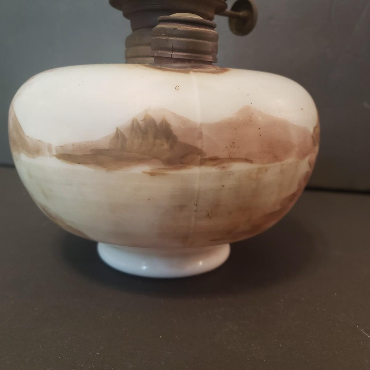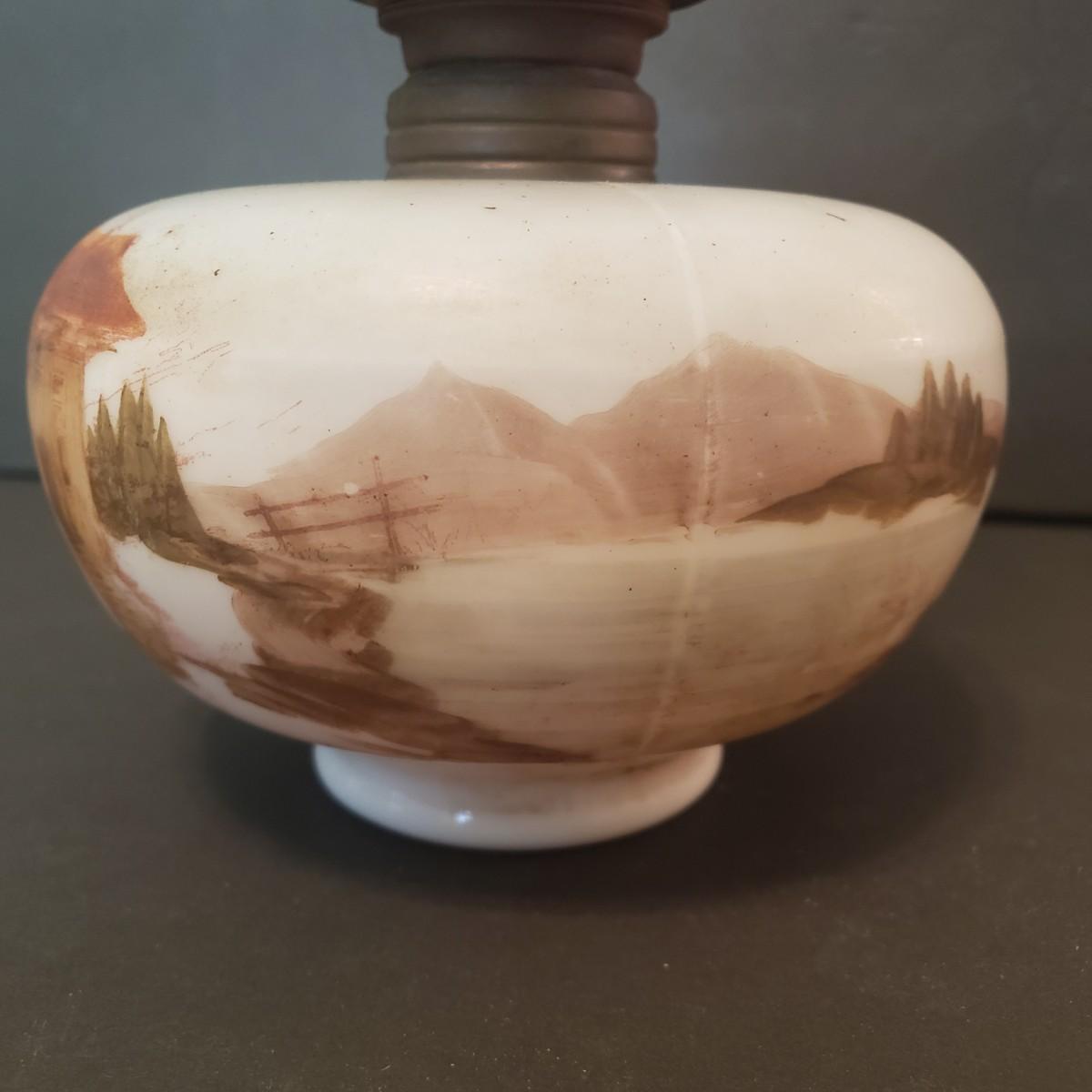 LOT 73F: Vintage Hand Painted Custard Glass Oil Lamp with Extra Shade