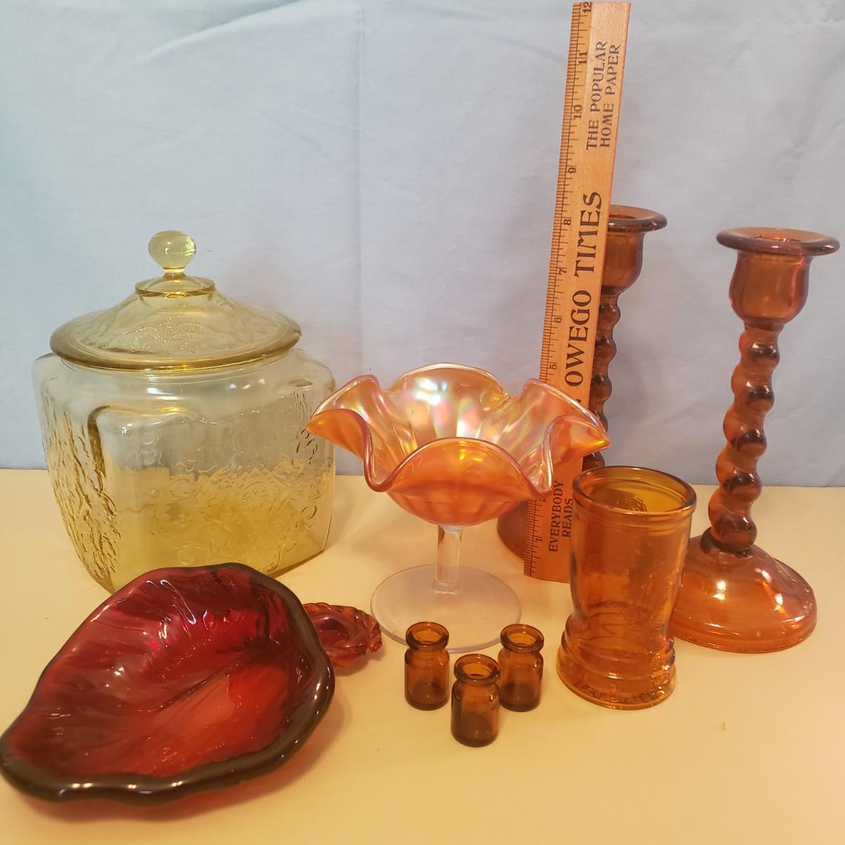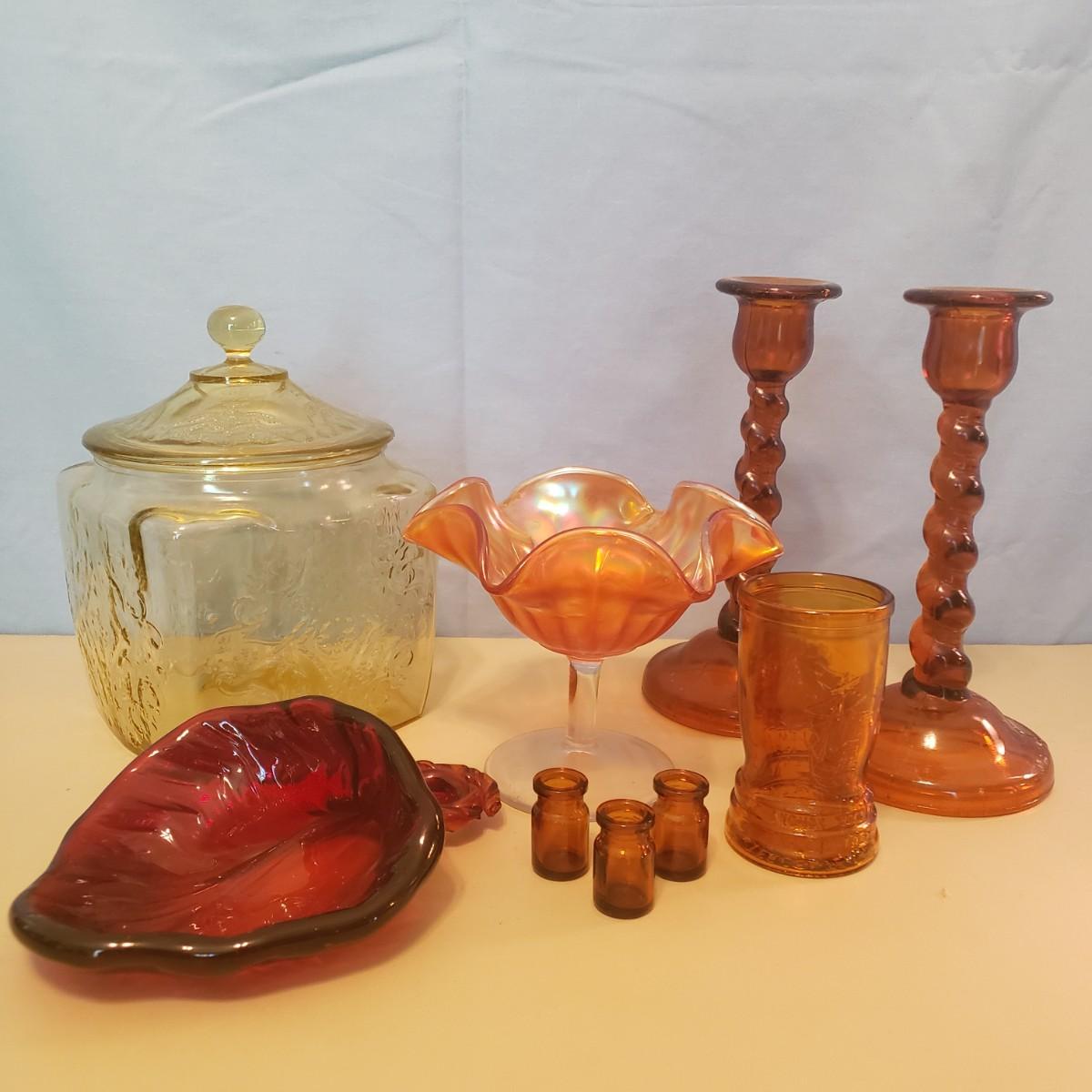 LOT 74F: Vintage Glass Collection; Biscuit Jar, Art Glass, Marigold Carnival & More