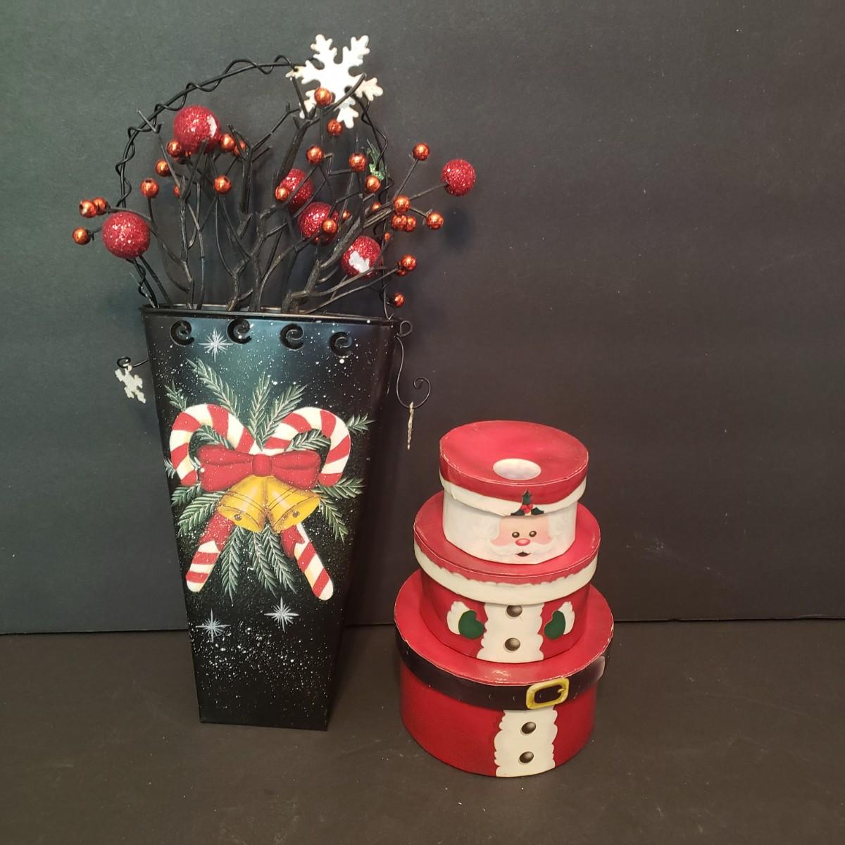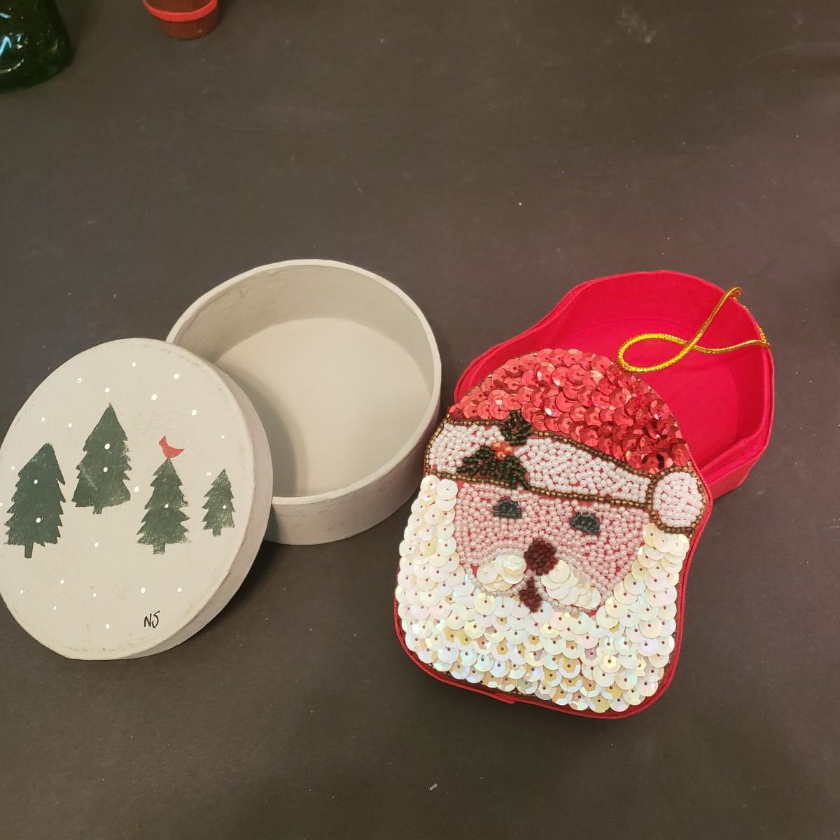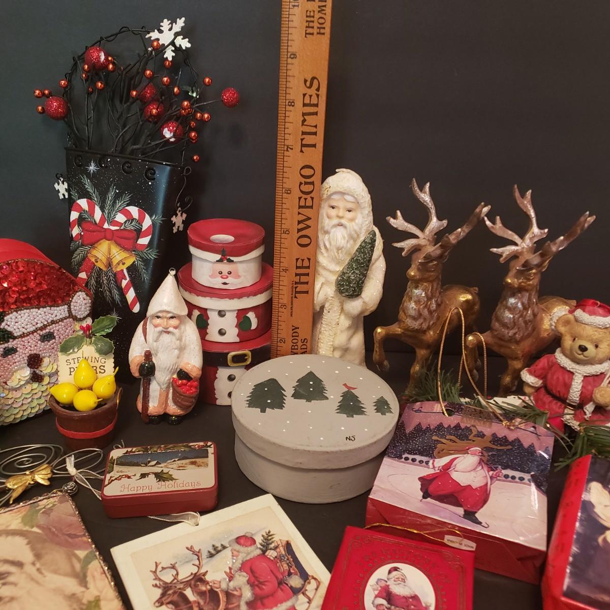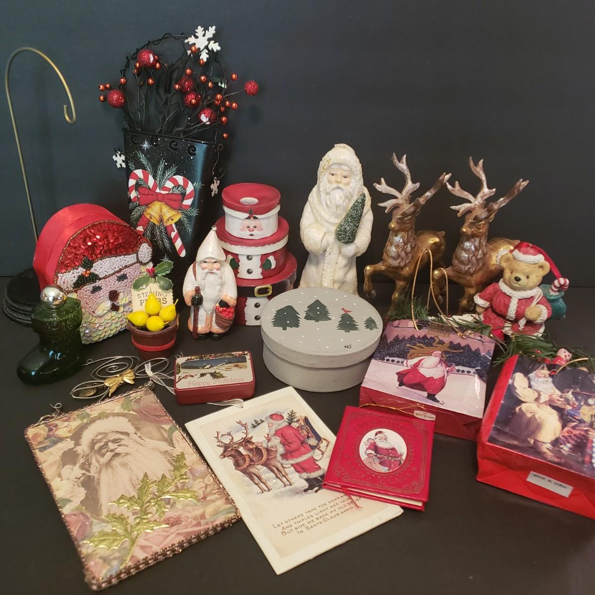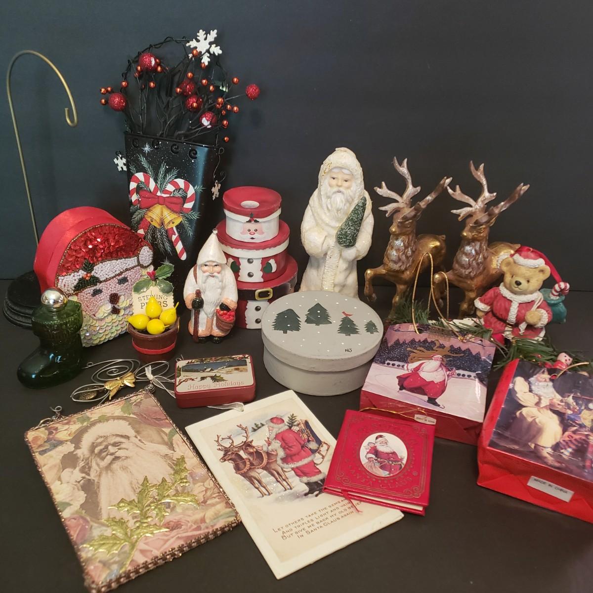 LOT 78F: Assorted Christmas Decor; Belsnickle Santas, Trinket Boxes & More