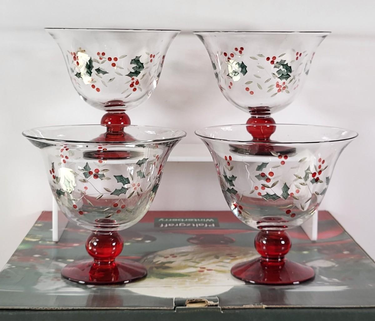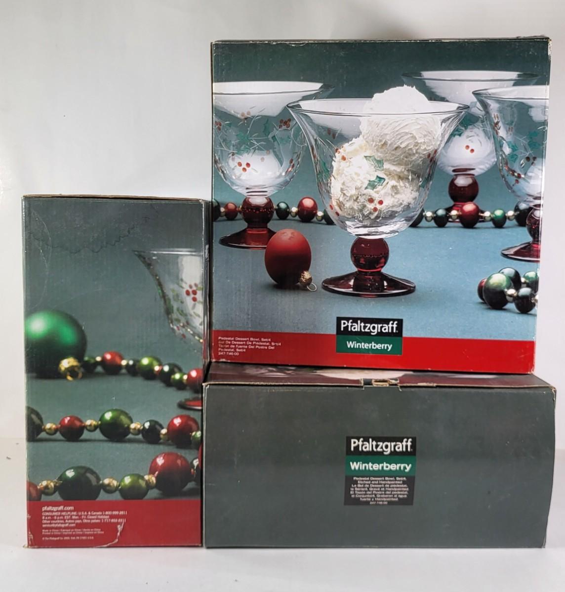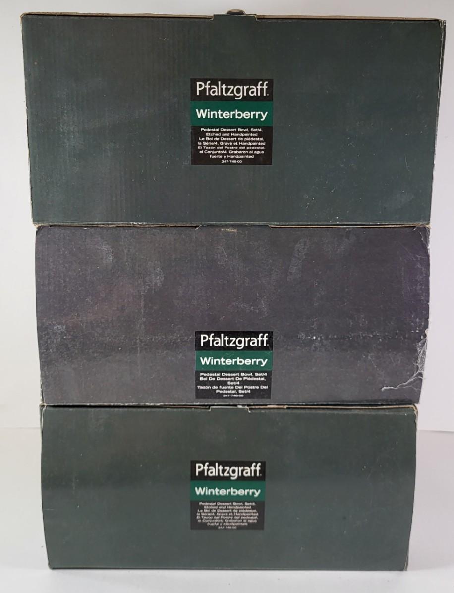 LOT 90G: Three Boxes of Pfaltzgraf Hand Painted Winterberry Glass Dessert Dishes