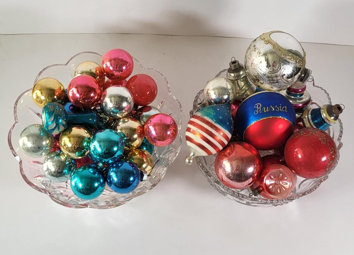 LOT 95D: Pair of Bowls Filled with Assorted Vintage Holiday Ornaments