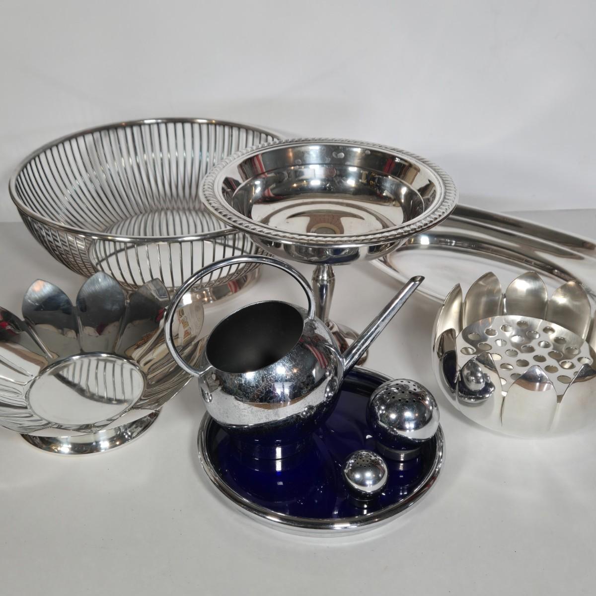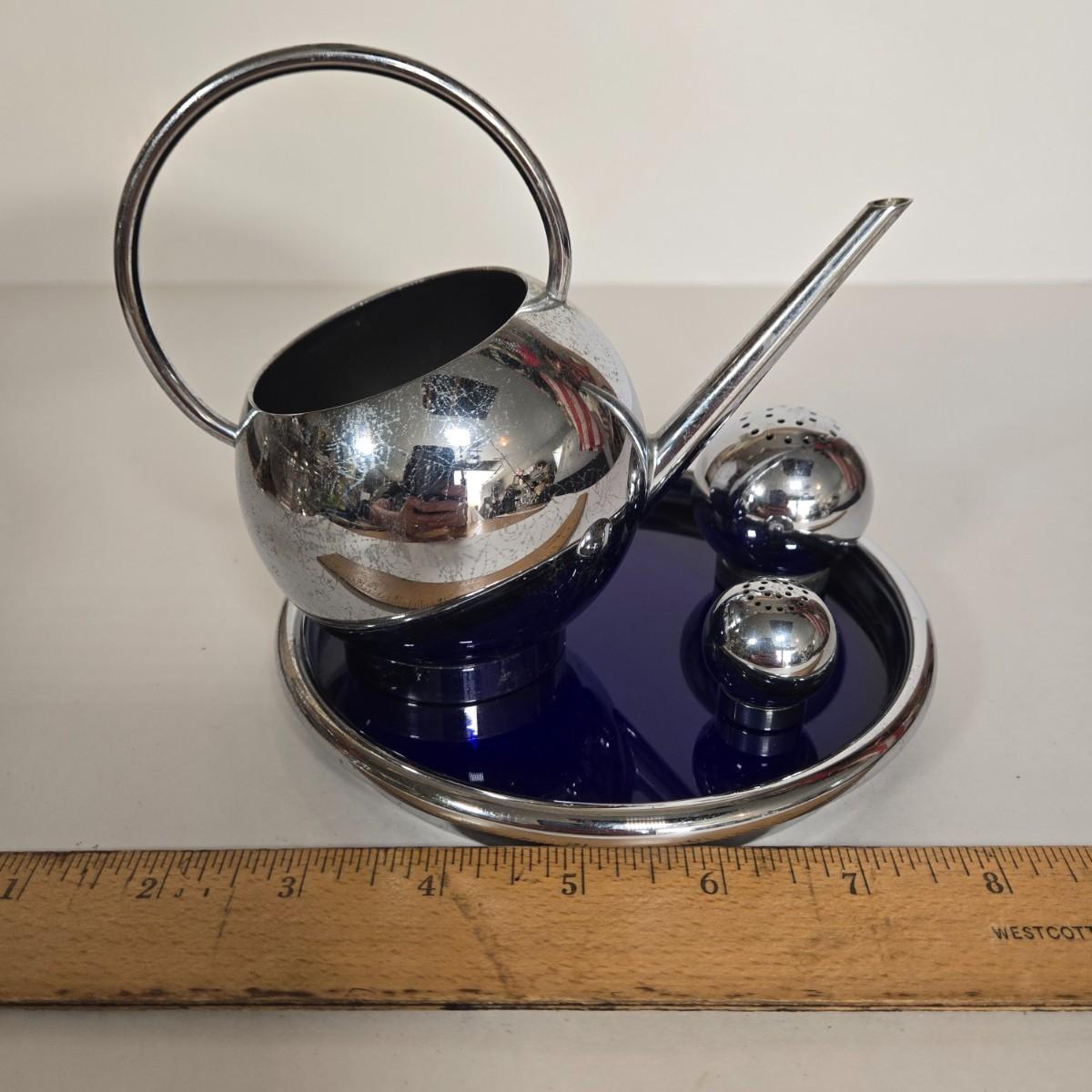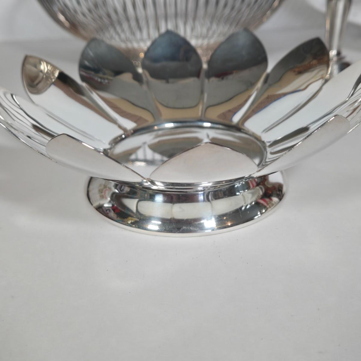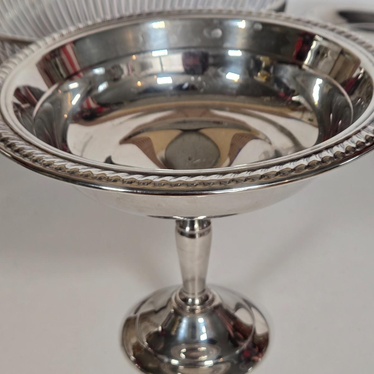 LOT 113: Art Deco Russel Wright Pancake and Corn Table Set, Silver Plate Flower Frog, Pedestal Candy Bowl, and More