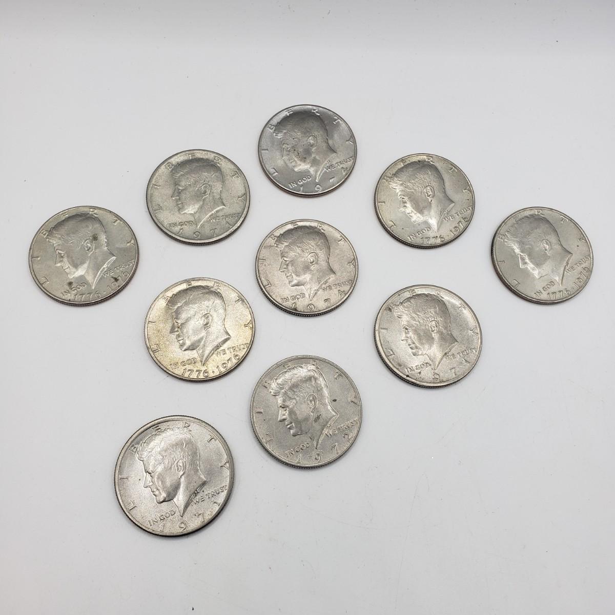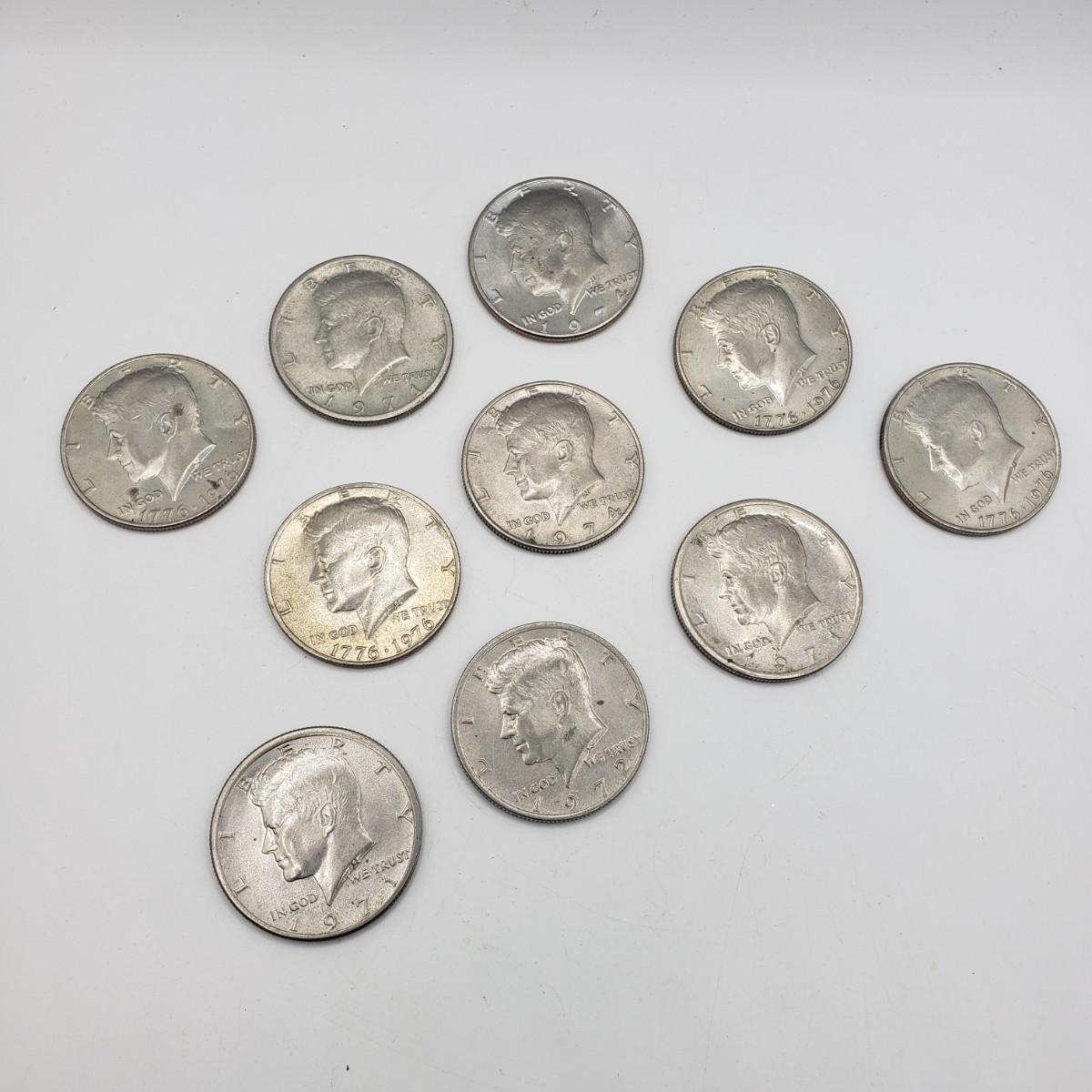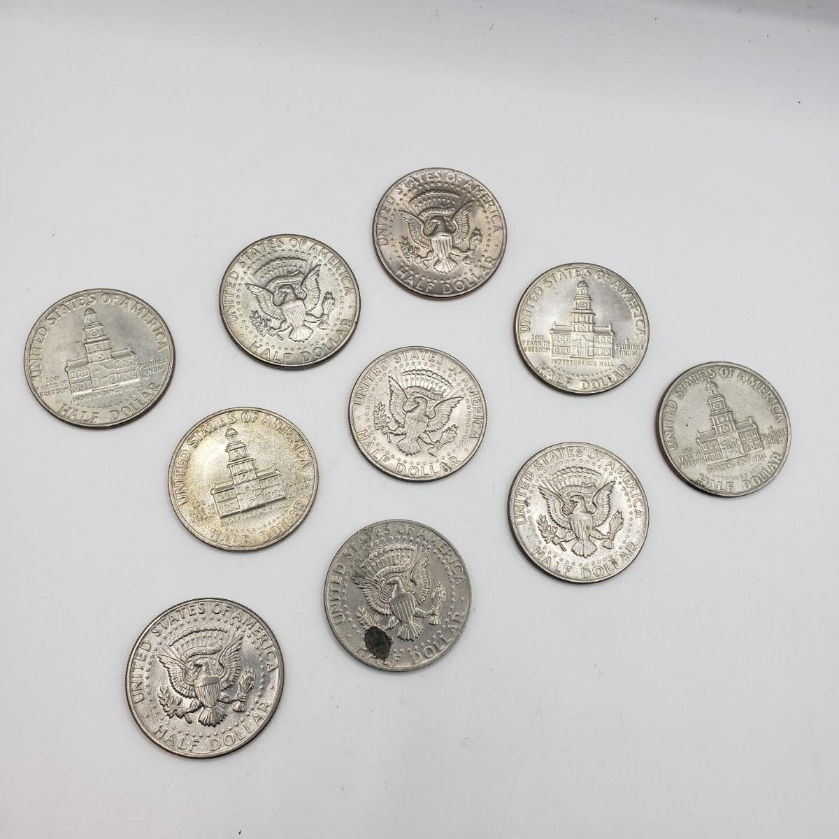 LOT 127F: 10 Kennedy Half Dollars incl. Bicentennial