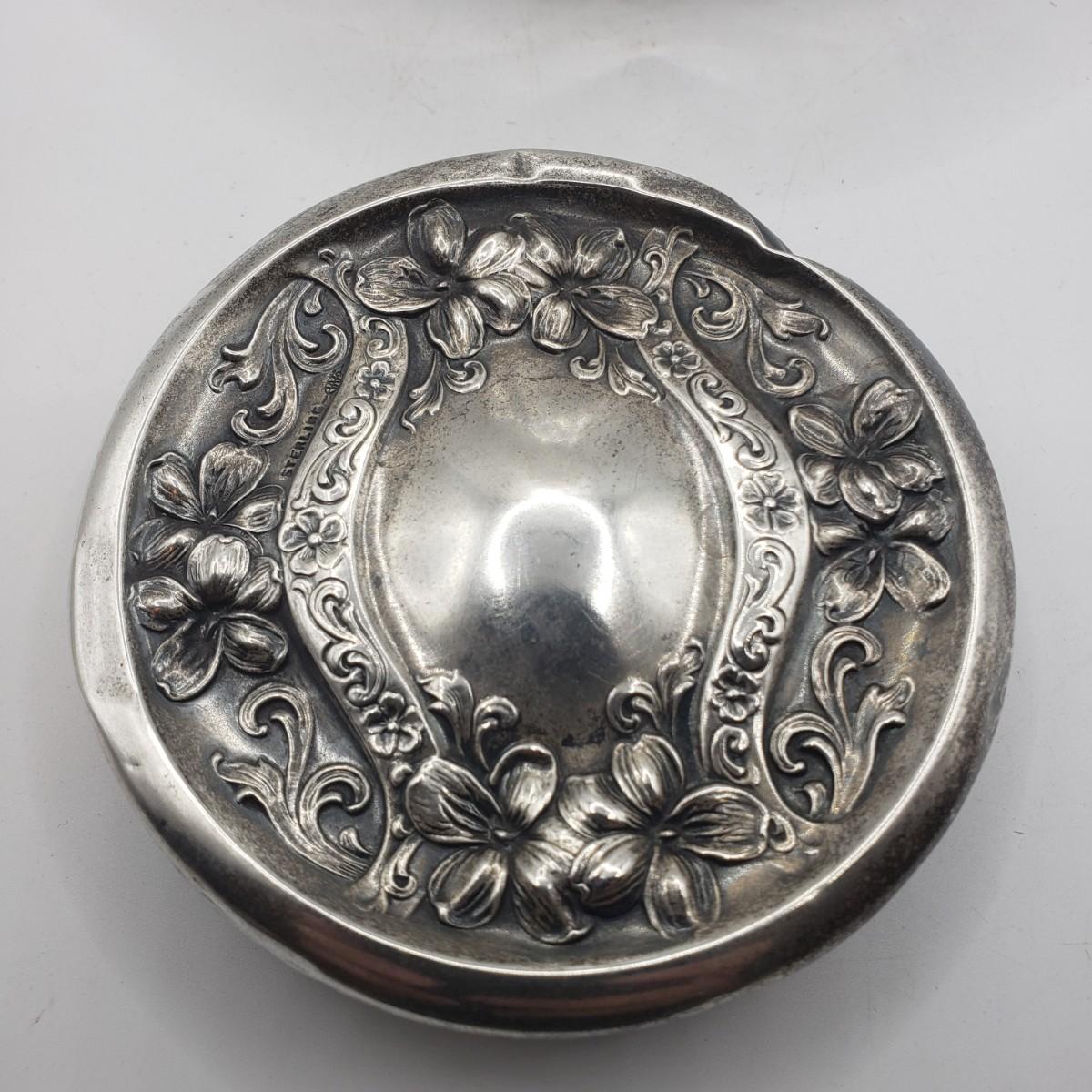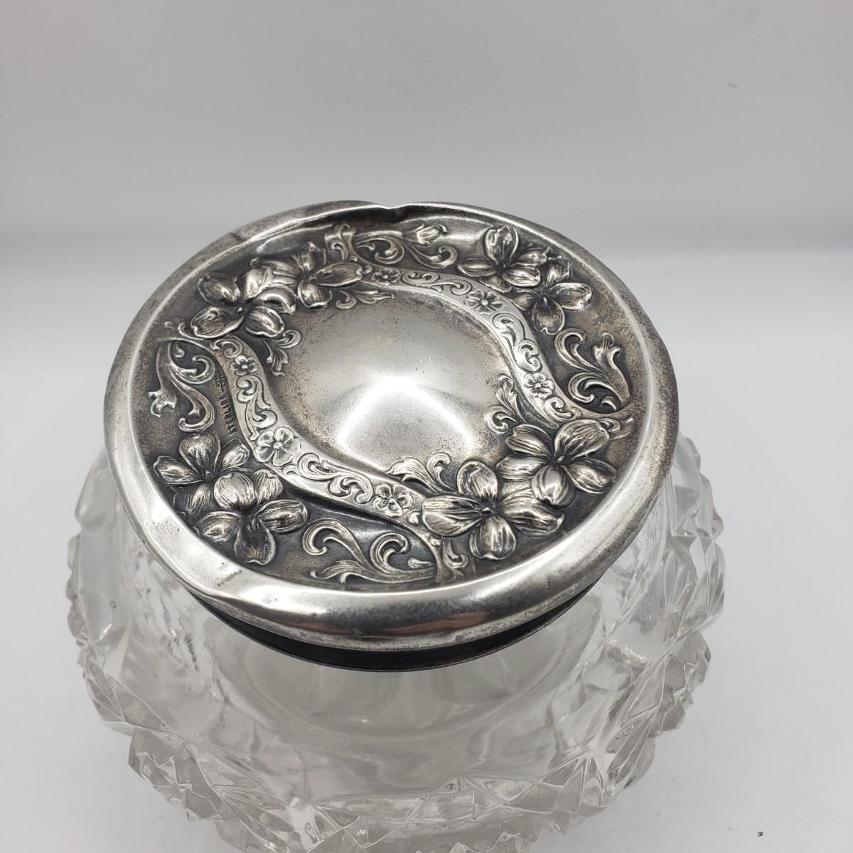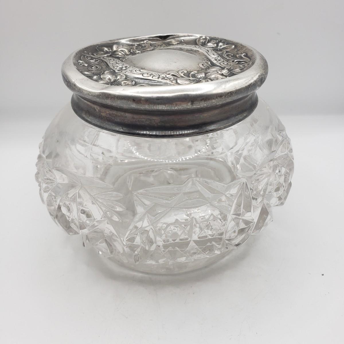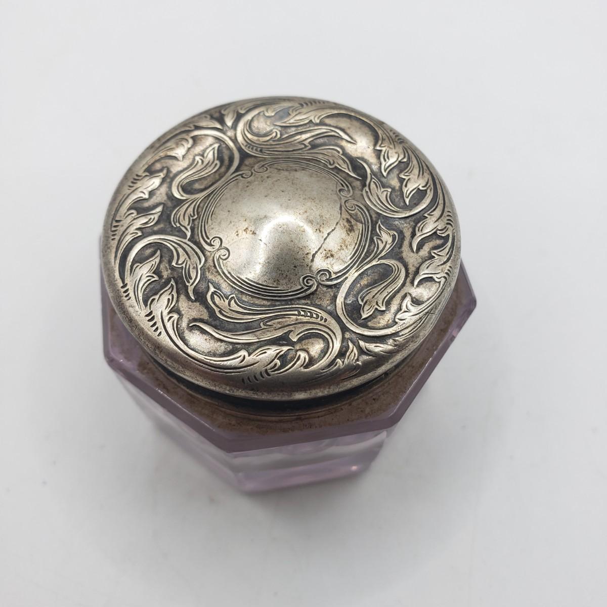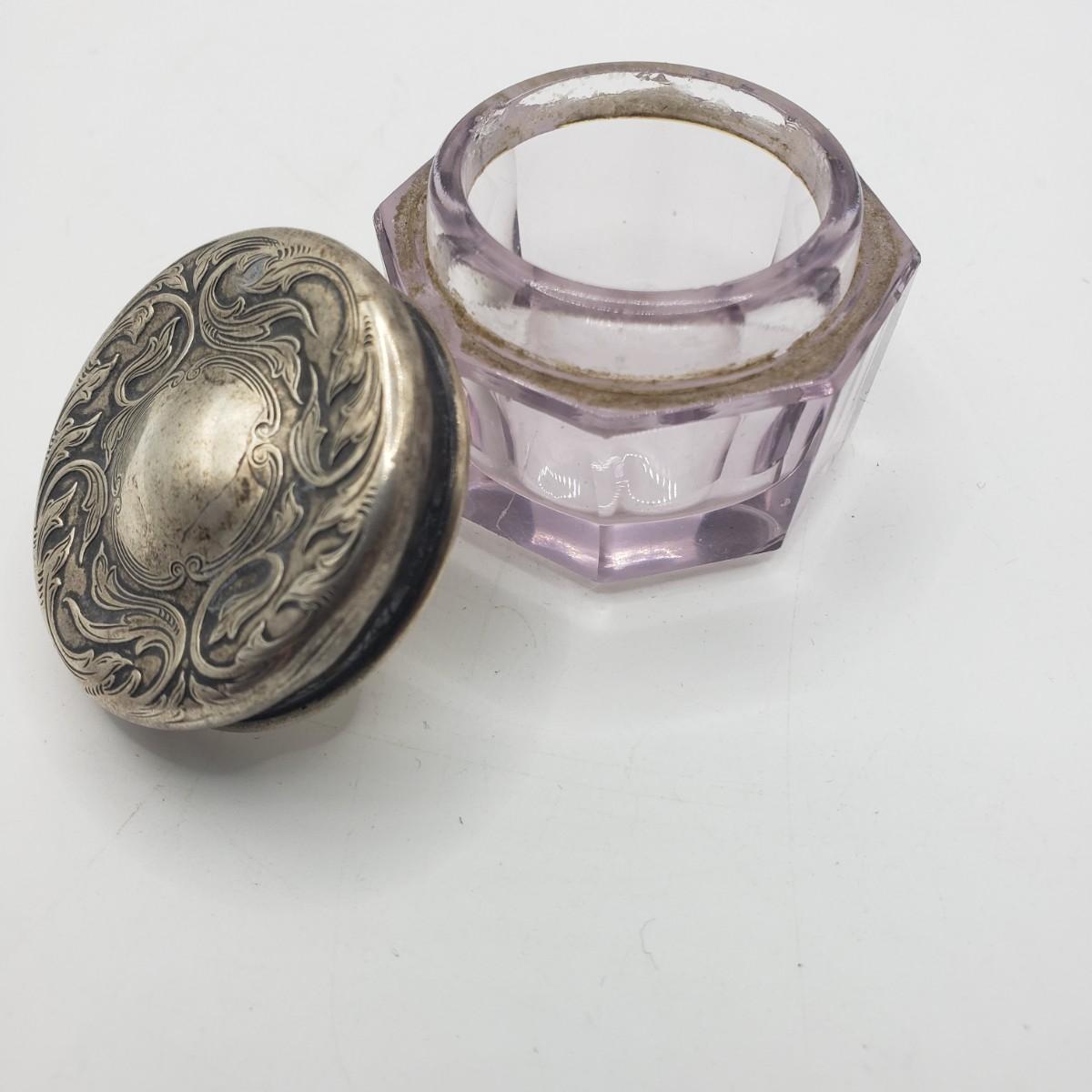 LOT 140F: Glass Powder Jar & Inkwell with Sterling Lids 26.74gtw