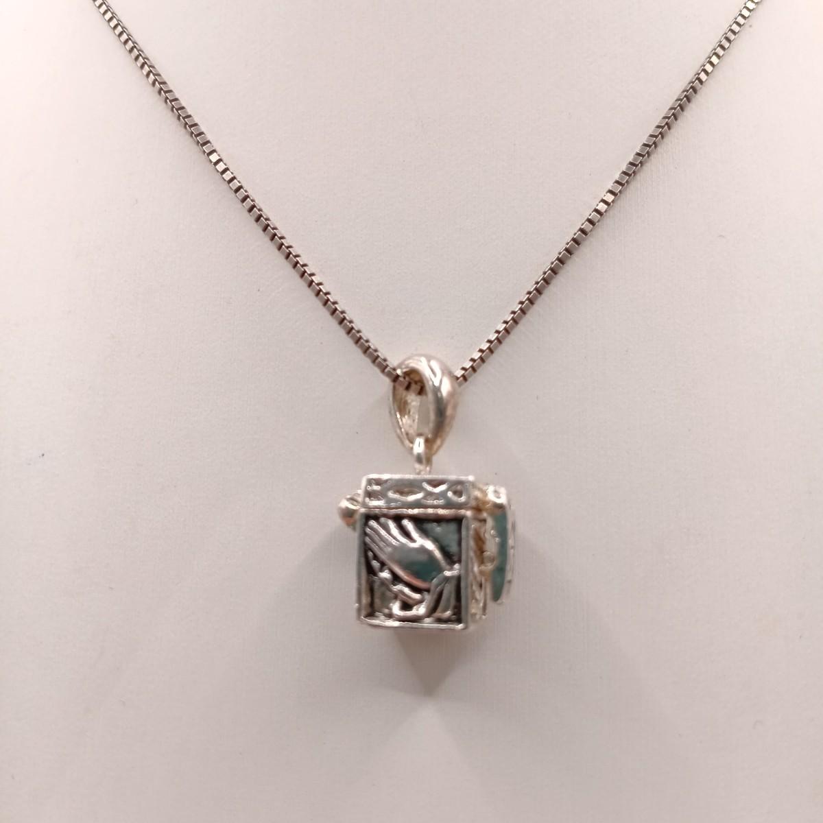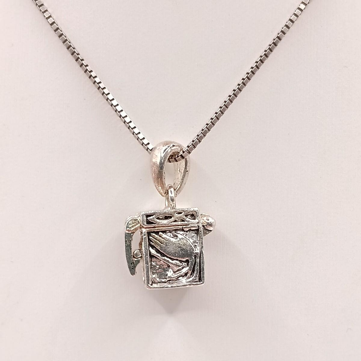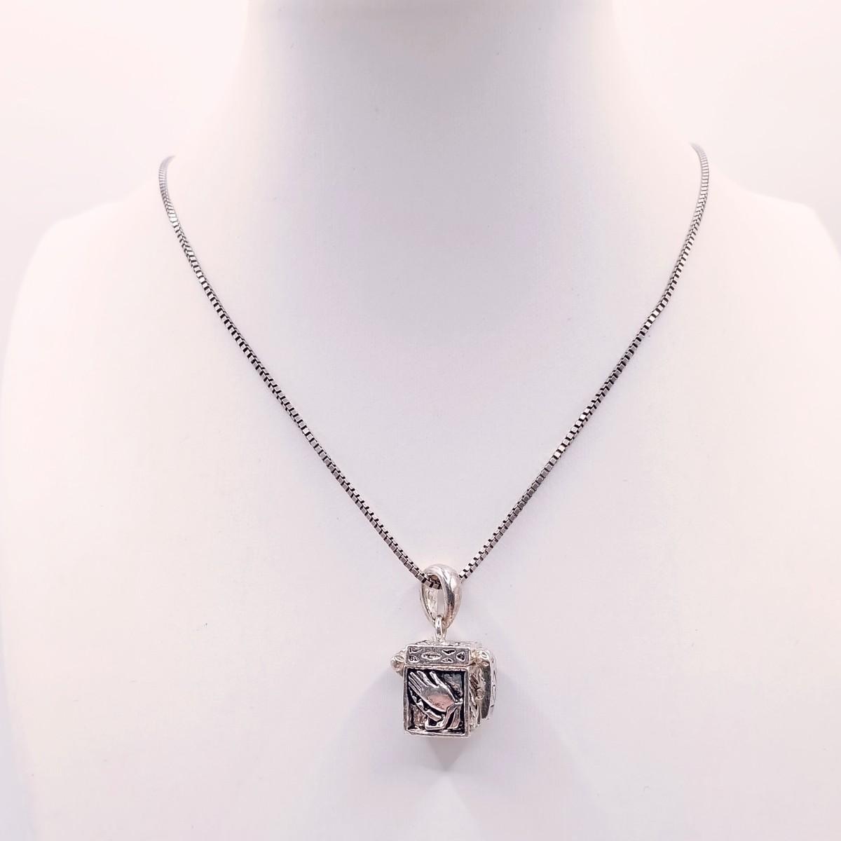 LOT 5: Sterling Silver Box Chain Necklace with Silver-Tone Prayer Box Pendant