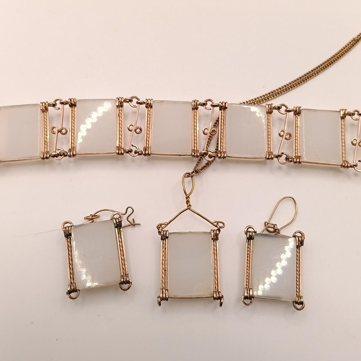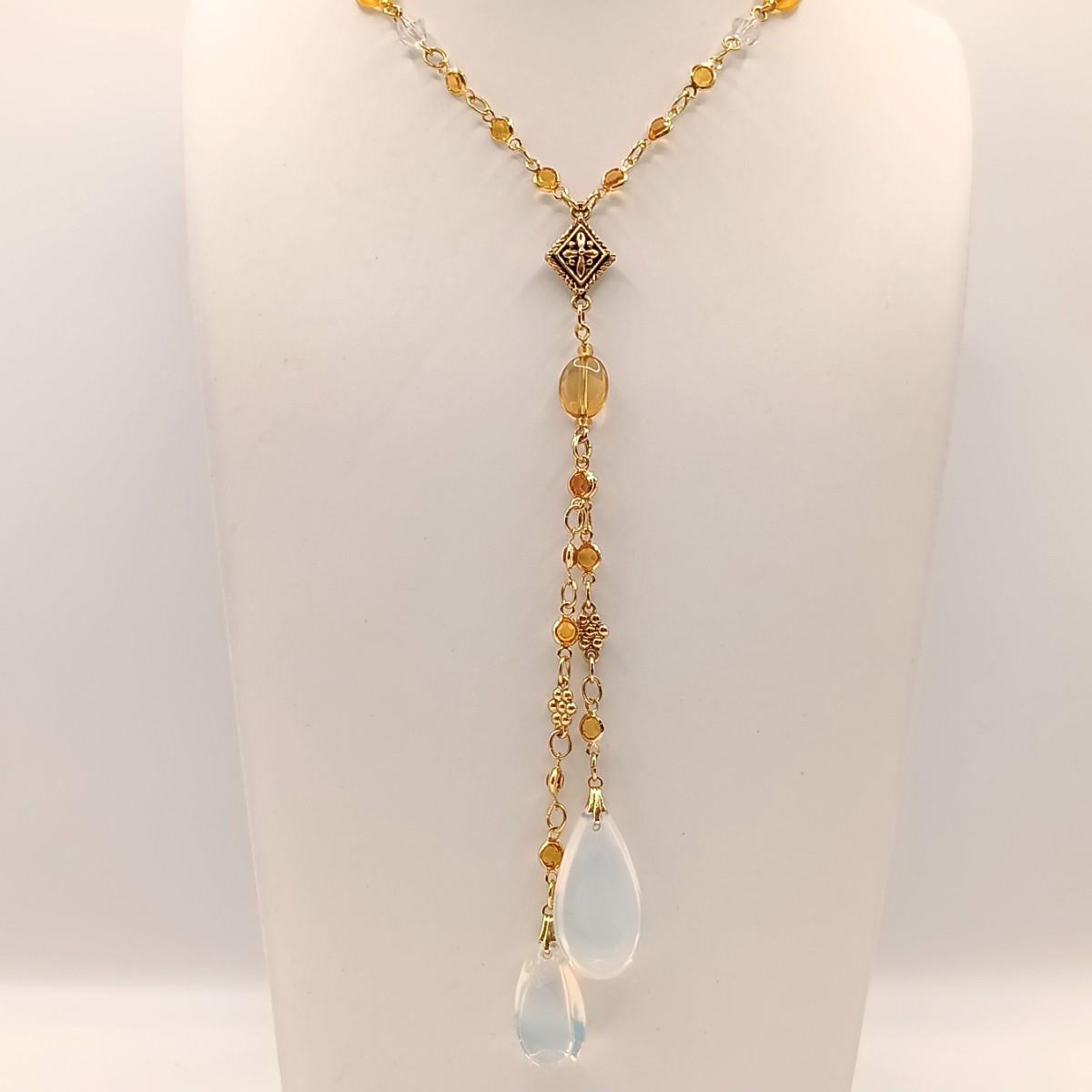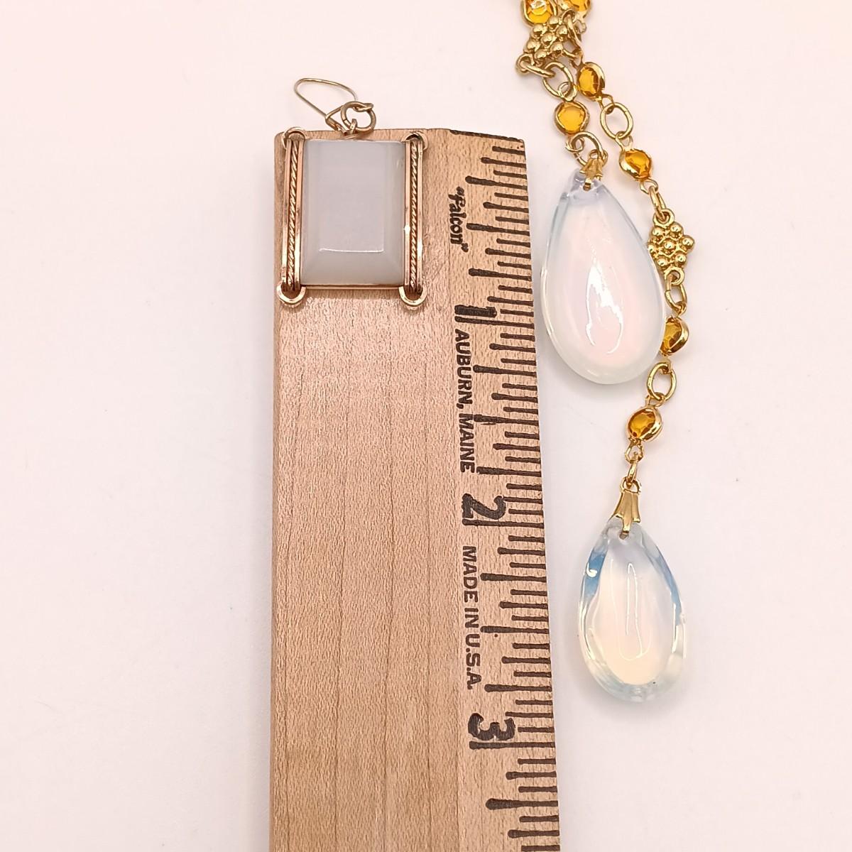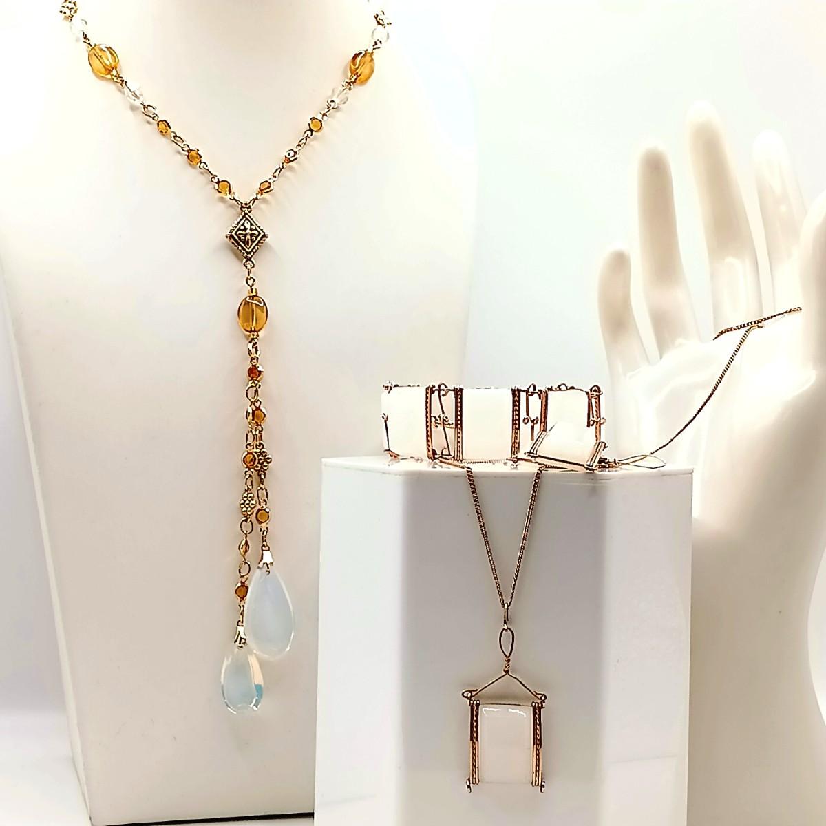 LOT 11: Vintage Gold-Tone Wire and Lucite Jewelry Set with Opalescent Plastic Teardrop Lariat