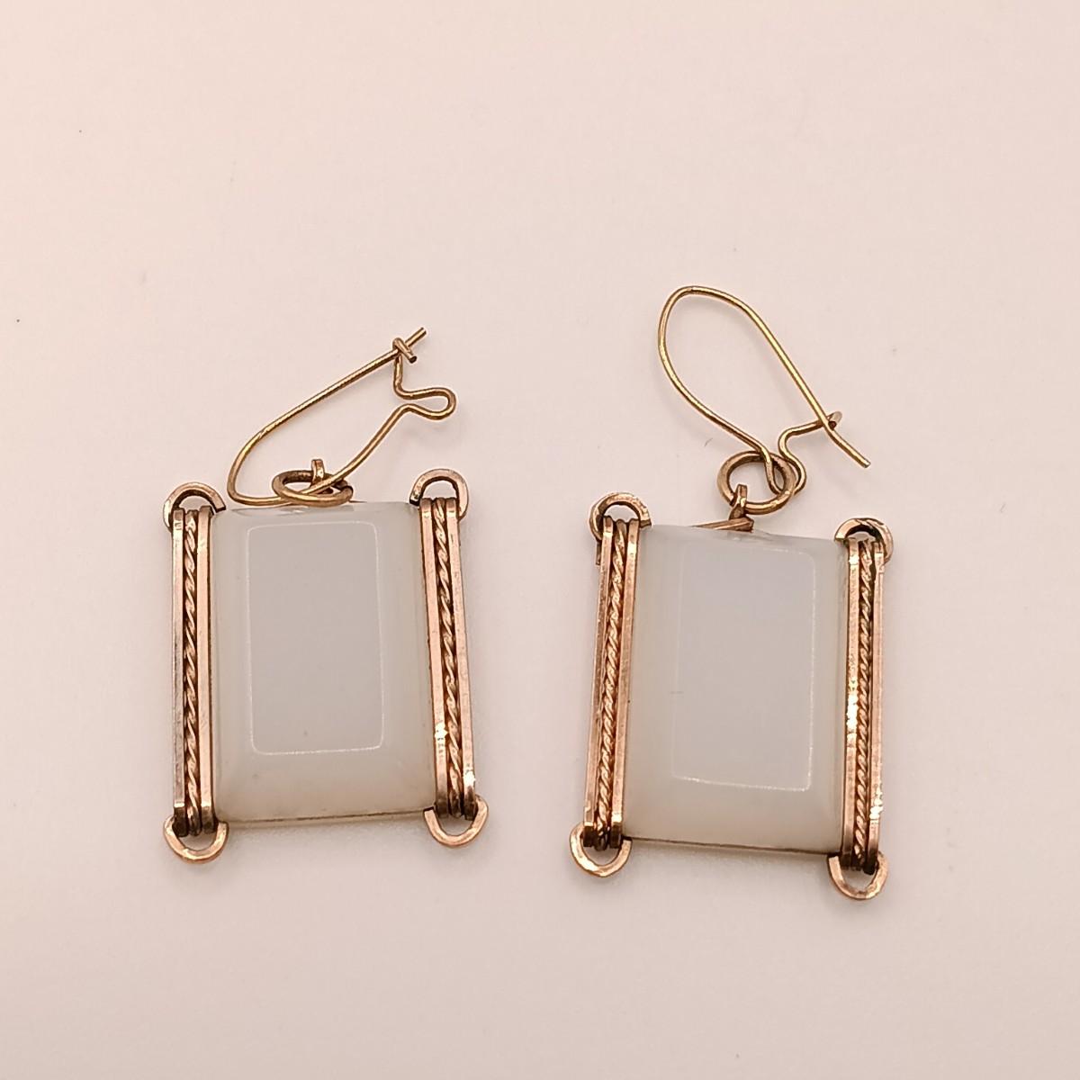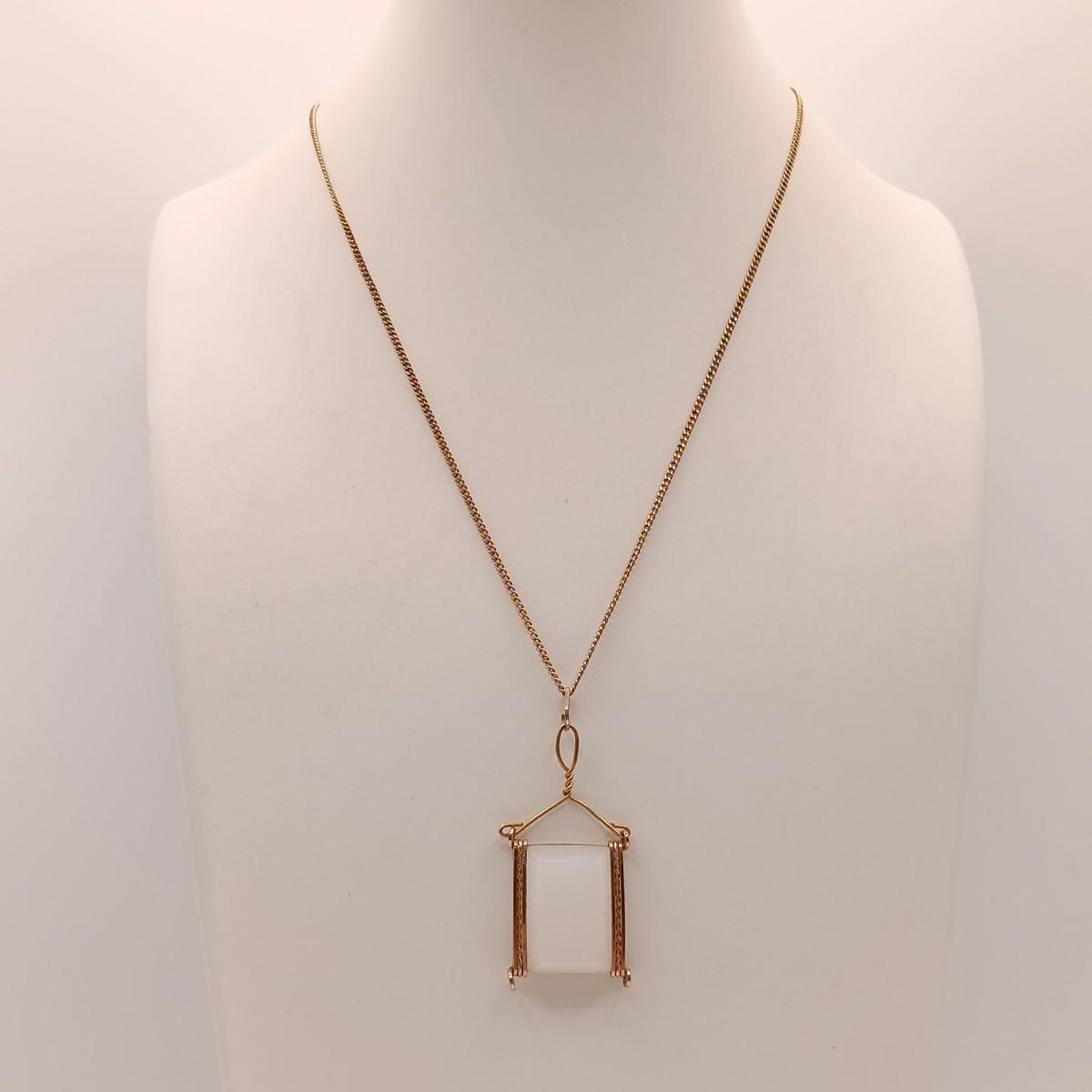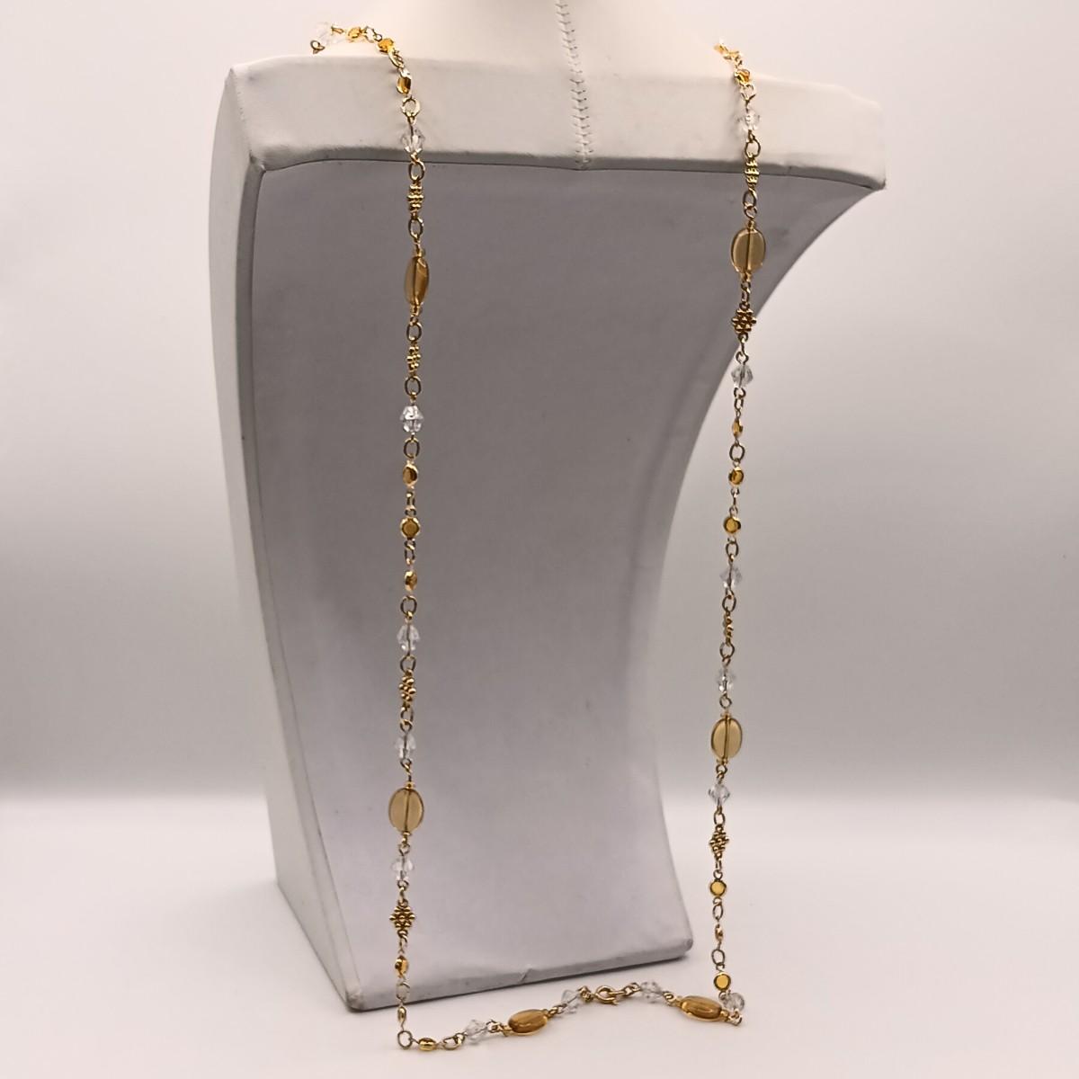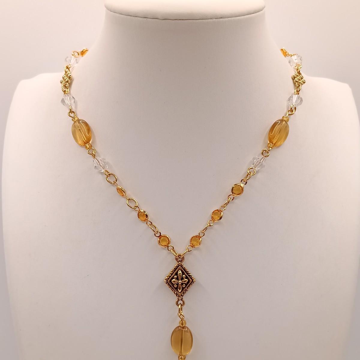 LOT 11: Vintage Gold-Tone Wire and Lucite Jewelry Set with Opalescent Plastic Teardrop Lariat