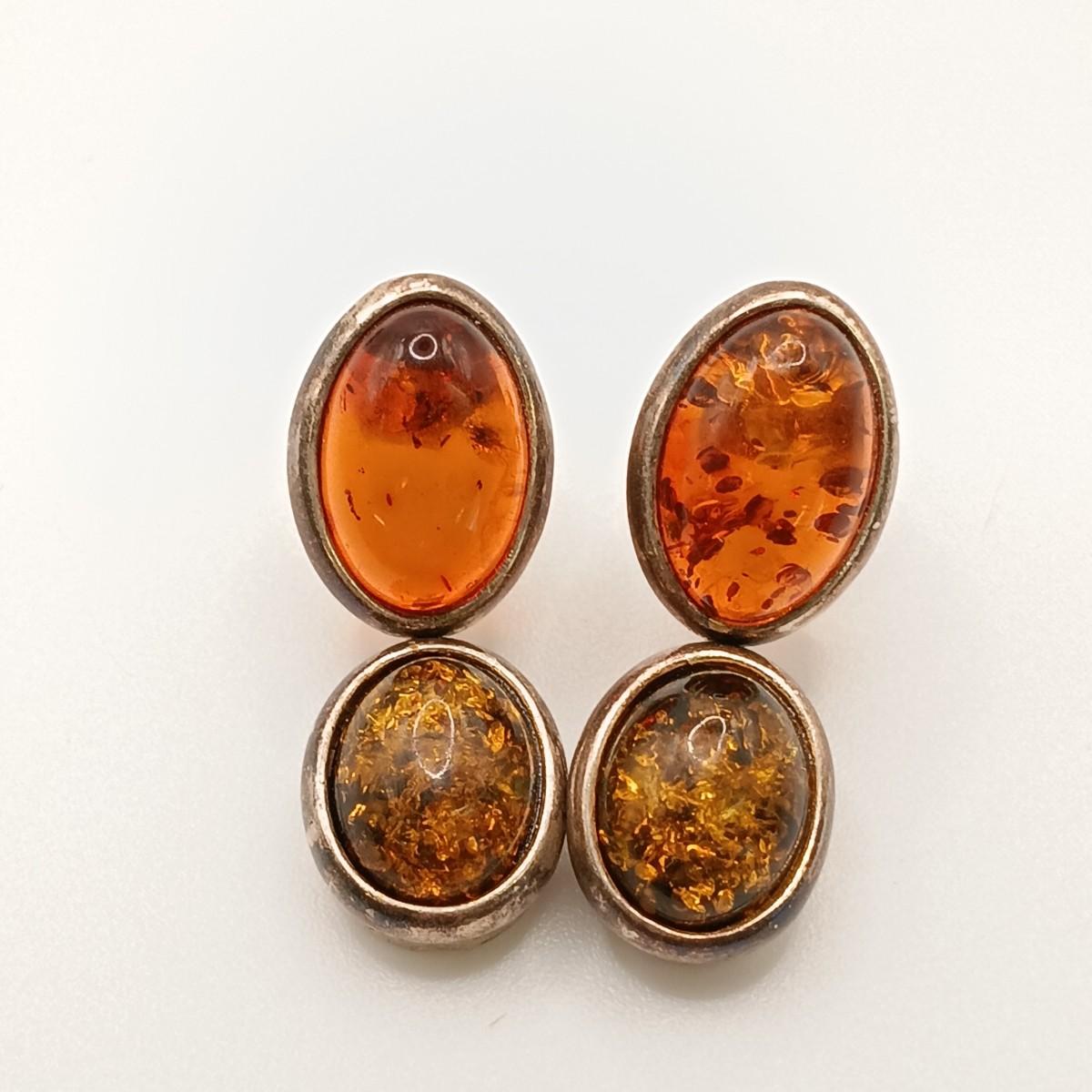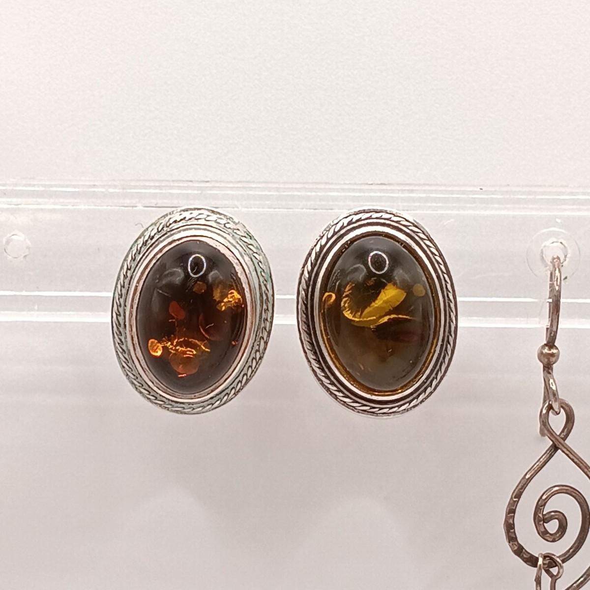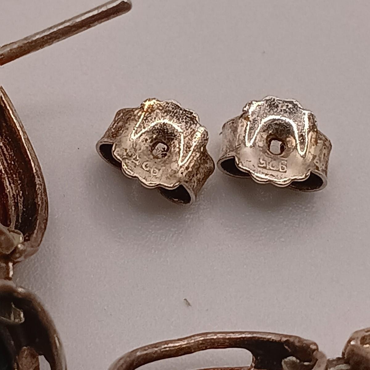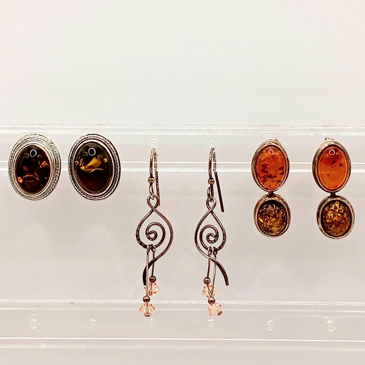 LOT 15: Sterling Silver Amber Earrings & Wire Wrapped Dangle Earrings 15.0gtw